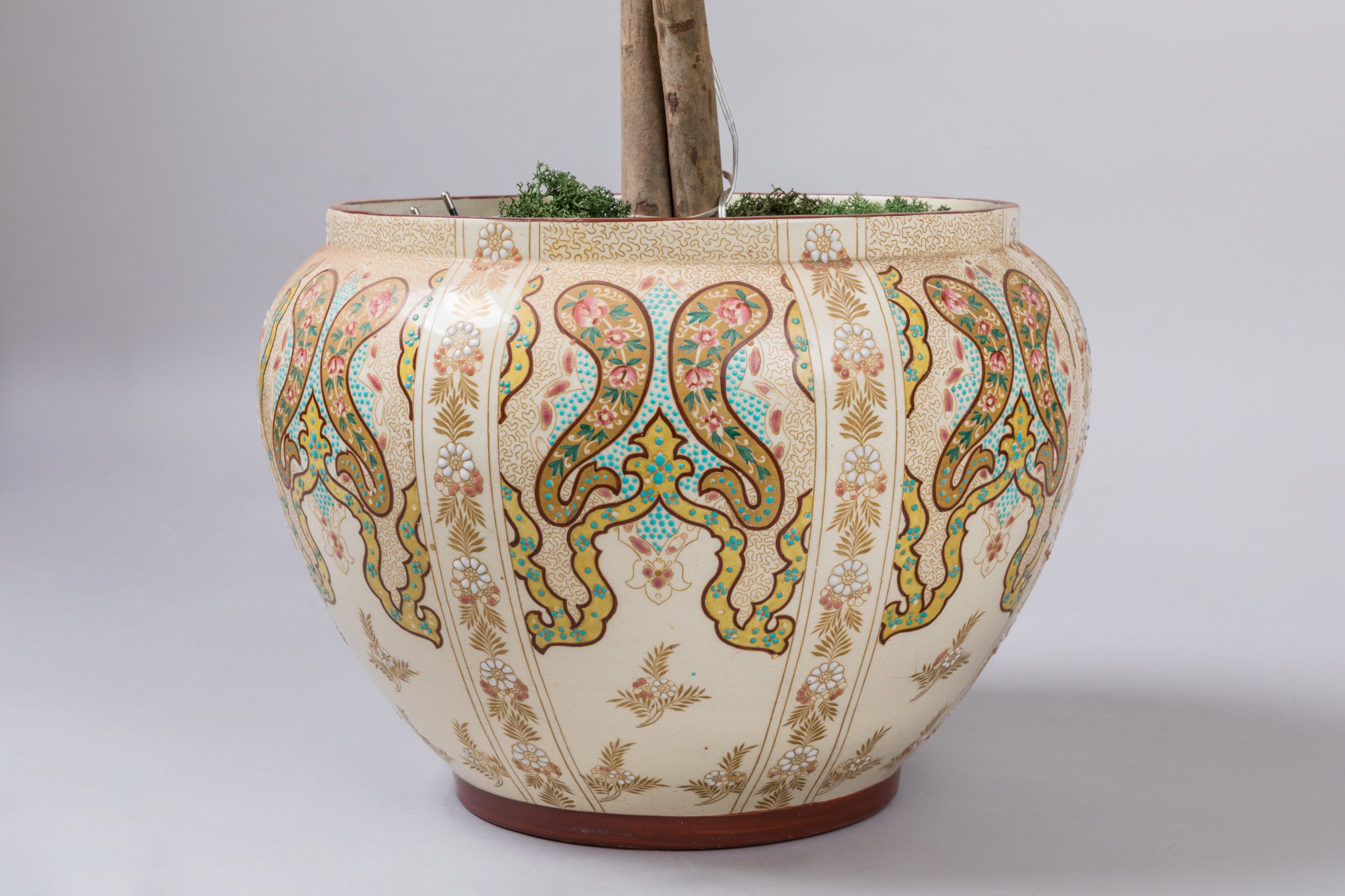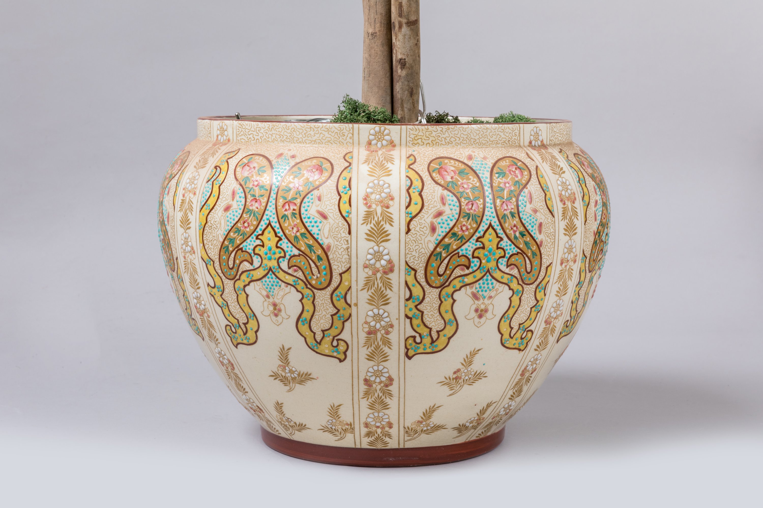 CACHE-POTen céramique émaillée à décor oriental de fleurs en émaux...