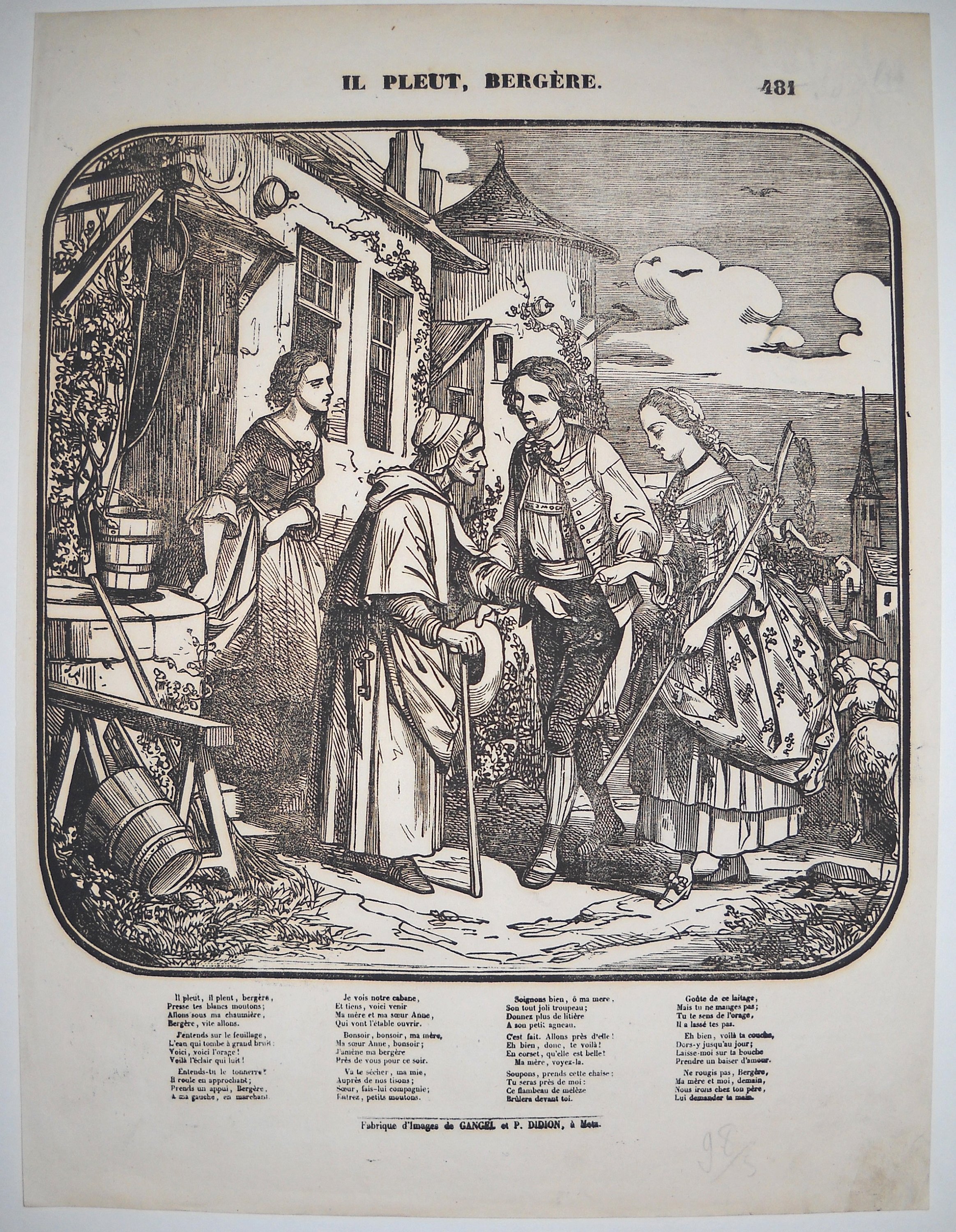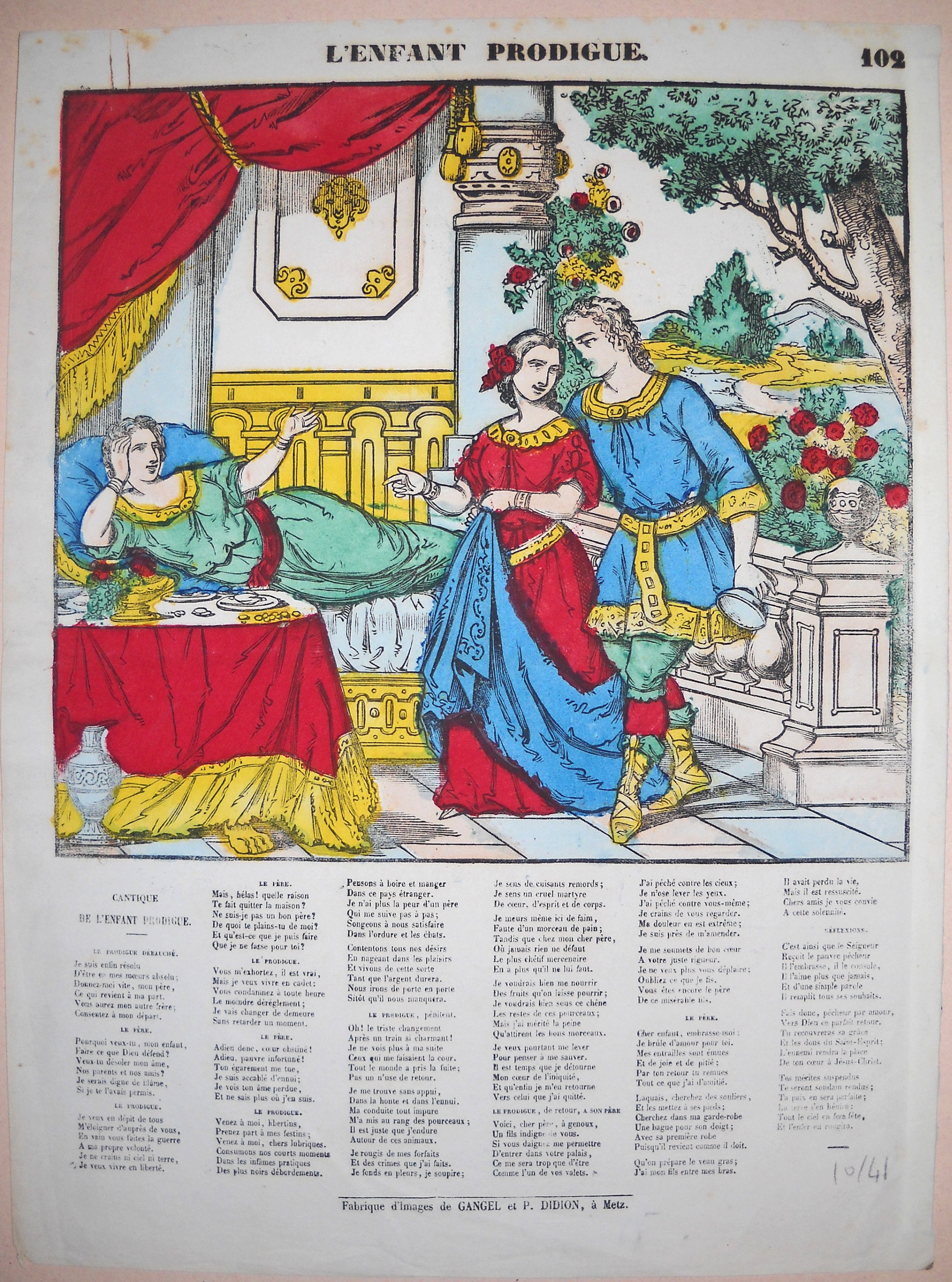[Imagerie populaire] METZ. Sujets populaires, petits formats. Frères GANGEL dont Louis Auguste GANGEL (1828-1871), et Paulin DIDION (1831-1879), actifs en association de 1858 à 1871.