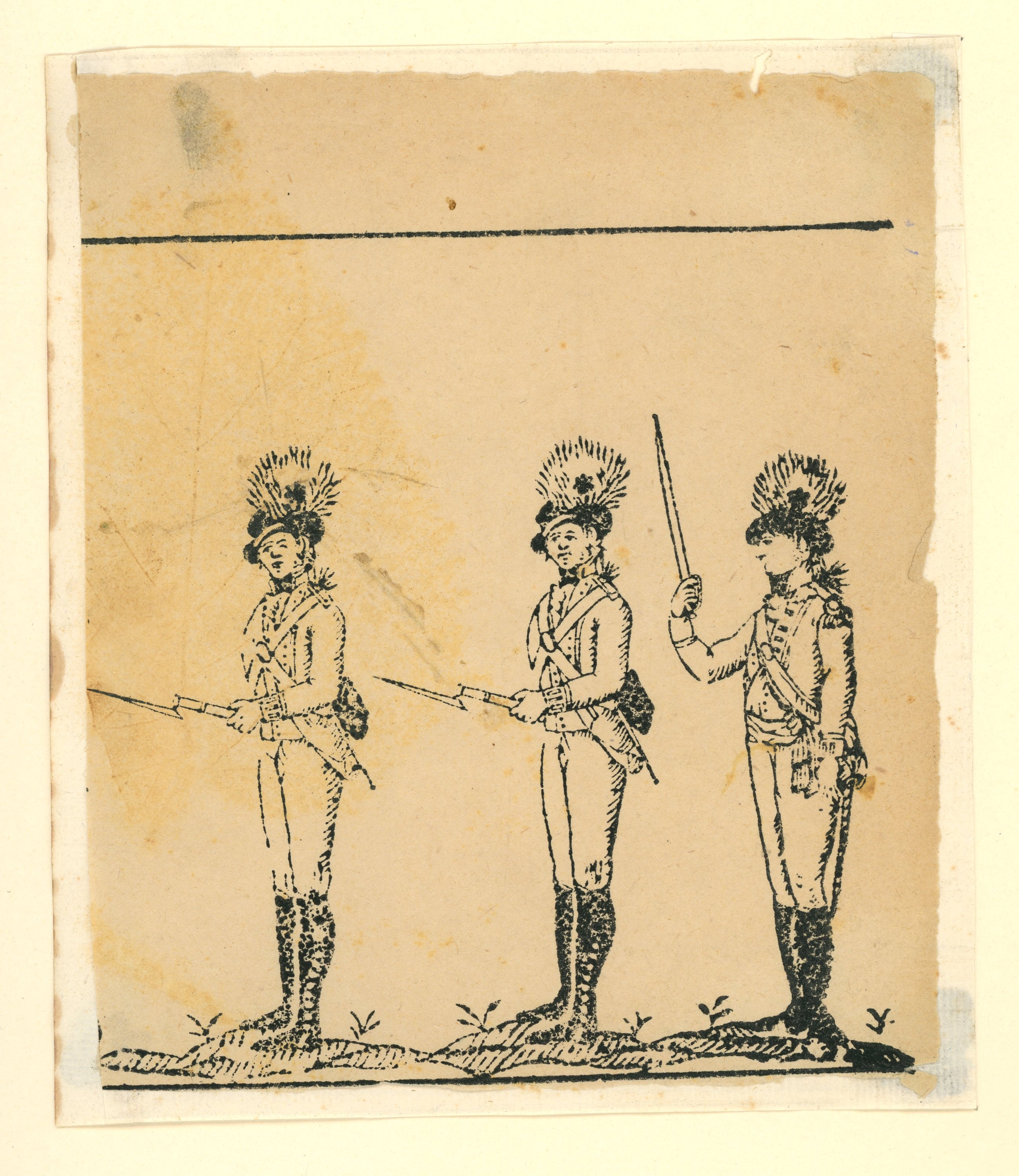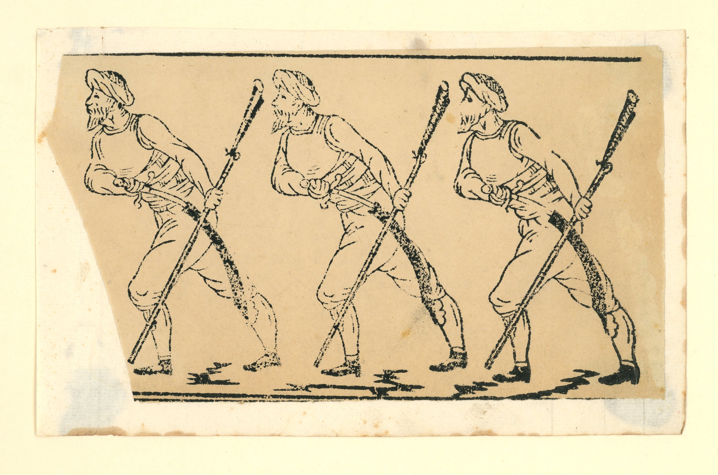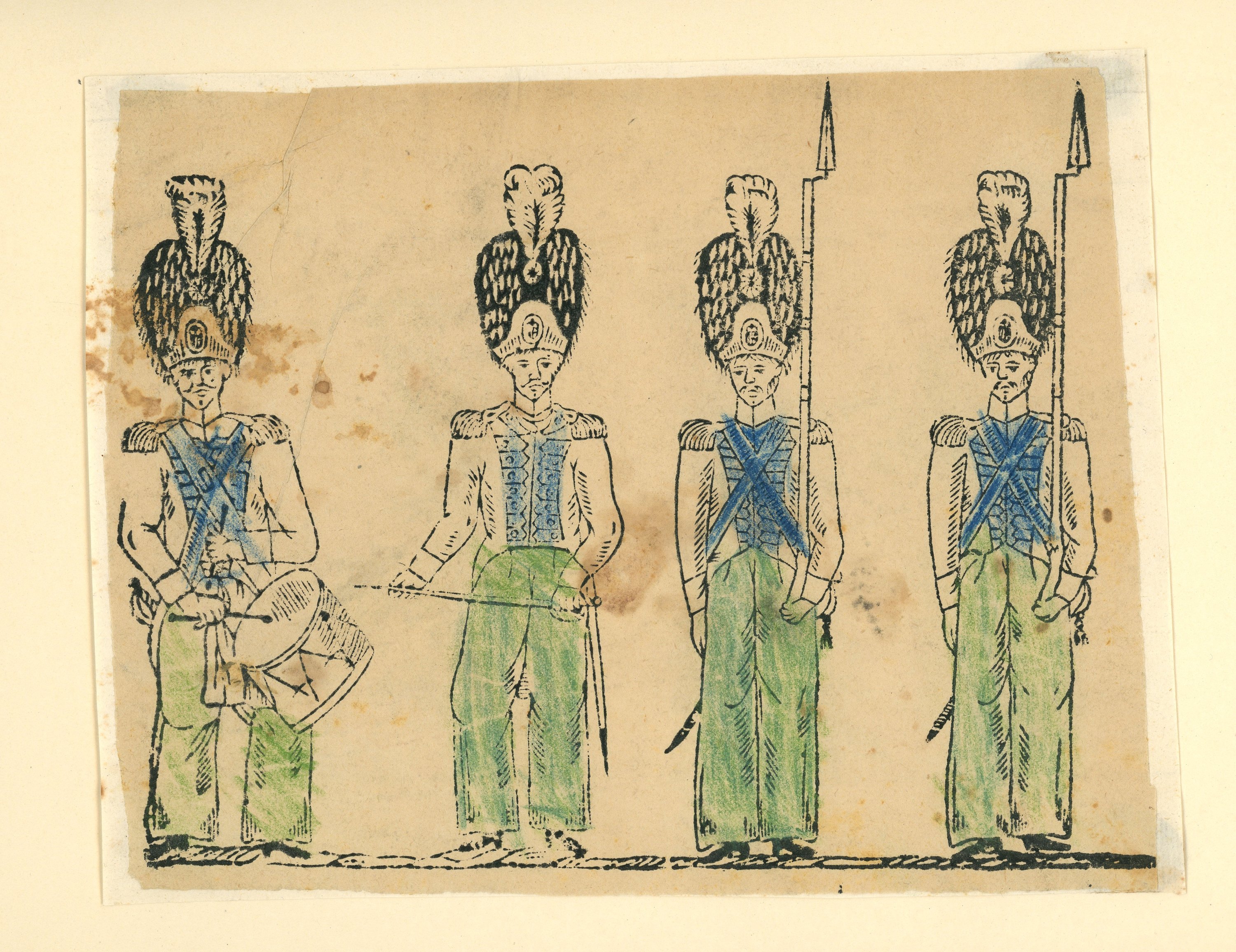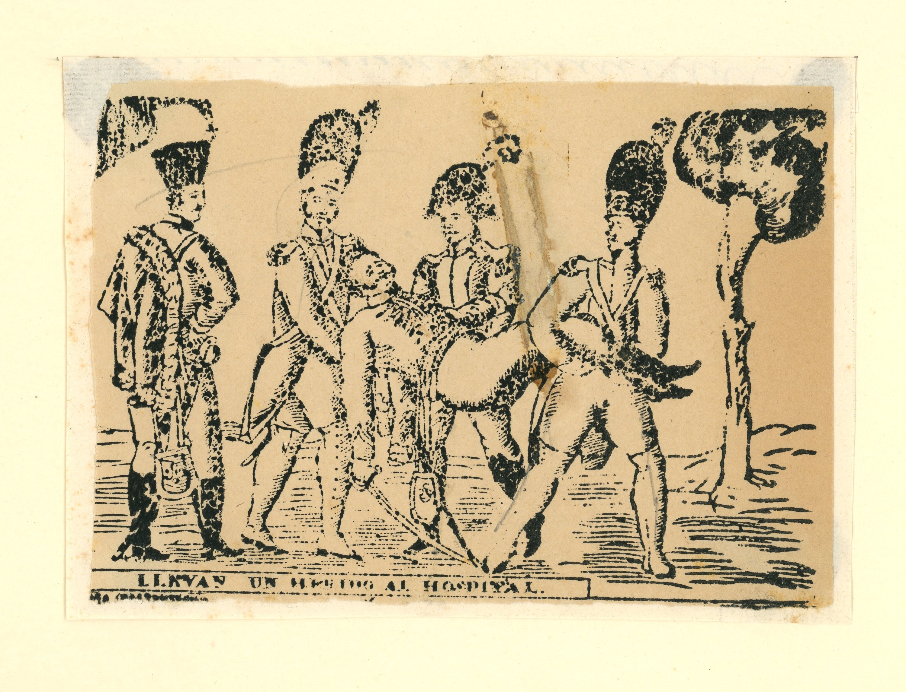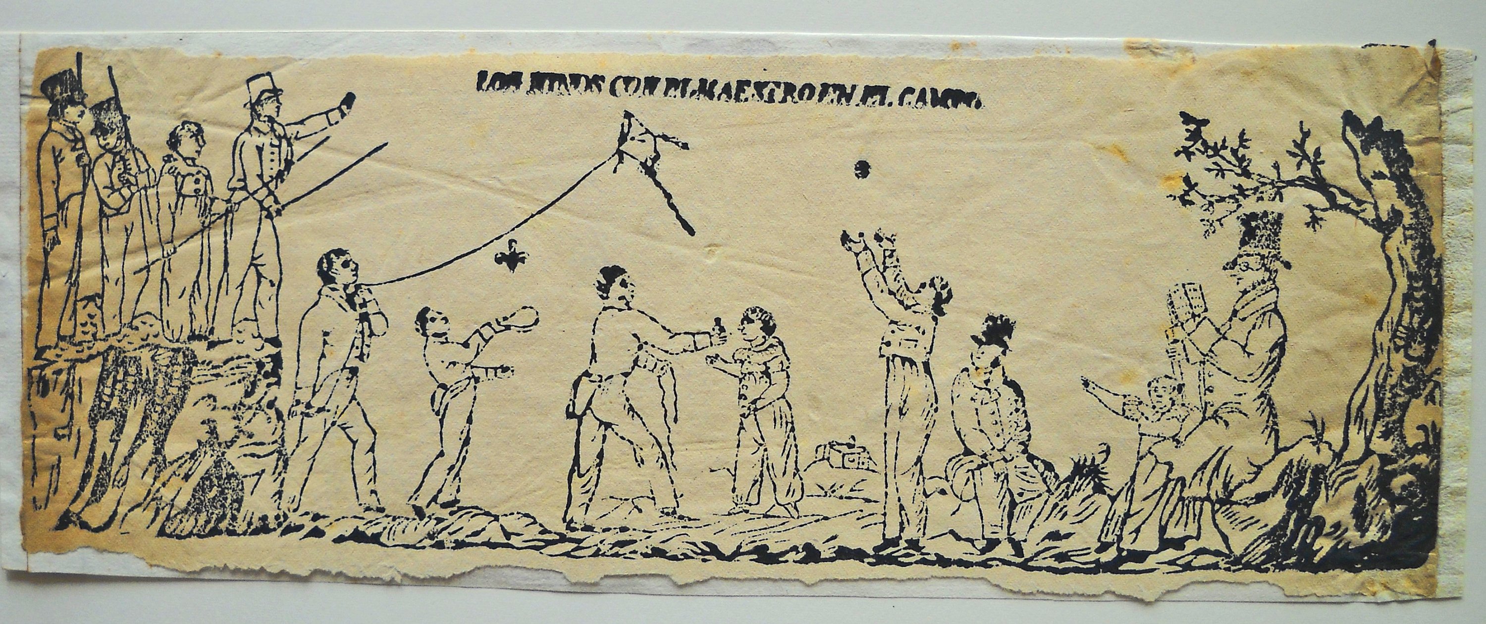 10 épreuves, gravures sur bois, contrecollées sur carton épais, à décor de scènes ou fragments de scènes animées, certaines légendées: groupes de grognards napoléoniens ; soldats anglais ; cavalier ; " Los minds con el maestro en el campo " ; " Alanos " ; " I.H.S. ". Formats in-12 et in-8, états divers.