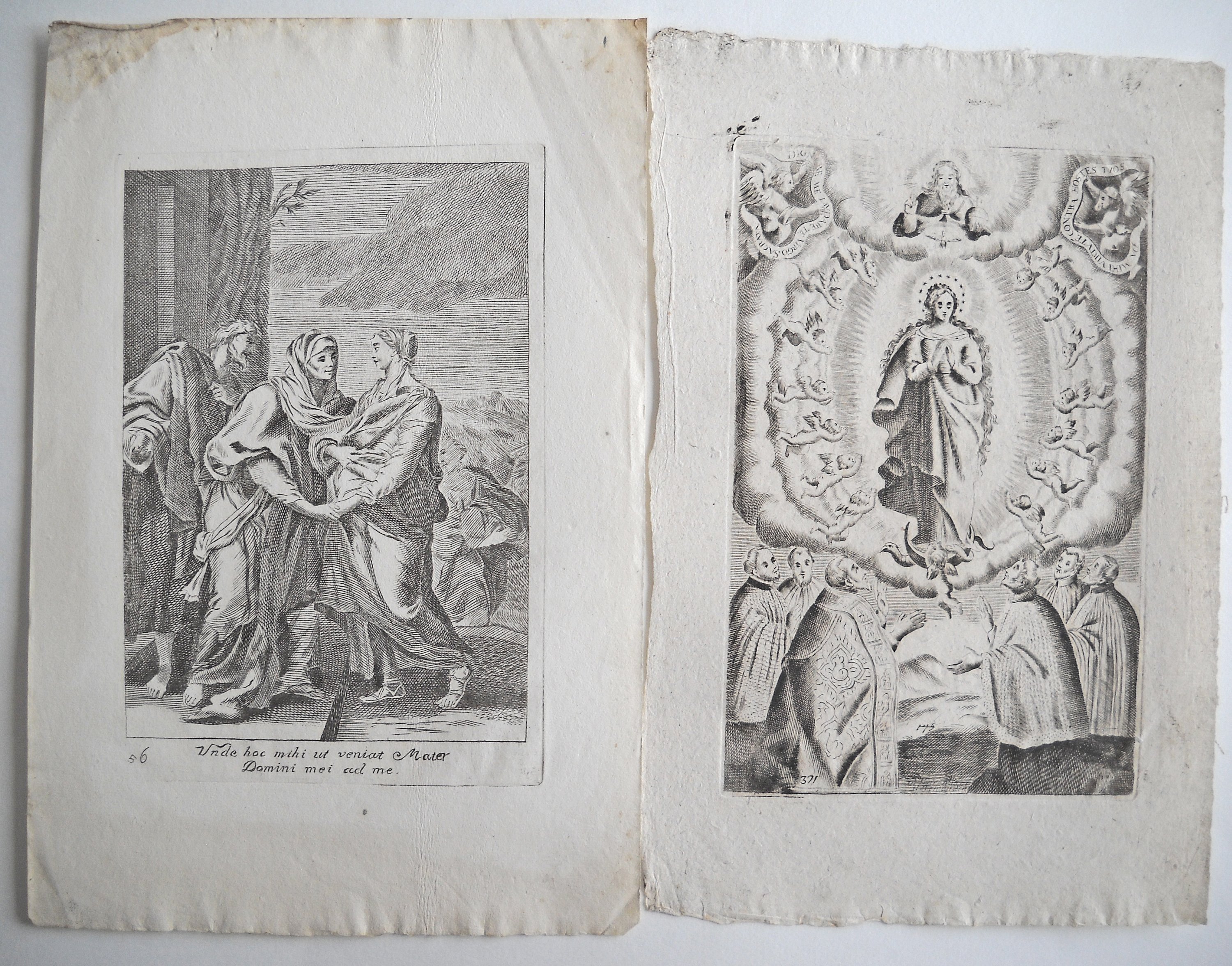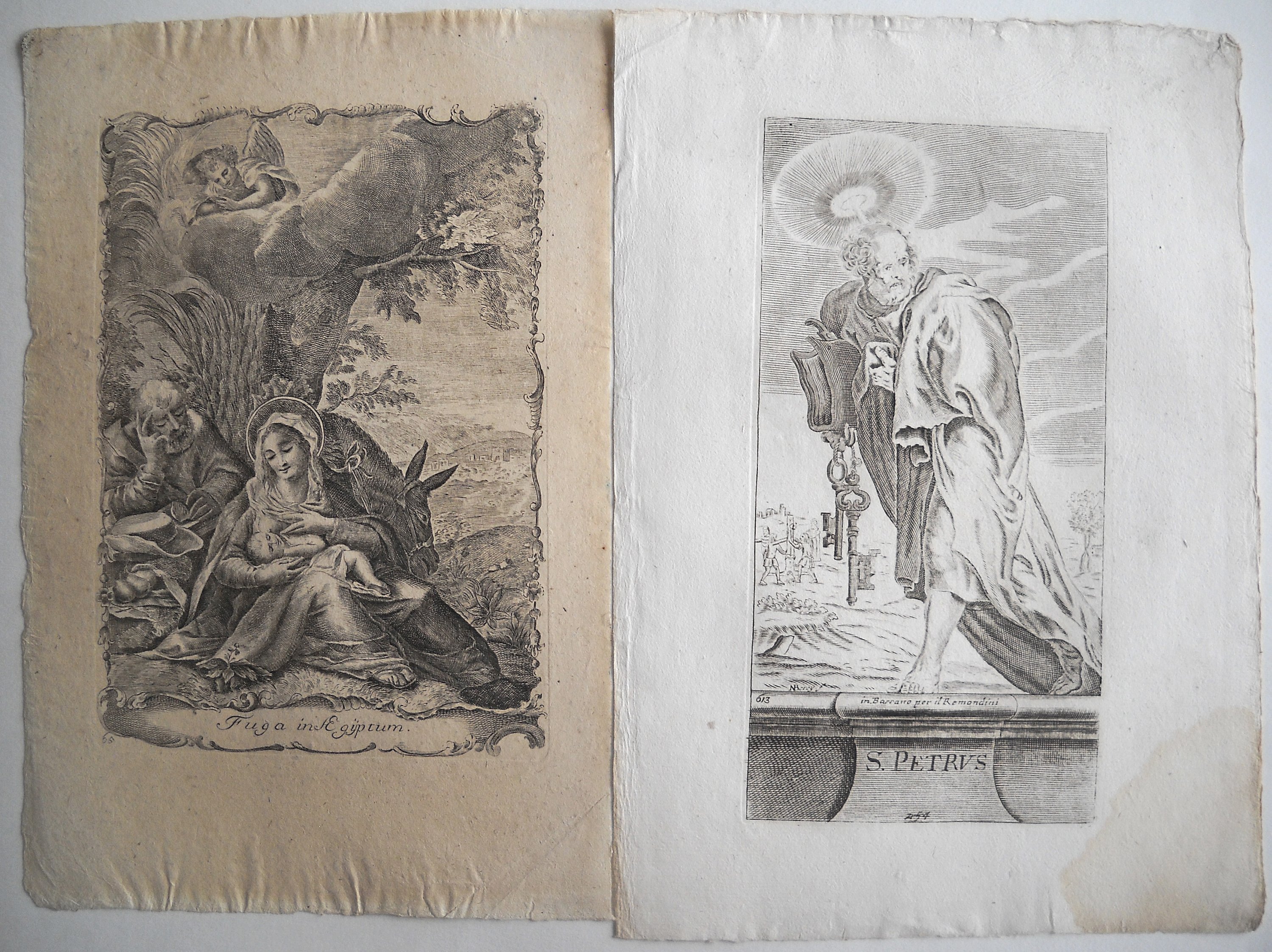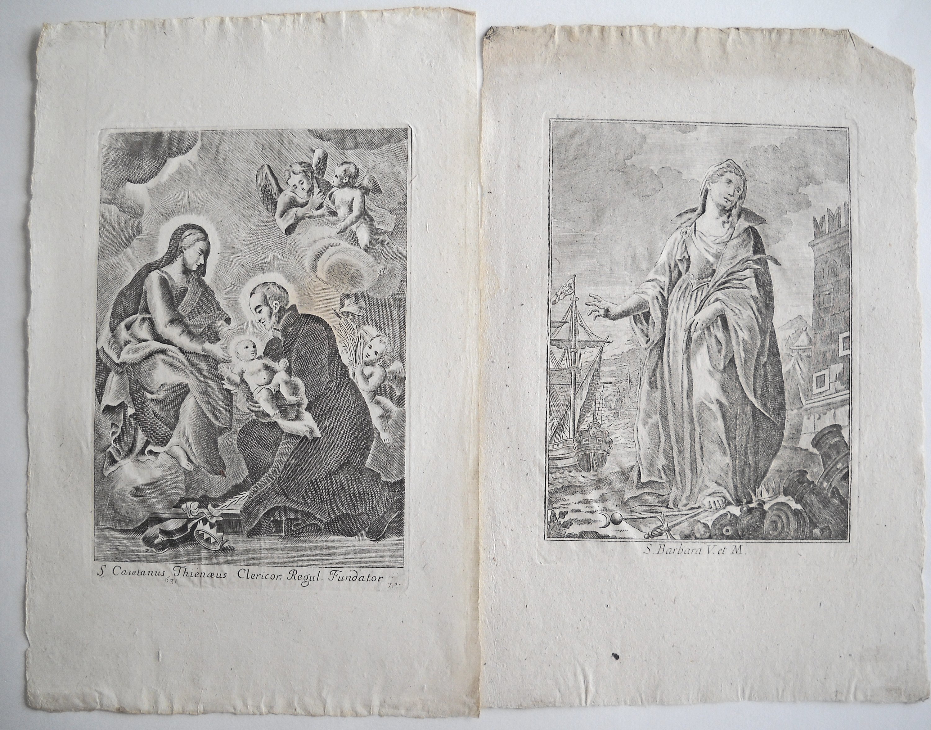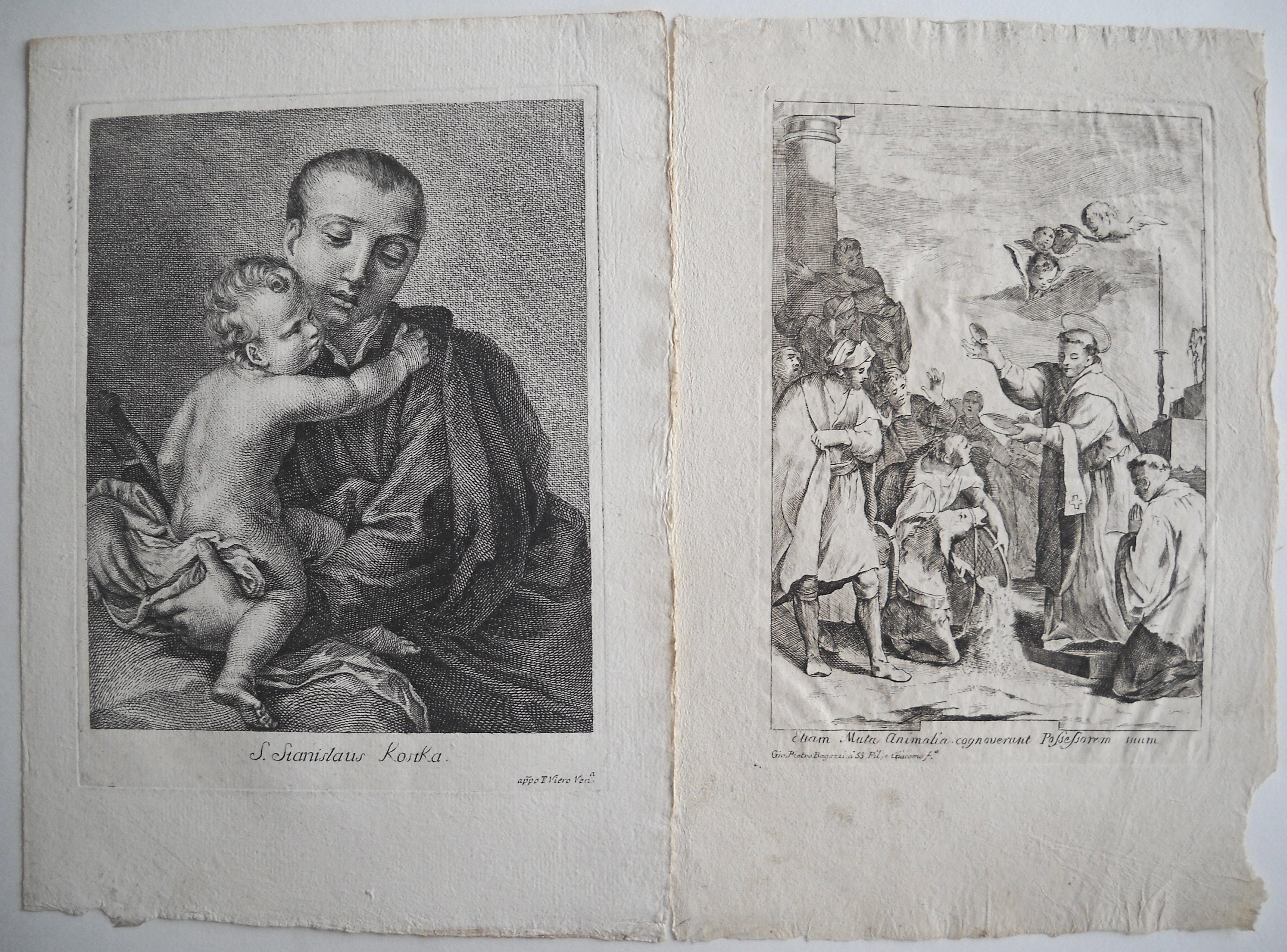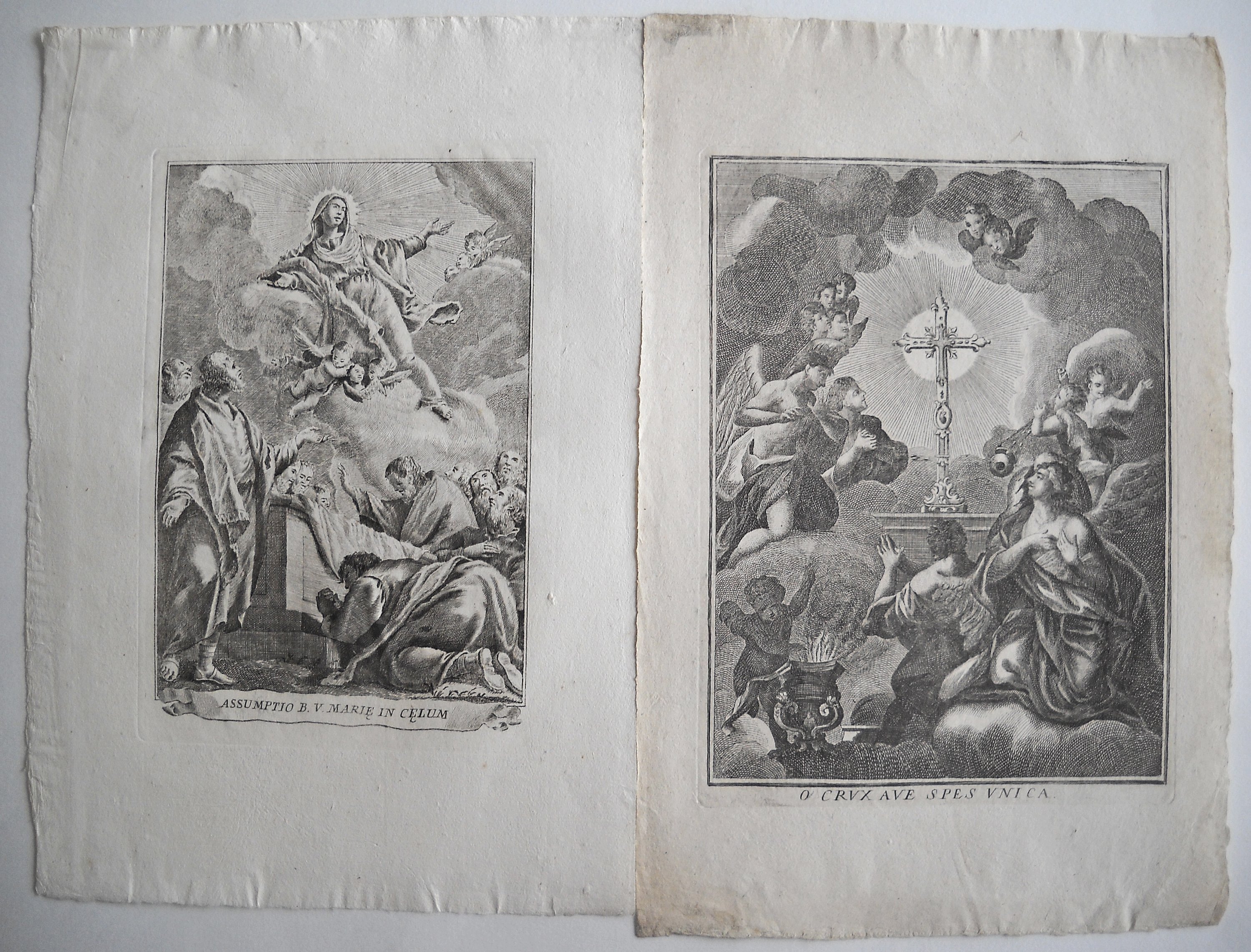 1783 " par " Gaetano Sancon sculps. " ; " S. MARIA MAGDALENA " ; " S. ALOYSIUS GONZAGA " ; " B. Lorenzo da Brindisi Cappuccino " ; " Custos Domini mei " ; " S. Barbara V. et M. " ; " " S. Stanislaus Kostka " ; " EGO PANEM DABO " ; " S.JACOBUS MAJOR " ; " La S.S. Vergine delle Grazie " ; " FIALETTA ROSA FIALETTI " par " Orsolini sculp. " ; " S. EUROSIA VERGINE MARTIRE " ; " S. VALENTINUS M. " ; " ASSUMPTIO B.V. MARIE IN CELUM " ; " ADORABILE NOMEN JESU " ; " S. PETRUS " ; " S. PIETRO APOSTOLO " ; " Fuga in Aegyptum " ; " Benedetto Giuseppe Labré " ; " S. MICHAEL " ; " ANNUNCIACION DE NUESTRA SENORA " ; etc.