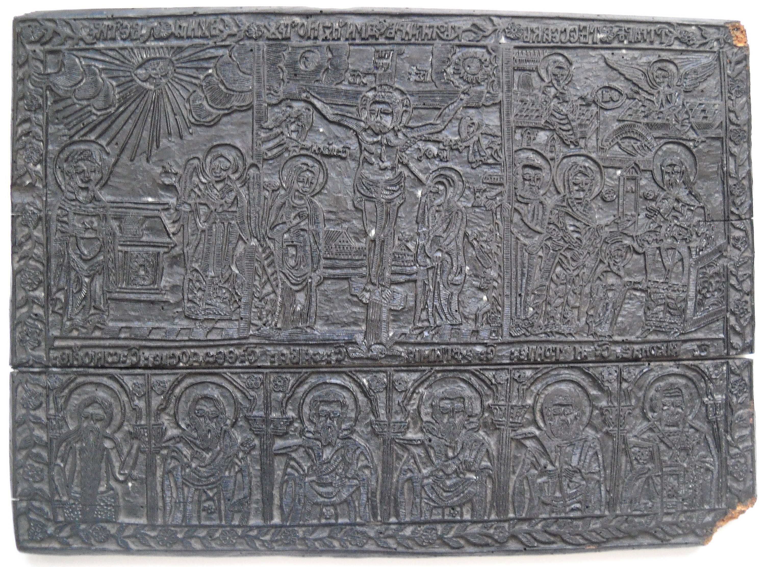 [Xylographie] EGLISE ORTHODOXE SLAVE. Matrice en bois gravé, XVIIIe siècle.