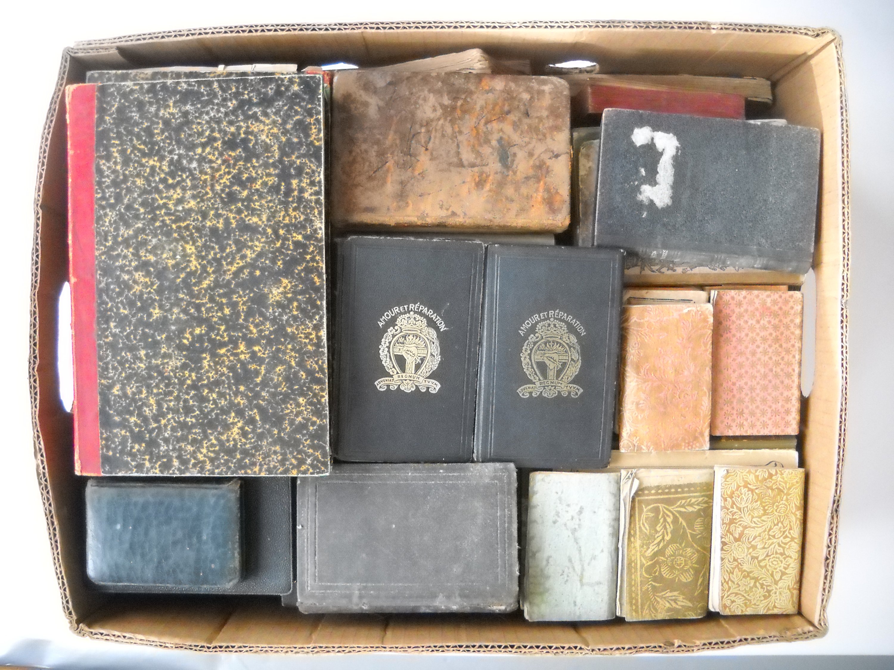 Lot de + de 75 vol., XIXe et XXe siècles dont: 8 mini almanachs édités à Paris (1810, 1813, 1814, 1816, 1817, 1847) - " Le grand almanach de Liège ", 1858 - Almanach comique pour 1863 - Almanach prophétique pour 1863 - Almanach de France pour 1842 - " Le Triple almanach Mathieu " pour 1864 - " Vie du célèbre Collet mort au bagne de Rochefort ", Le Bailly, Paris - 6 ex. Le Magasin Pittoresque - Missels - etc.