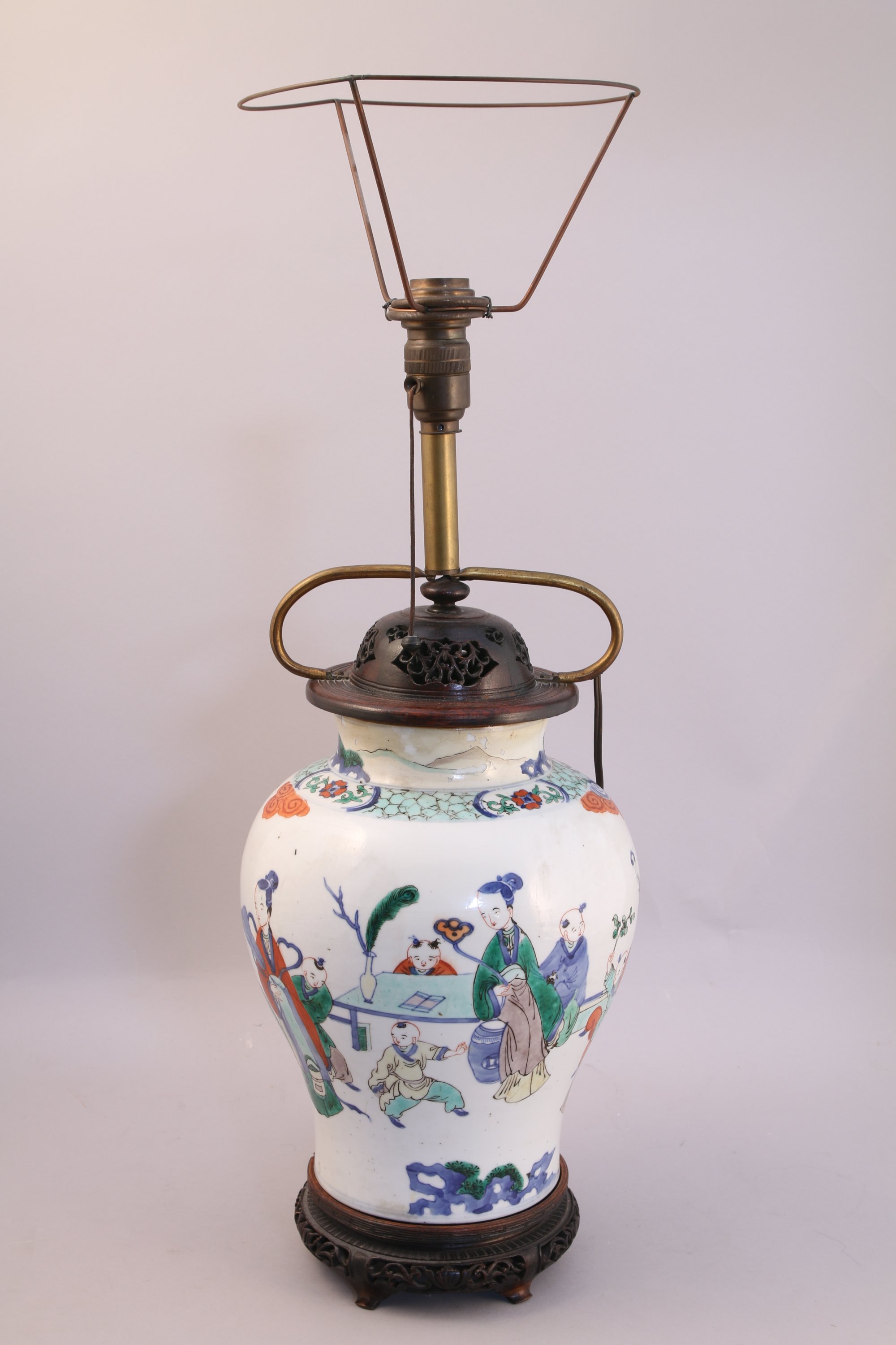Haut. 30 cm. (importante restauration au col, monté en lampe sans percement)