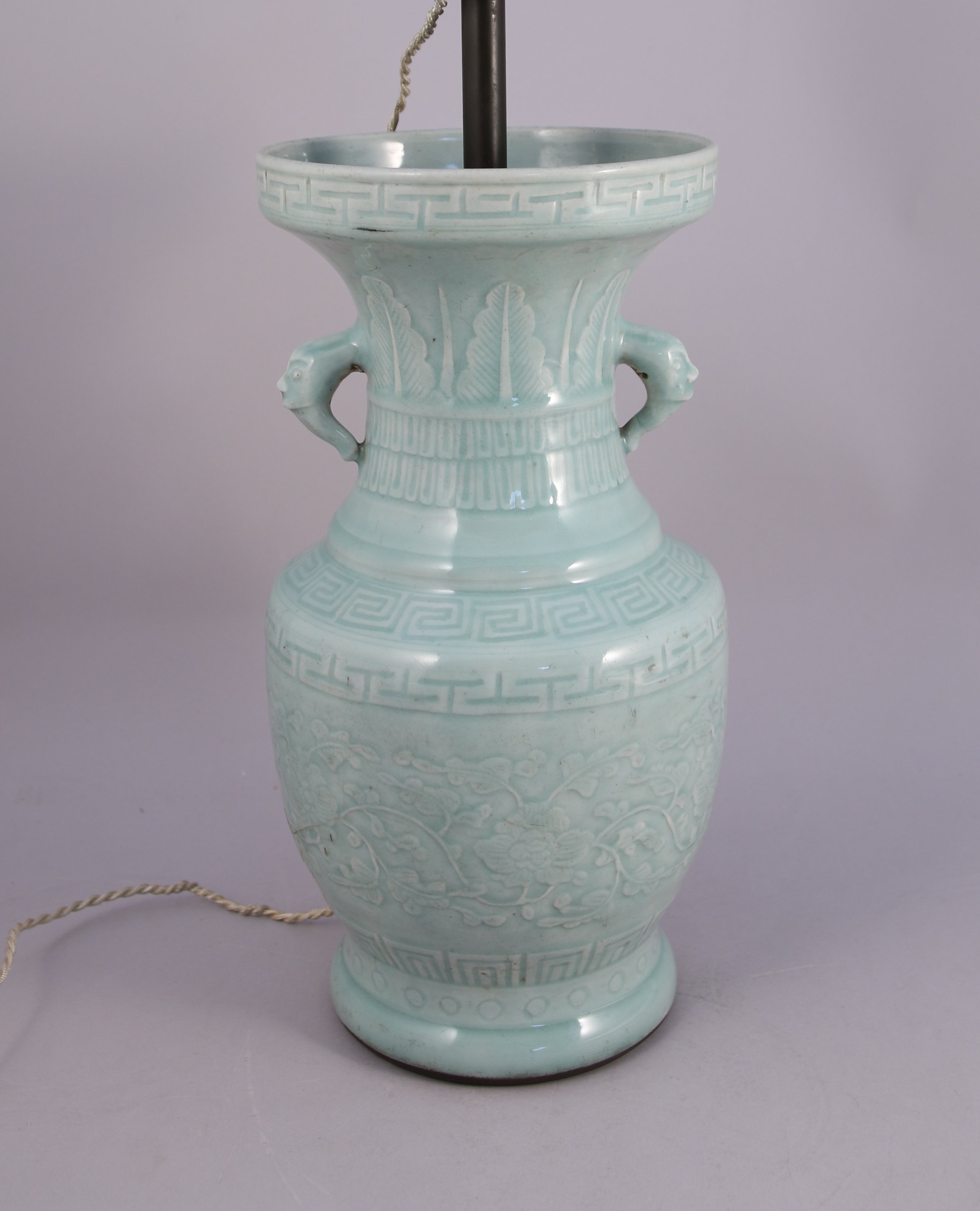Haut. 38,5 cm. (monté en lampe, fêlures)