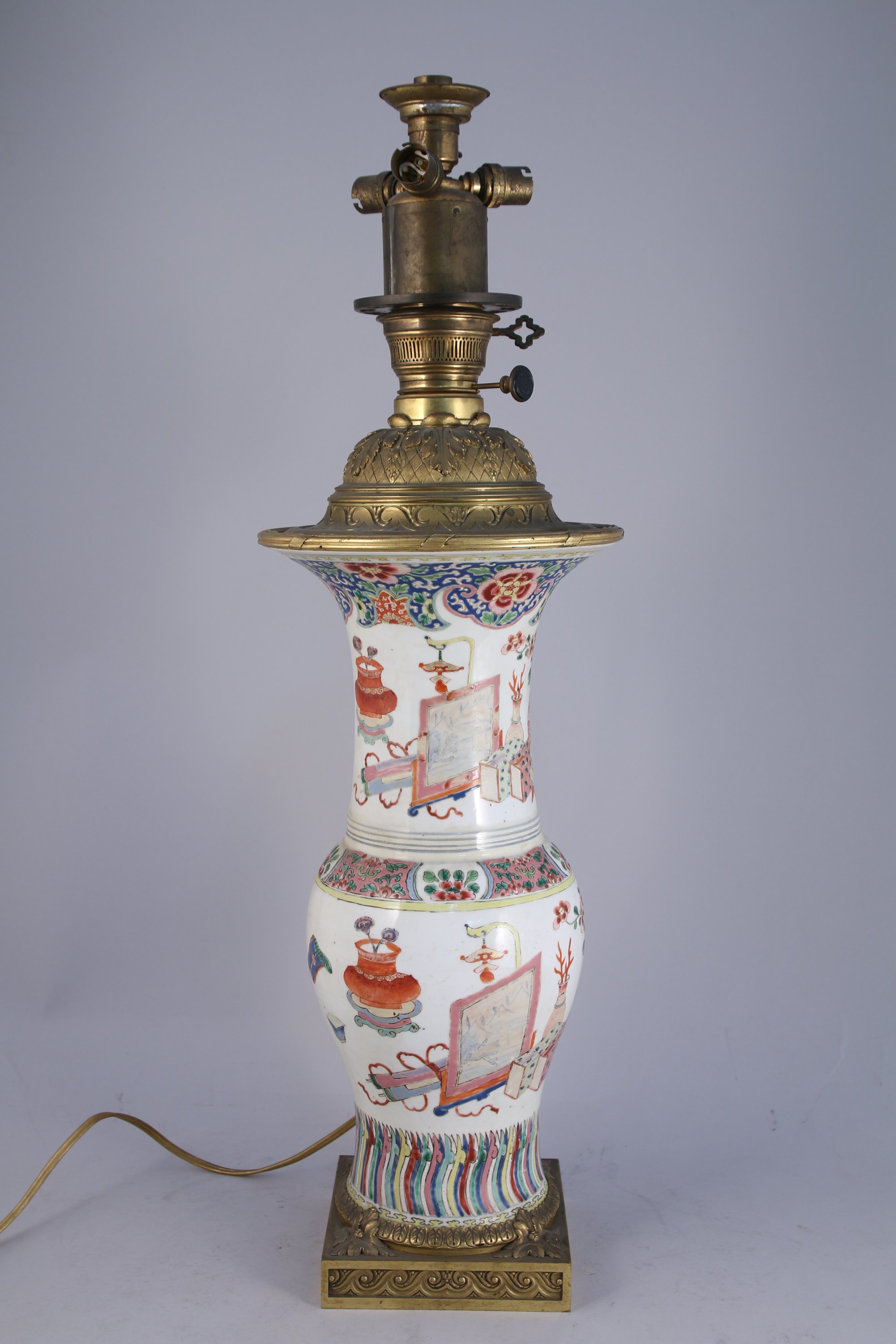 Monté en lampe (l'état de la porcelaine n'est pas garanti sous les montures).