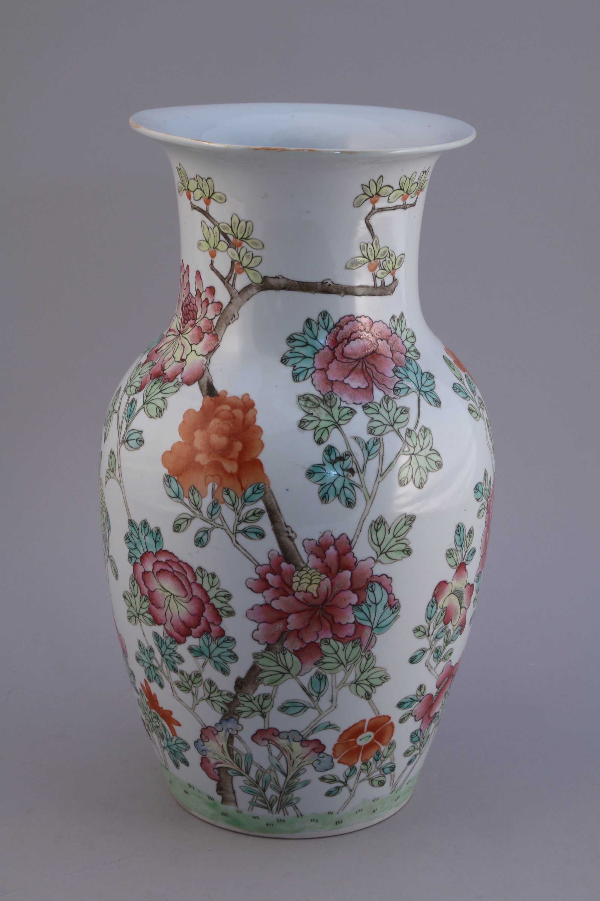 CHINE - Début XXeVASE balustre en porcelaine à décor floral...