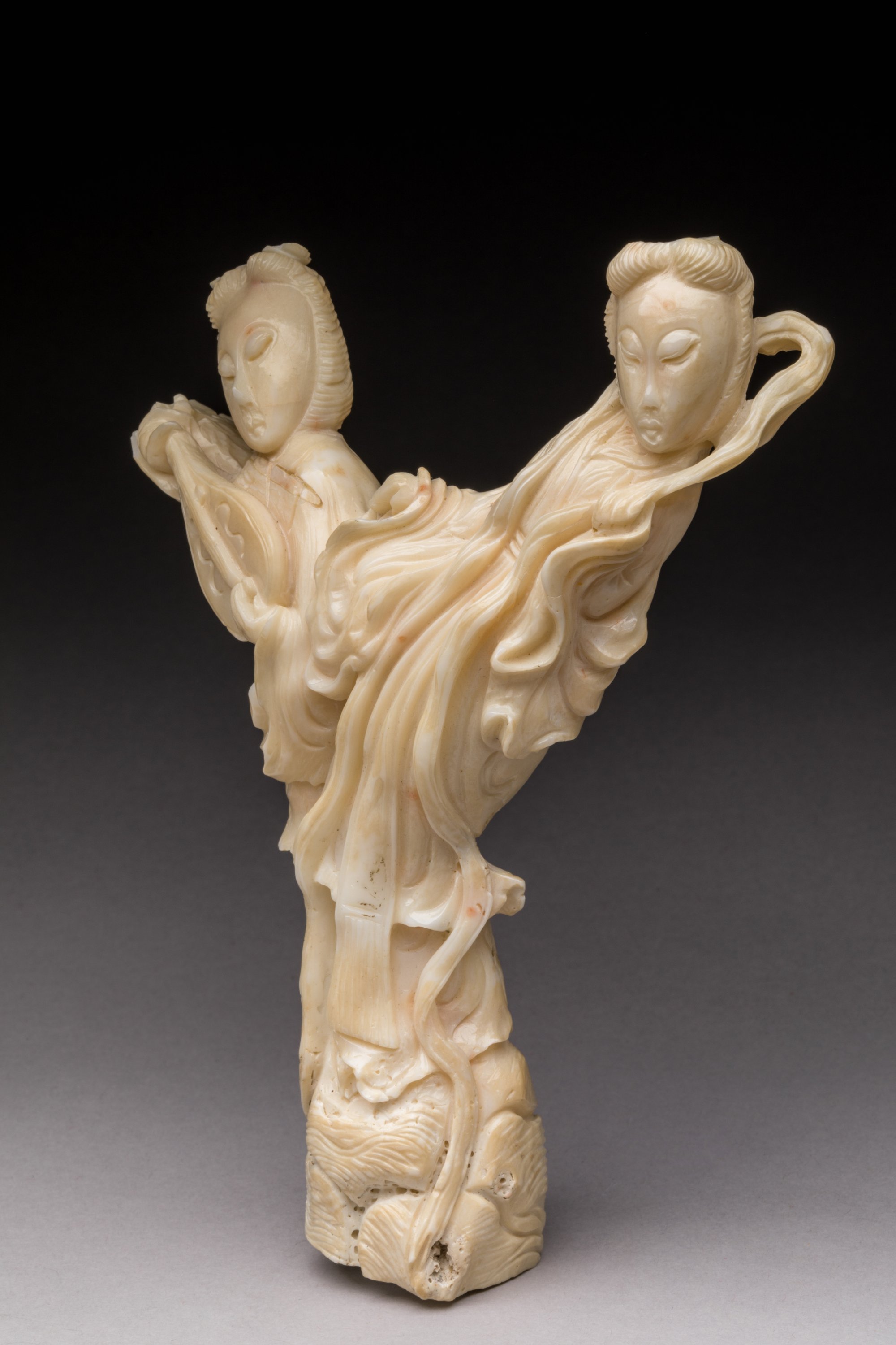 GROUPE EN CORAIL blanc, deux jeunes femmes, l'une jouant du pipa.