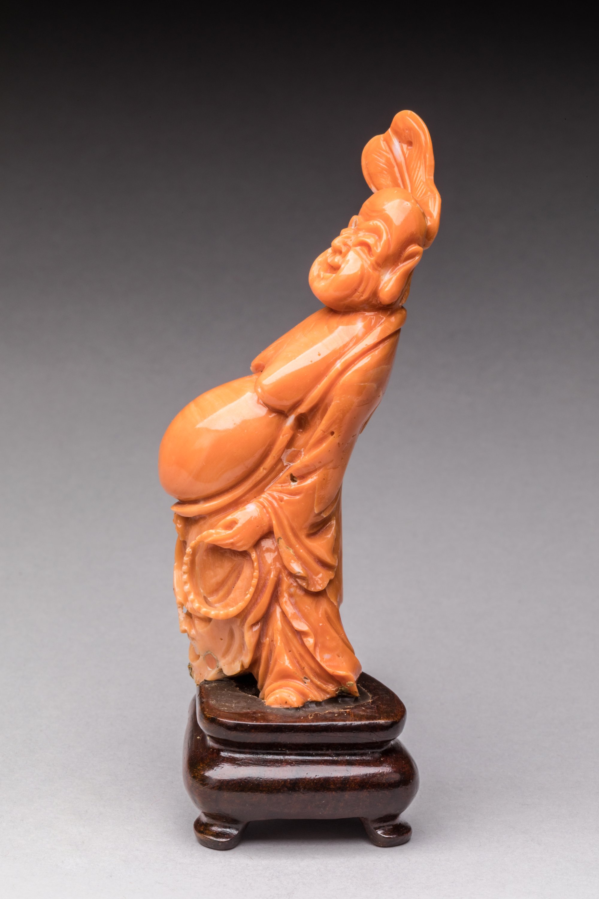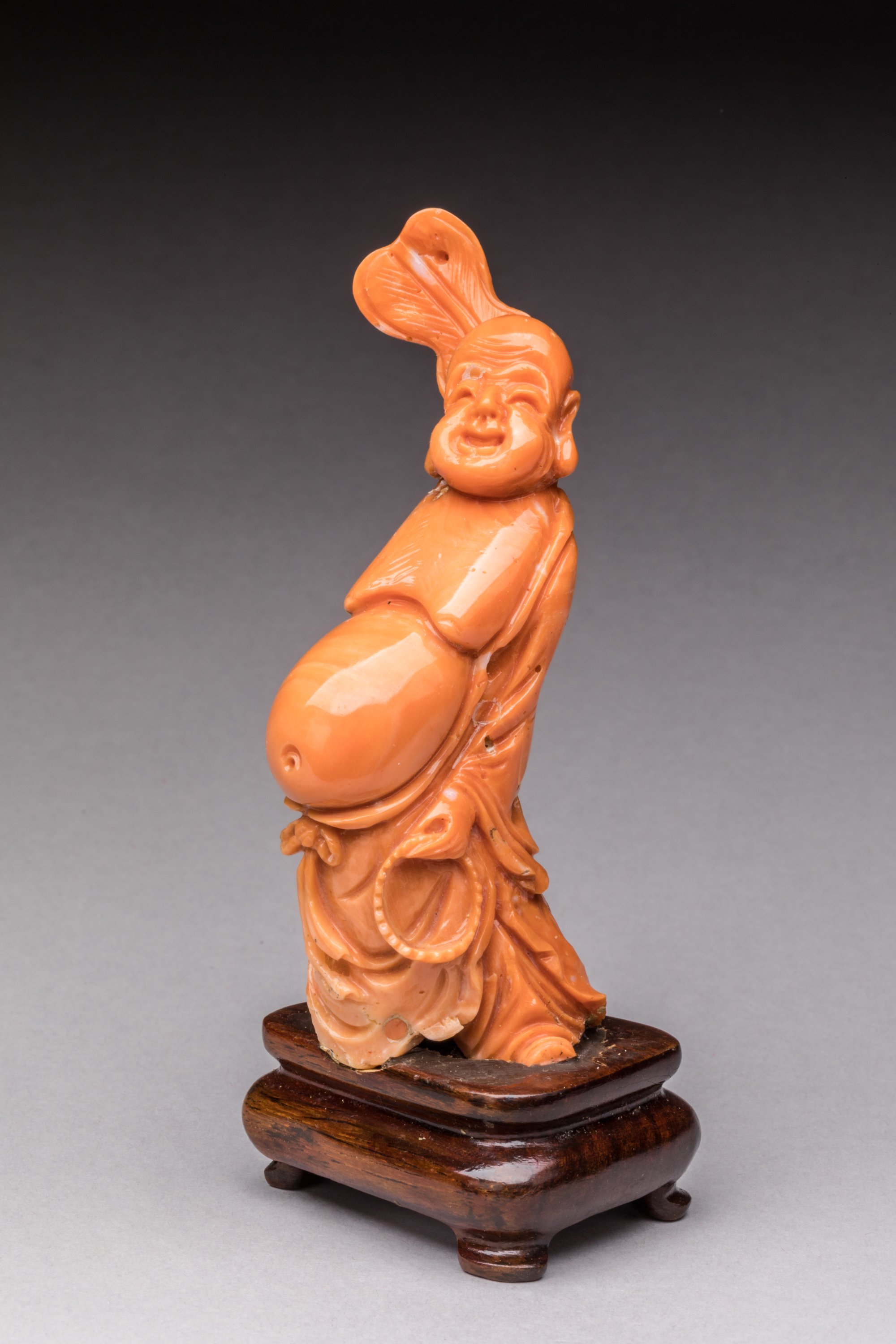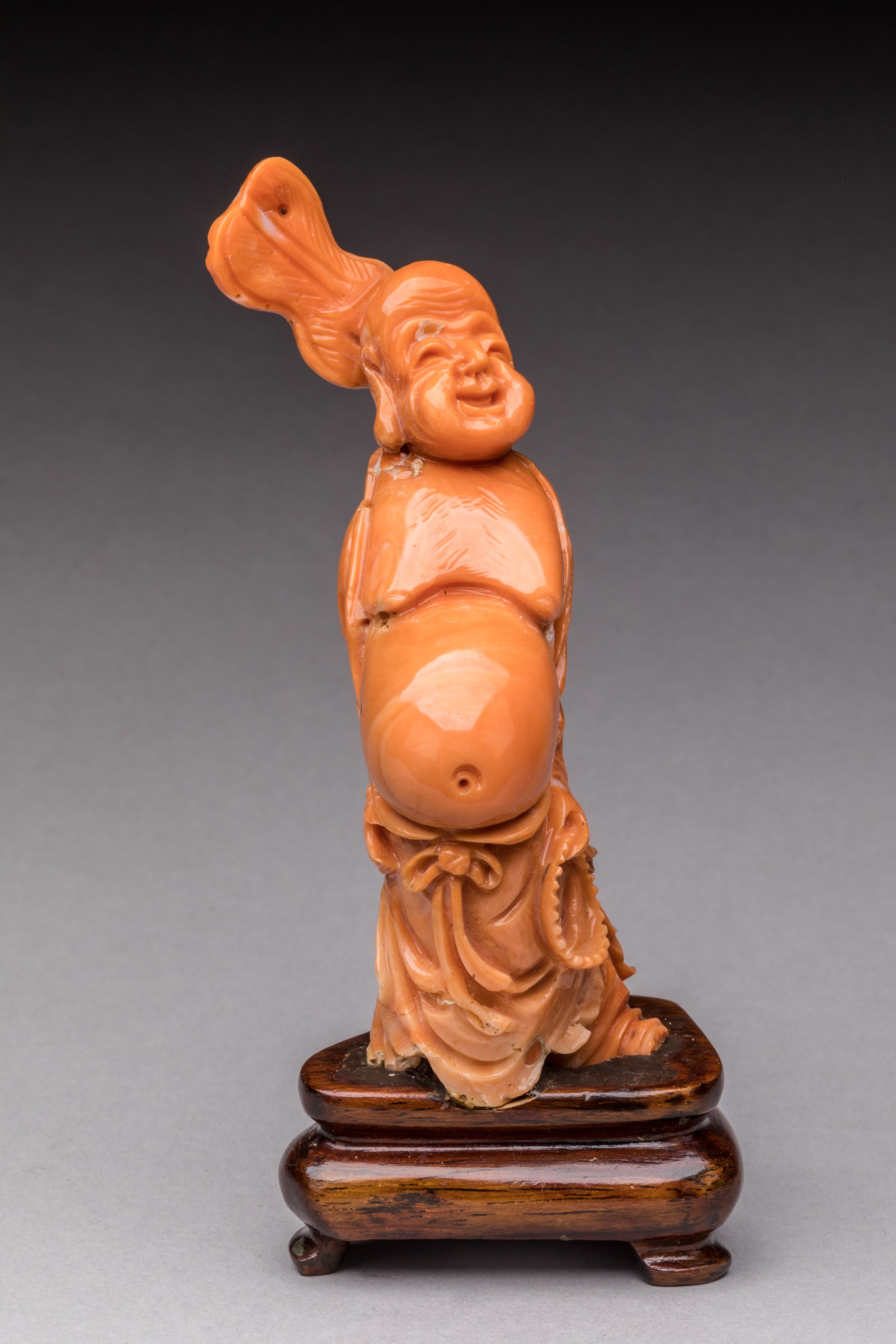 - BUDAI debout, et jeune femme. Haut. 9,5 cm.