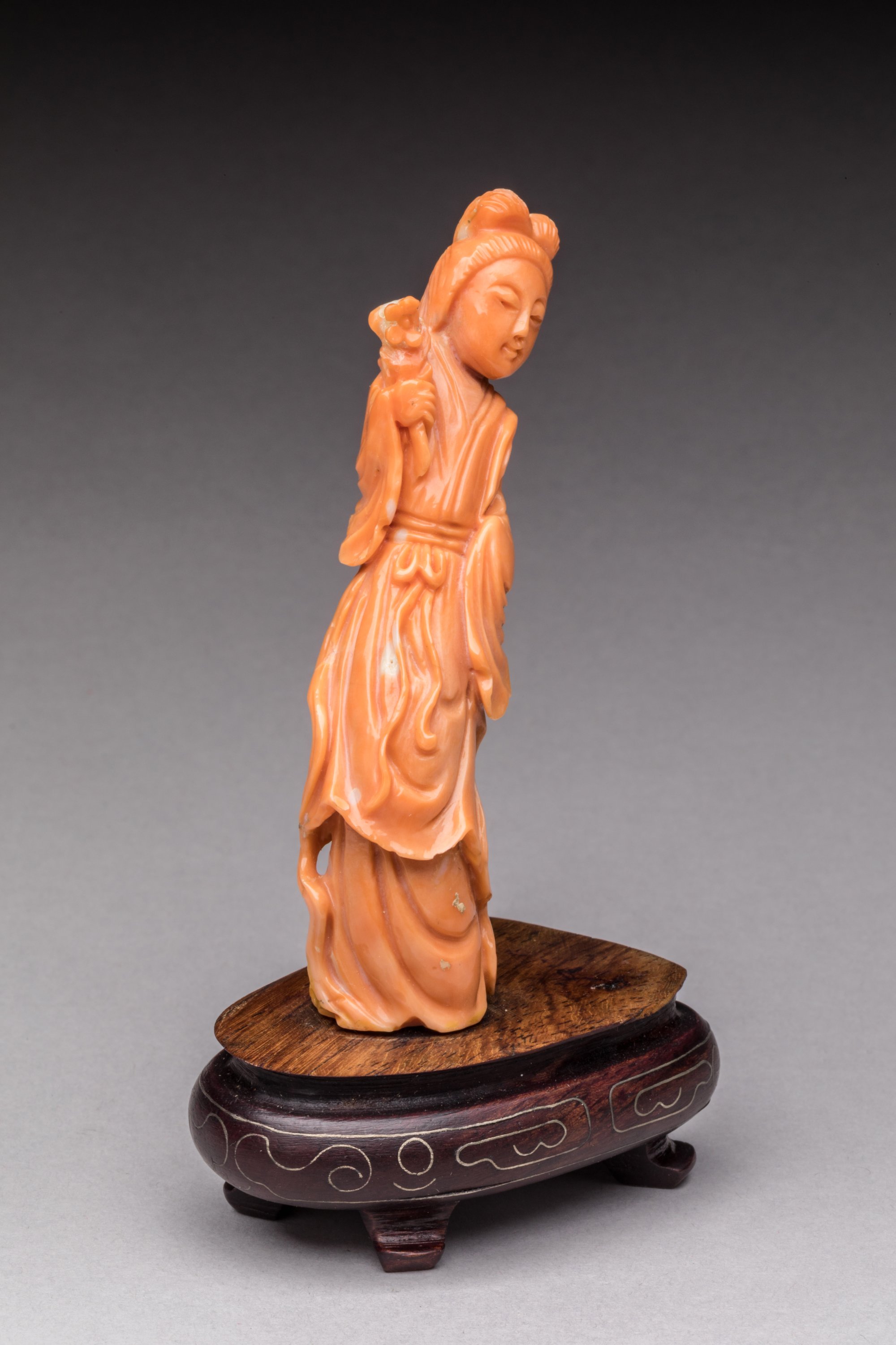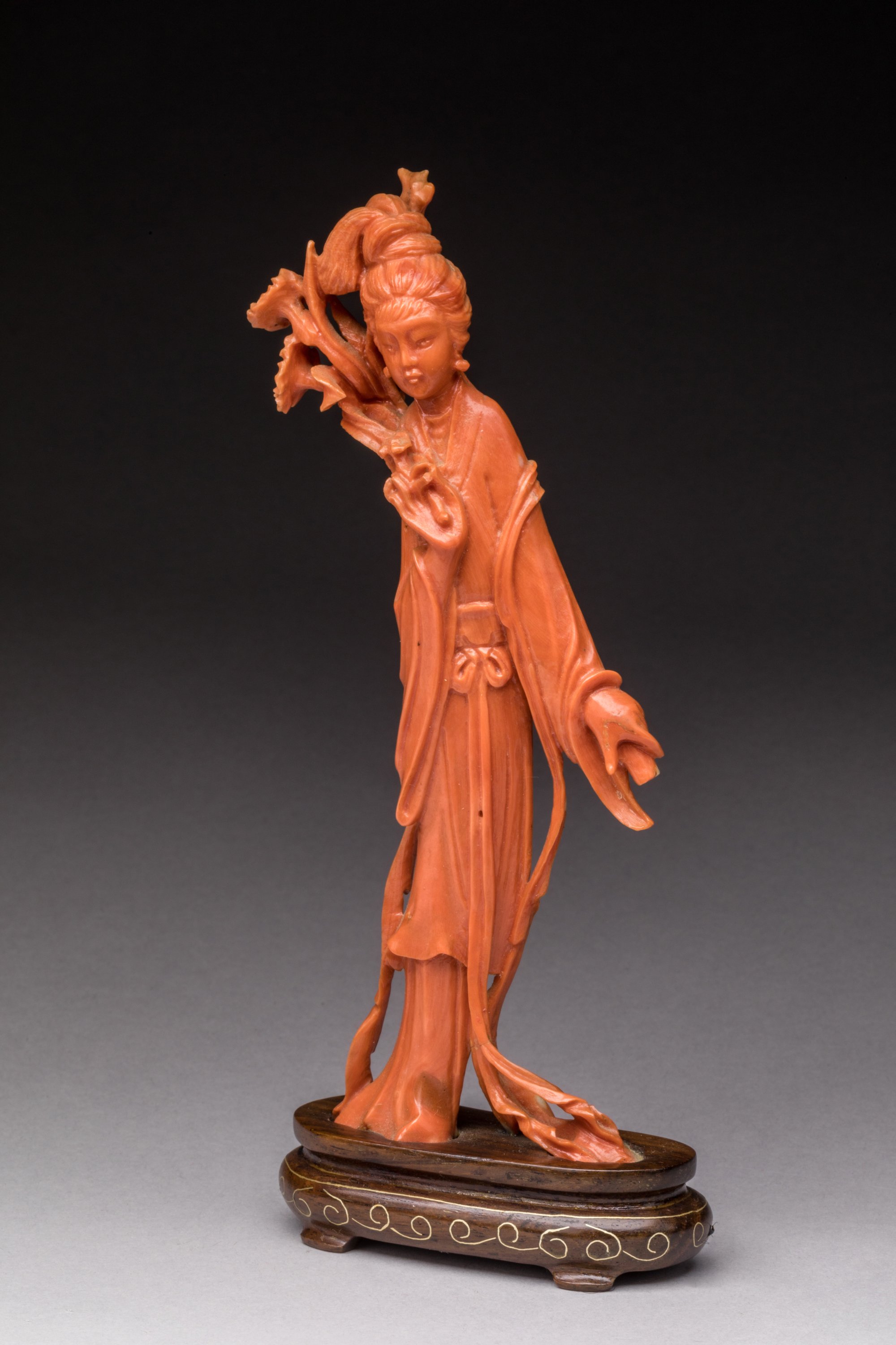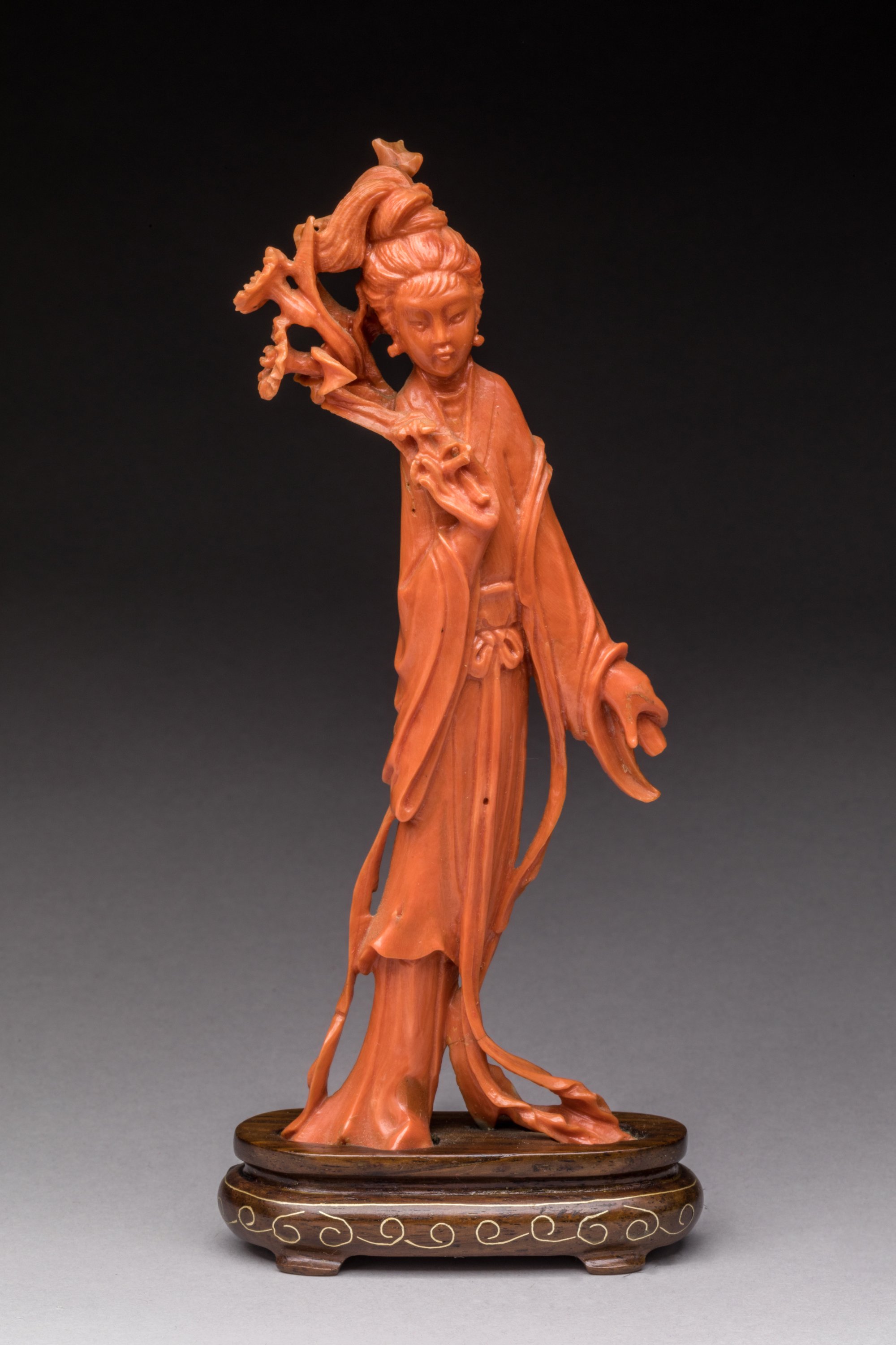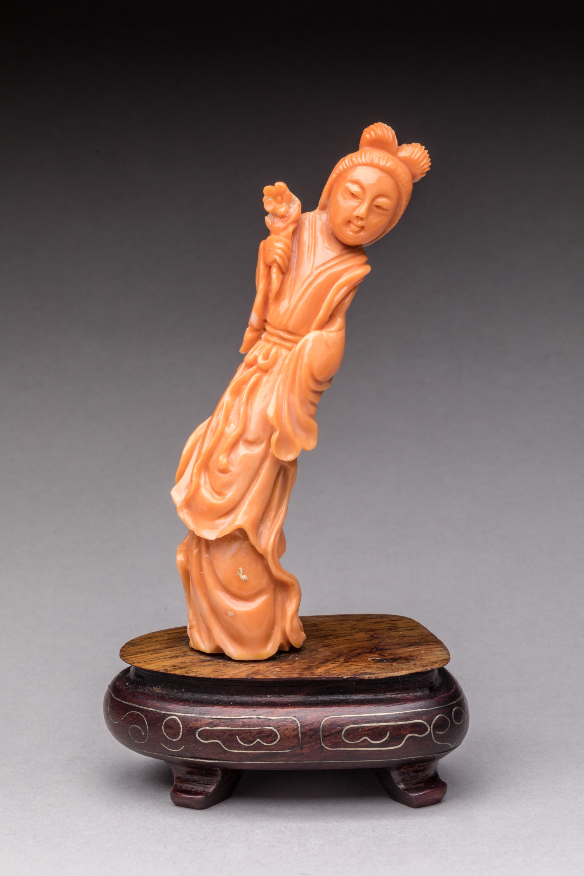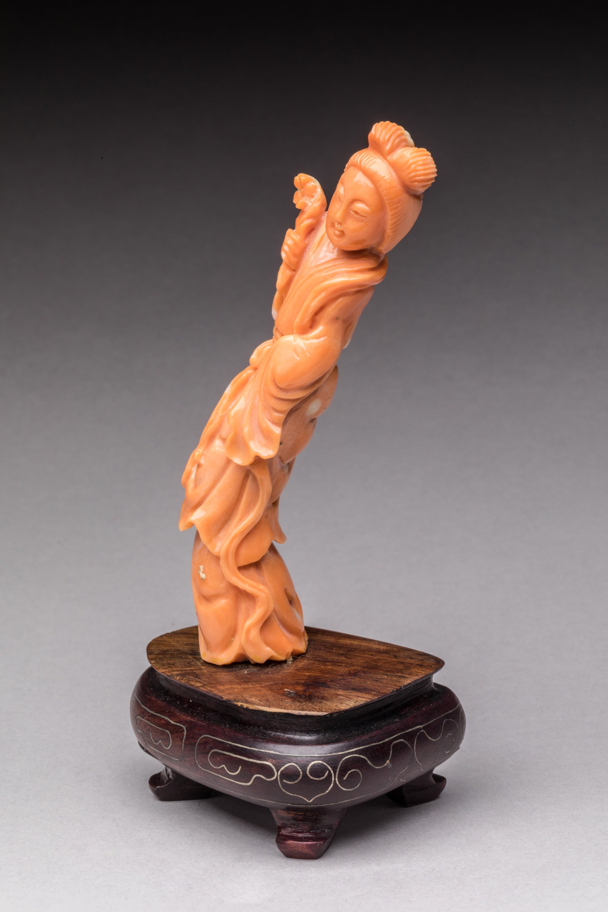 - JEUNE FEMME portant une branche fleurie. Haut. 14,5 cm.