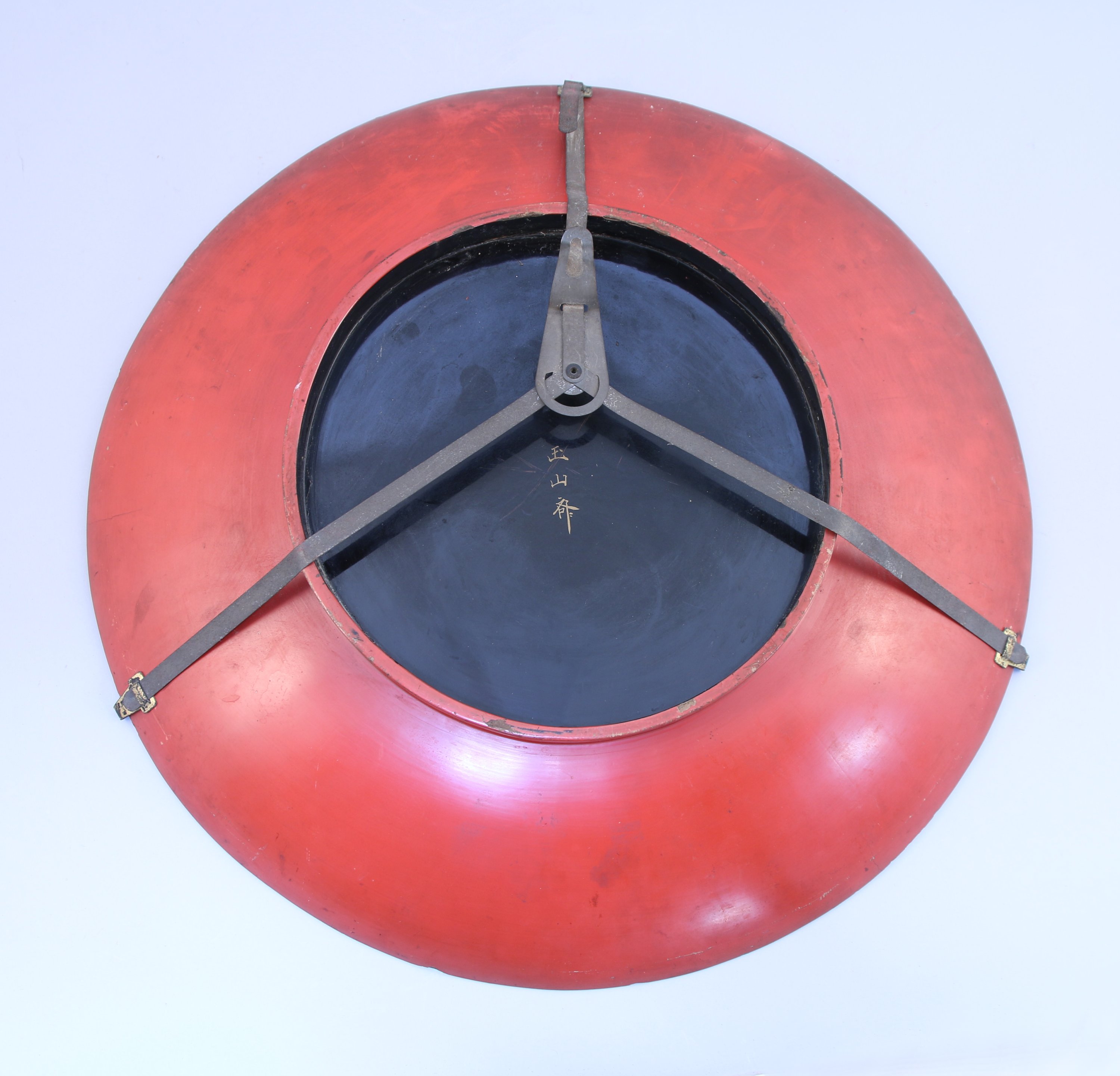 PLAT D'OFFRANDE de forme circulaire à décor laqué d'un chasseur d'araignée géante.