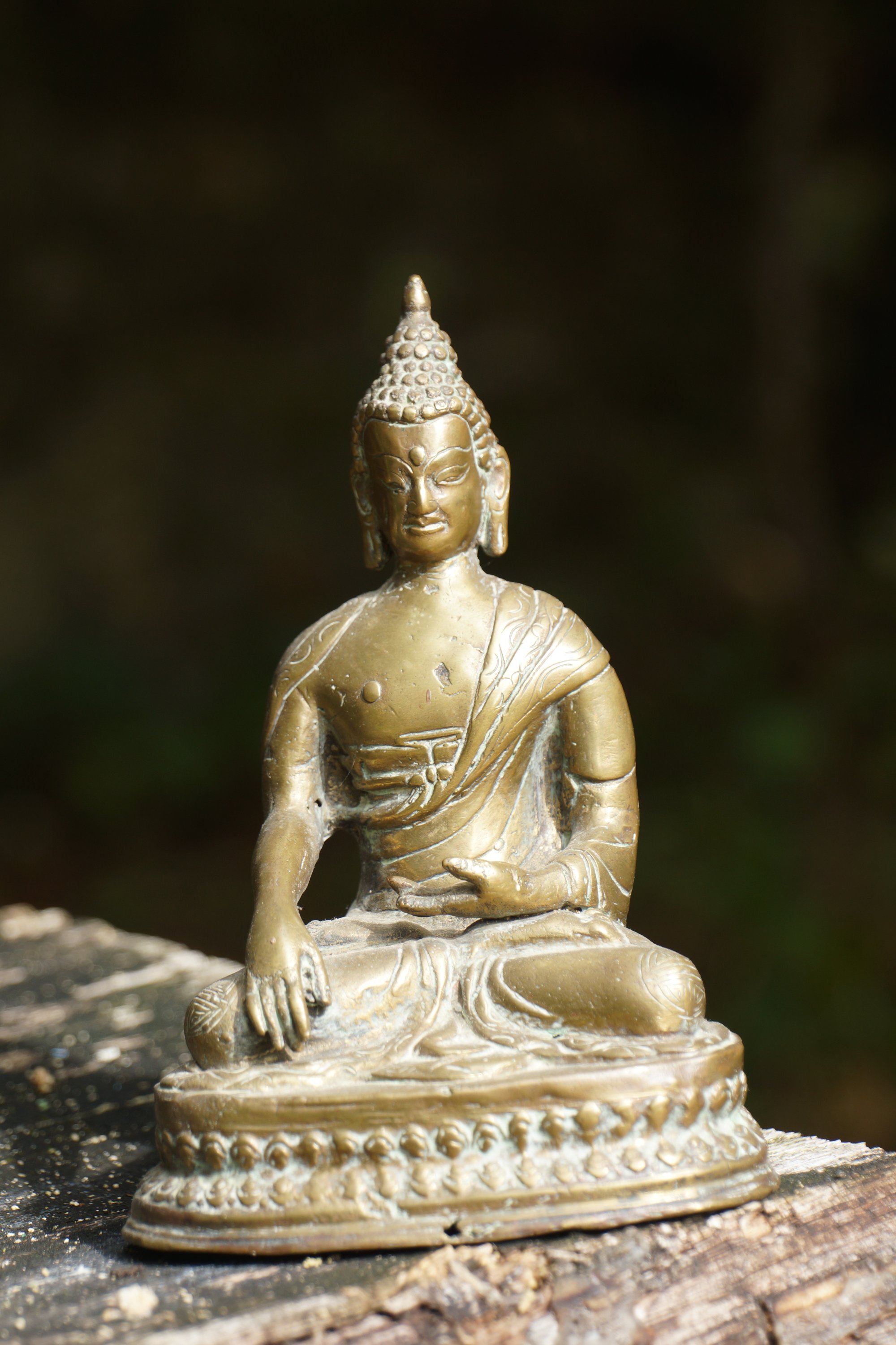 Petite STATUETTE de bouddha en bronze, assis en padmasana sur le double lotus.
