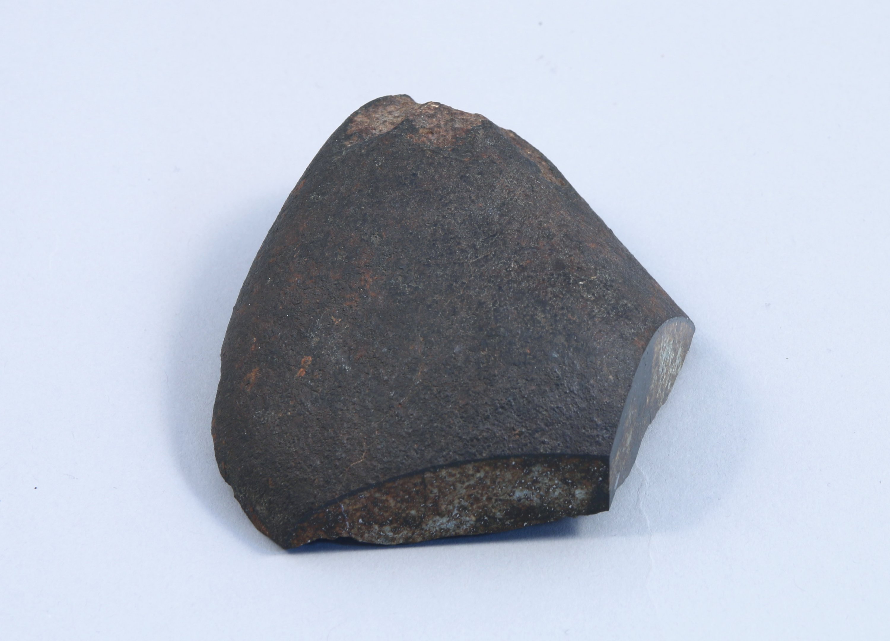 CHONDRITE LL5. Une MÉTÉORITE MAROCAINE à jolie matrice intérieure riche en chondre et ferronickel. Deux faces tranchées et polies.
