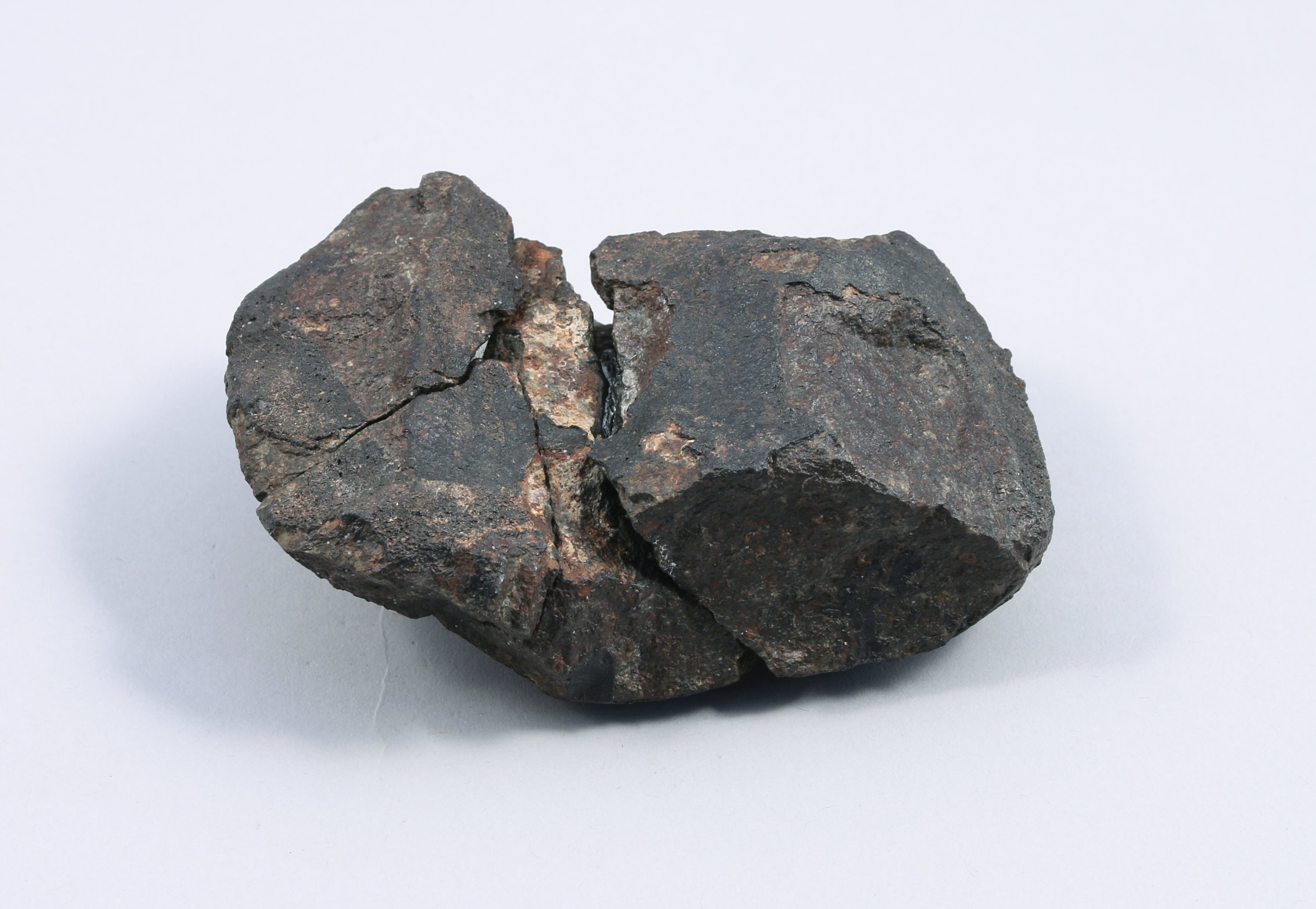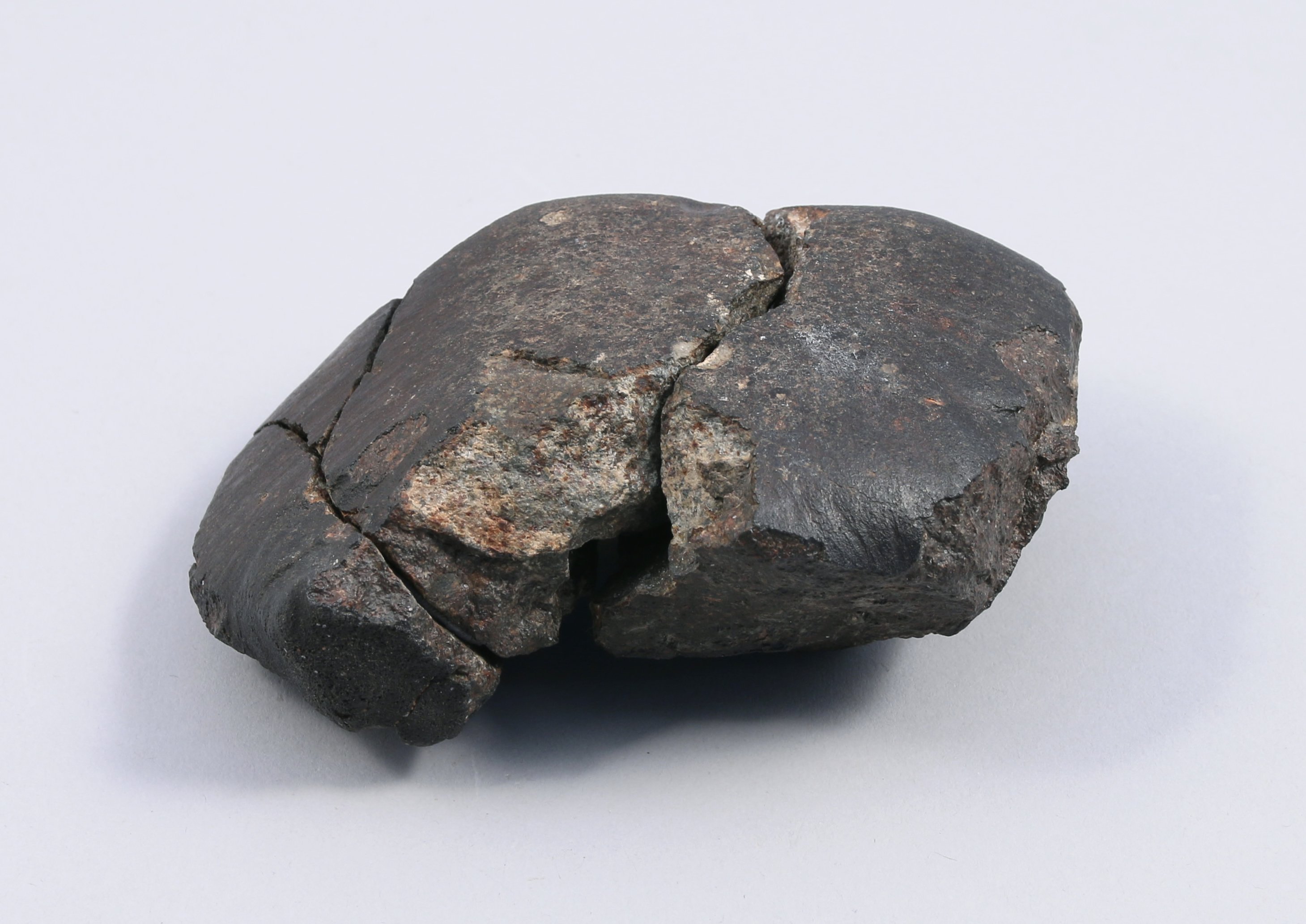 Les météorites conservant une même orientation durant la chute affichent un profil plus aérodynamique. De fait, elles sont dites " Orientées ". Celle-ci s'est cassée en 3 morceaux lorsqu'elle a touché Terre. Reformée comme au moment de sa traversée atmosphérique, elle retrouve ses " lignes de fuite " et sa belle croûte de fusion.
