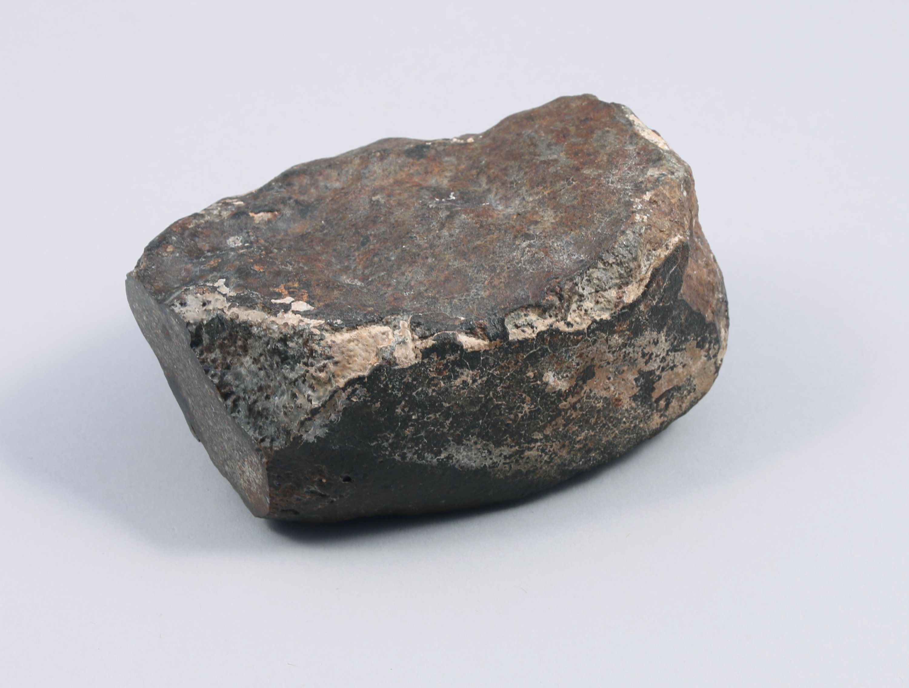 CHONDRITE L4/5. Une MÉTÉORITE trouvée à TADAOUT à belle croûte de fusion et jolis regmaglyptes. Une face coupée et polie.