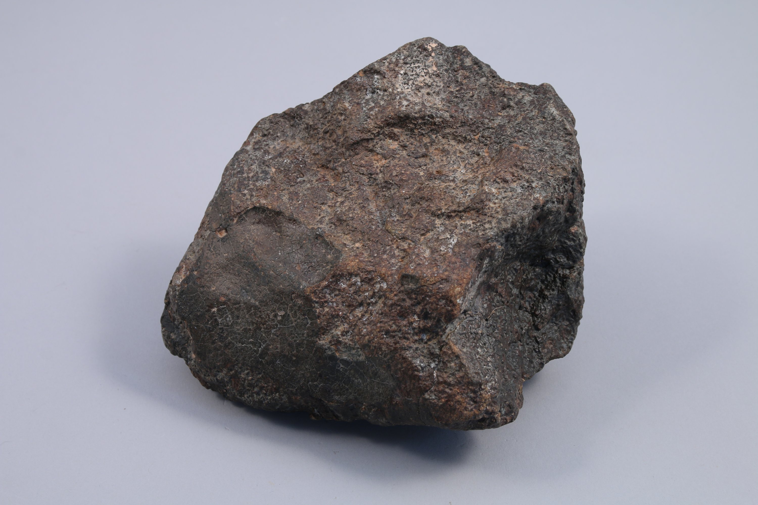 Une MÉTÉORITE entière et fondue à deux points trouvée à " EL AYOUN ". Belle croûte de fusion.