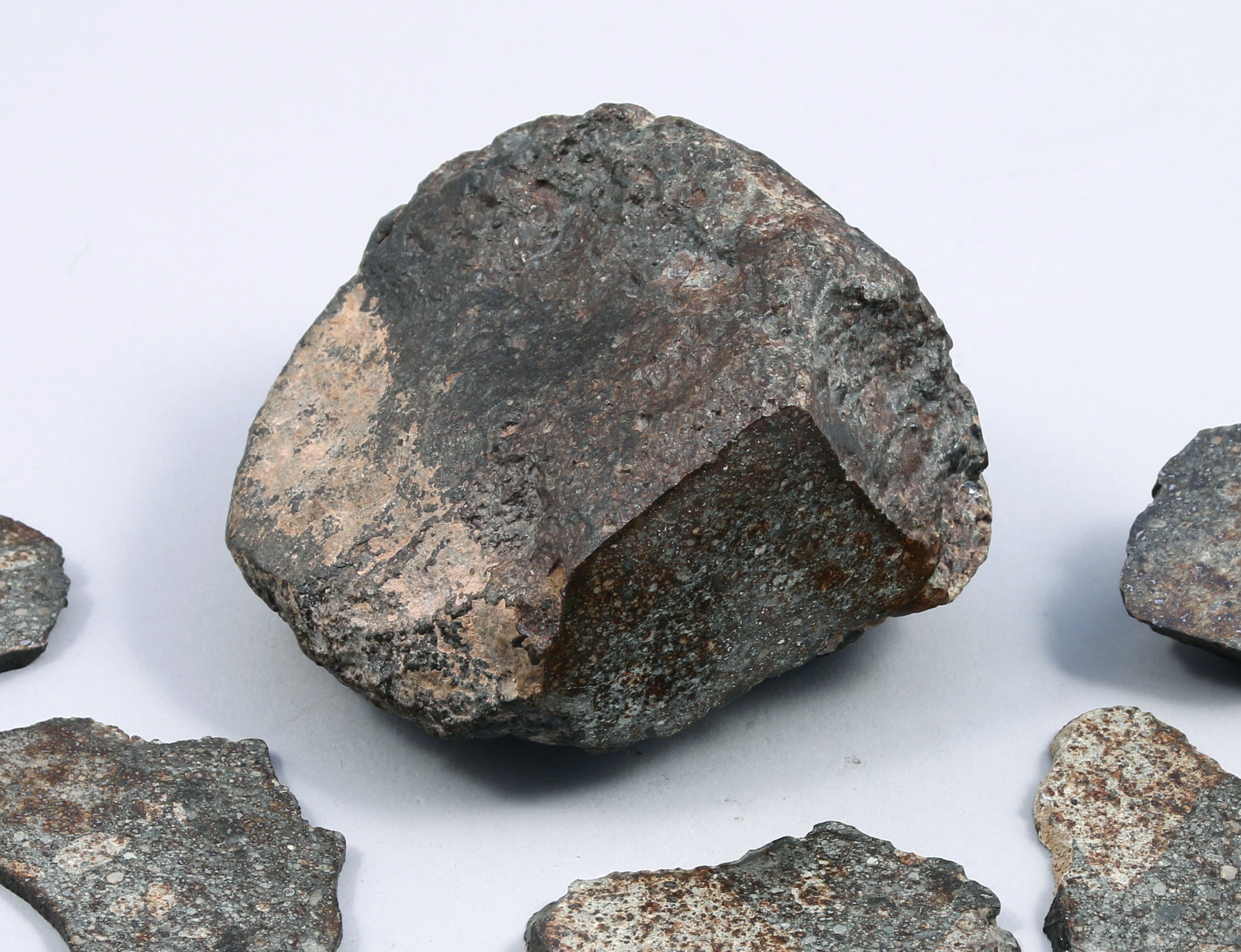 CHONDRITE L4/5. Une MÉTÉORITE et son TALON et ses TRANCHES.