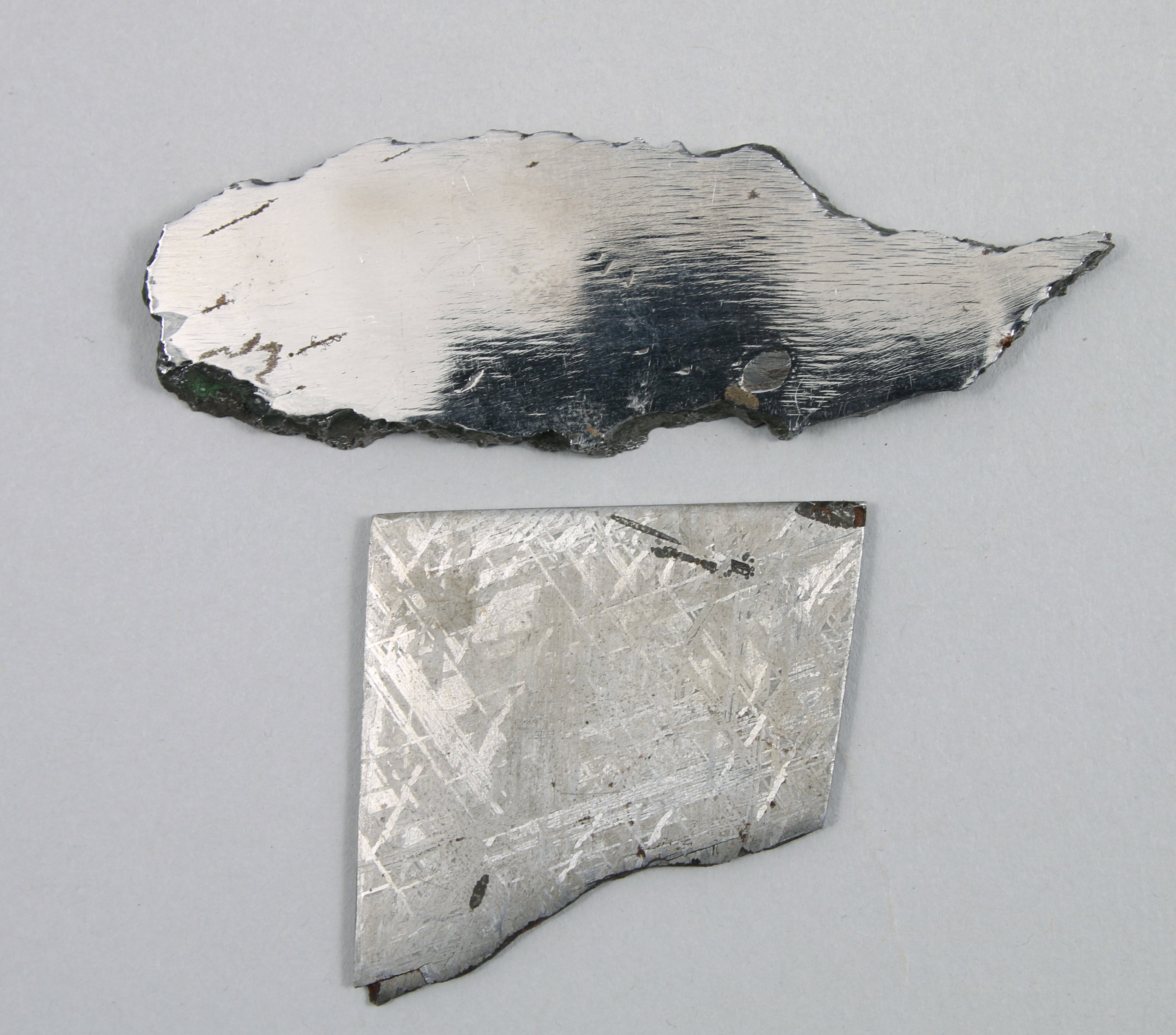 SIDÉRITES. Deux TRANCHES de MÉTÉORITES RUSSE et du NAMIBIENNE: