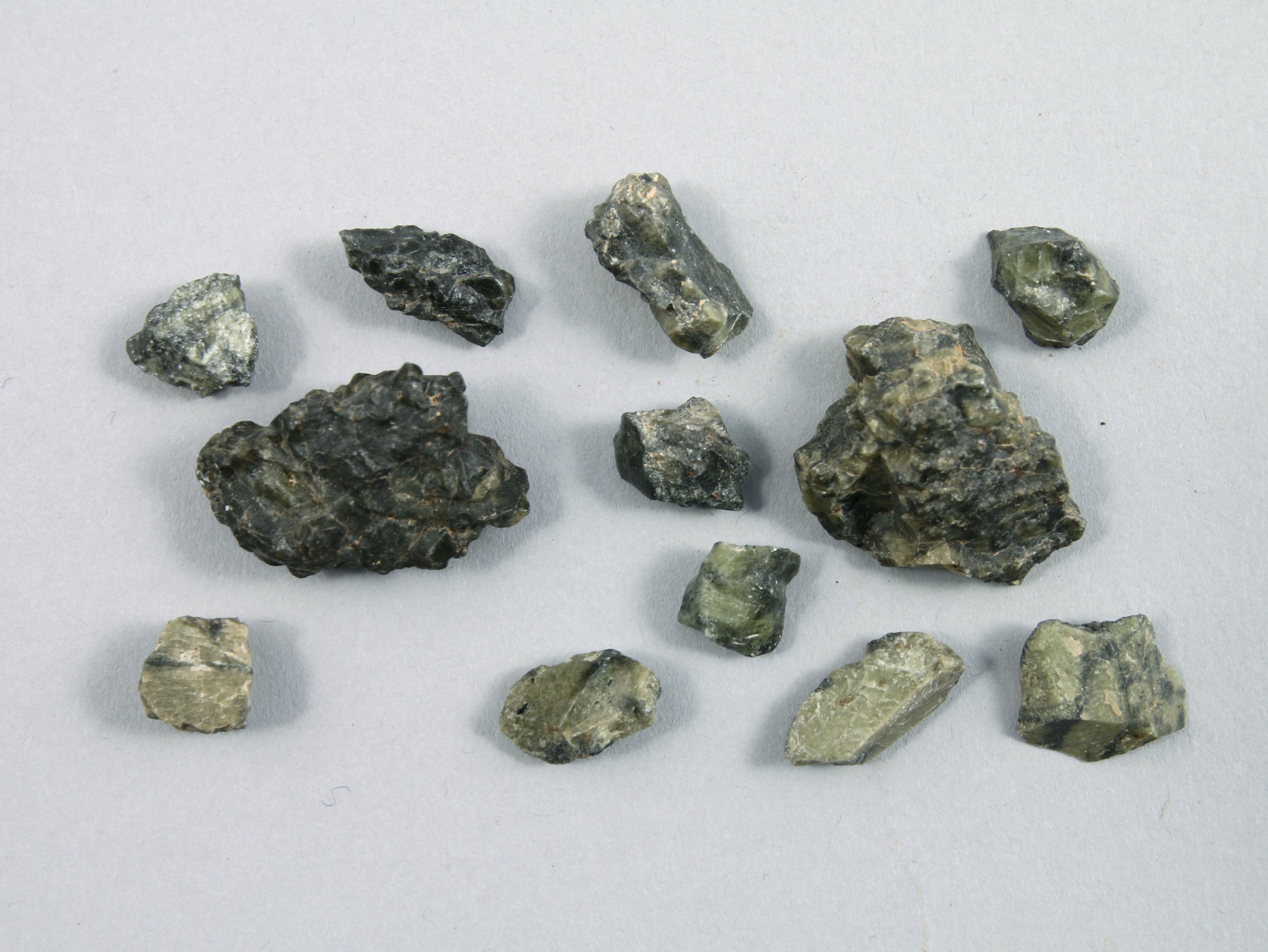 Poids total: 21,9 g. (Dix morceaux de 0,7 à 1,5 g ; deux morceaux de 6 et 6,6 g.)