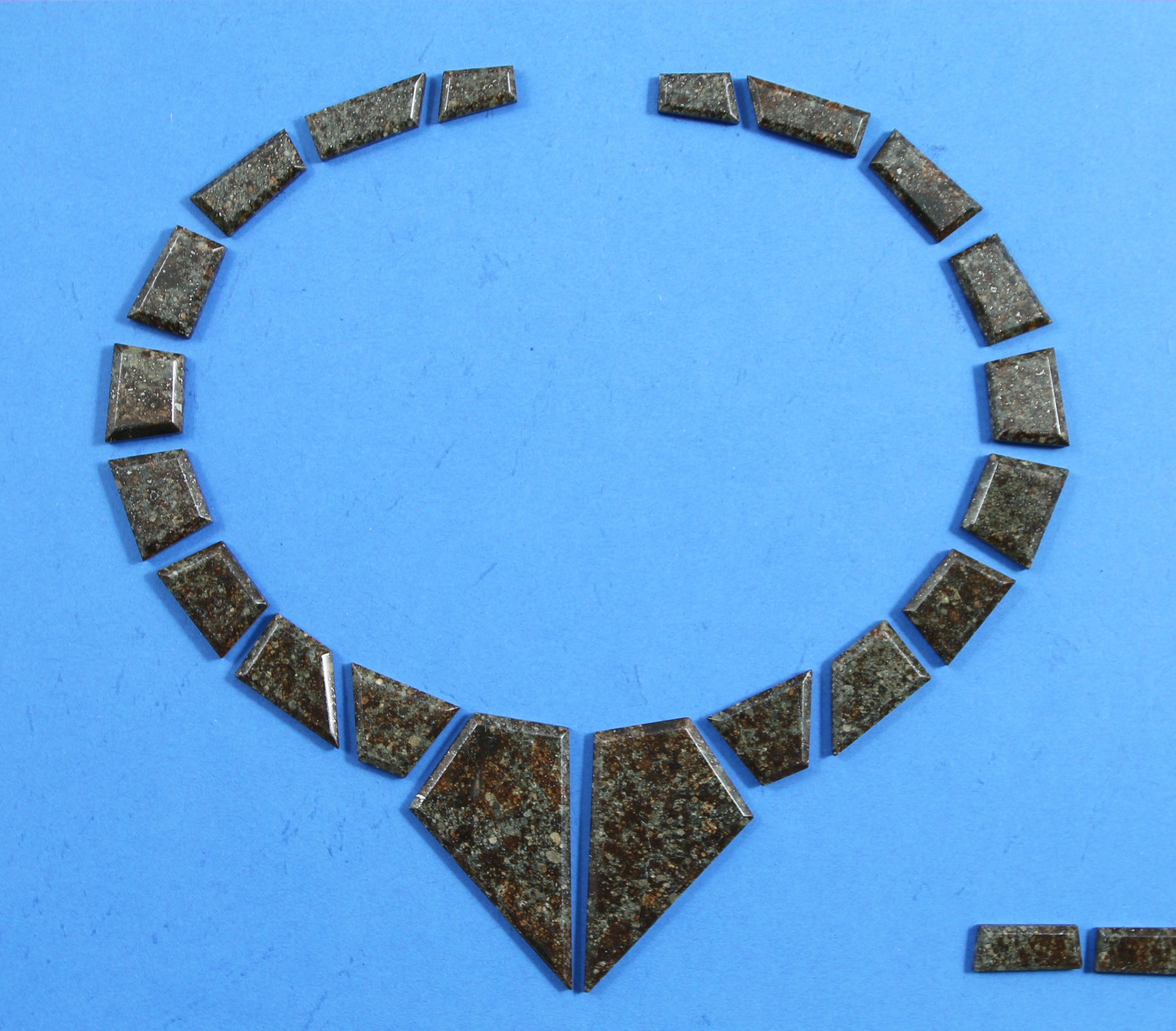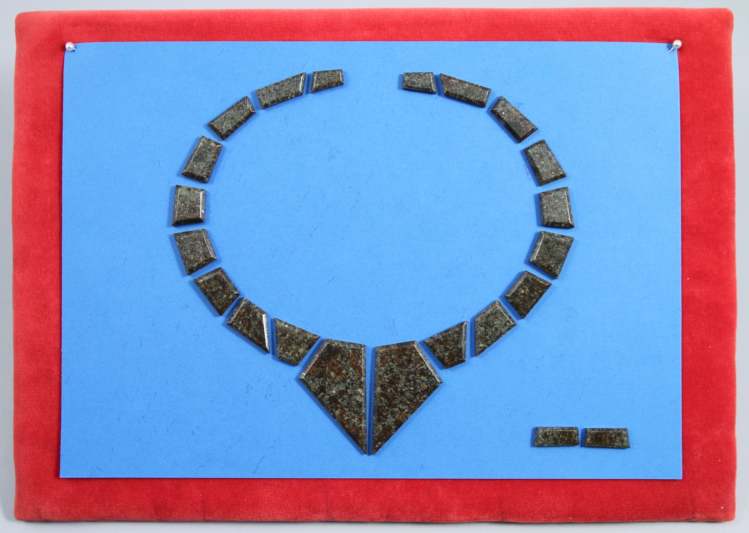 CHONDRITE H ou L. COLLIER de l'ESPACE composée de 24 PIÈCES en MÉTÉORITE facettée de la " Ceinture d'Astéroïdes " entre Mars et Jupiter. Faces polies et légèrement vernies. Création originale (fragile et précieuse).
