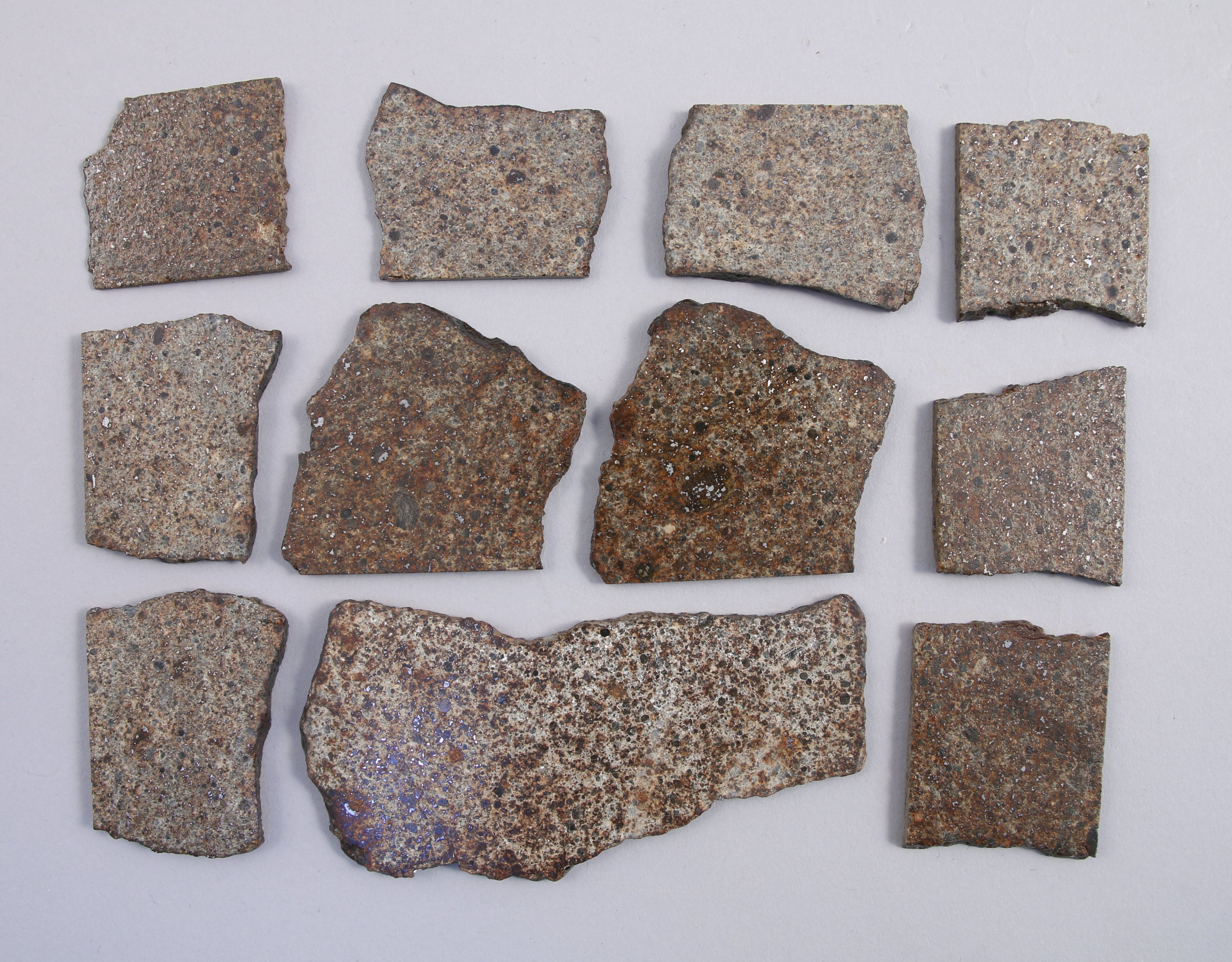 Joint: CHONDRITE LL4. Dix TRANCHES de MÉTÉORITE. Poids total 157,4 g.