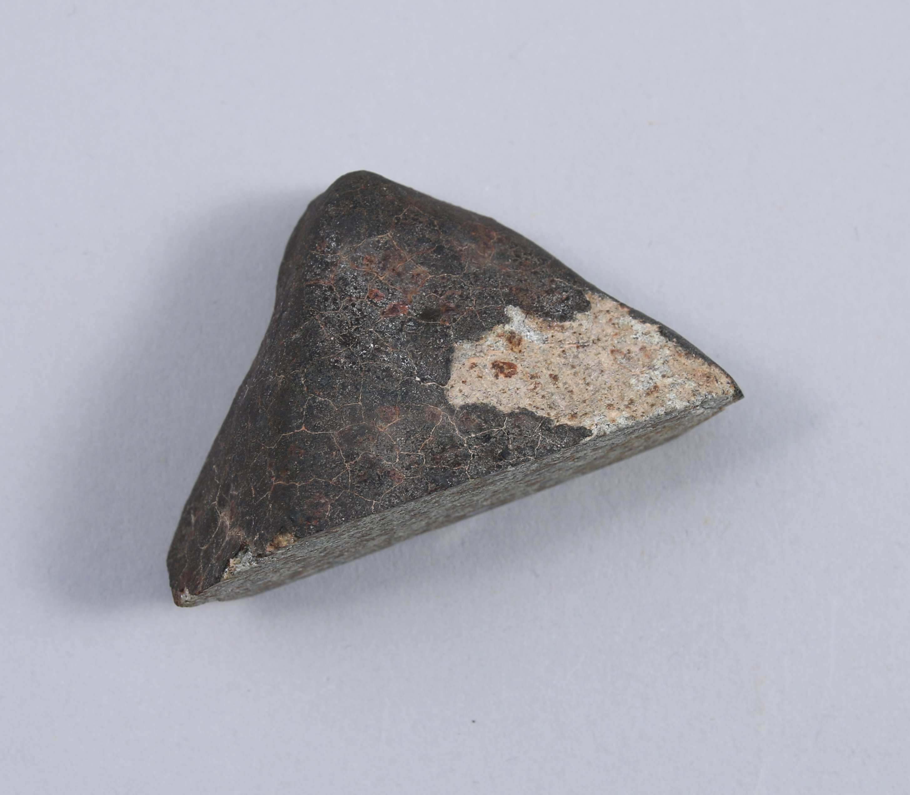 Joint: CHONDRITE L4/L5. Une TRANCHE de MÉTÉORITE. 19,5 g., 55 x 30 mm.