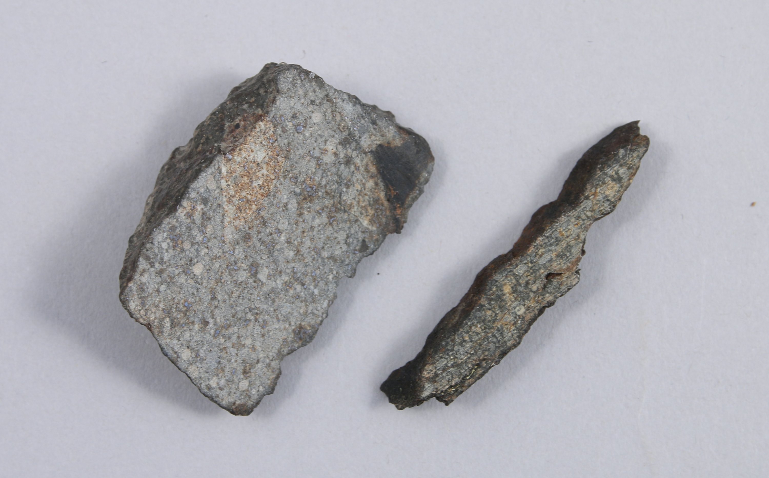 CHONDRITE. RÉUNION d'une TRANCHE et d'un TALON de MÉTÉORITE AMÉRICAINE et ALGÉRIENNE: