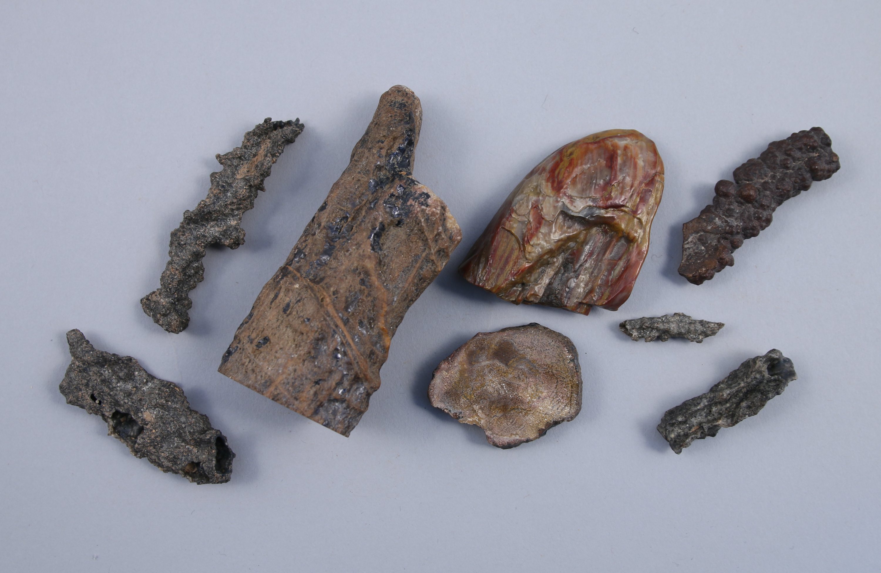 SOUVENIRS DE CHASSE AUX PIERRES DE TONNERRE. RÉUNION de cinq FULGURITES trouvées en " LIBYE ".