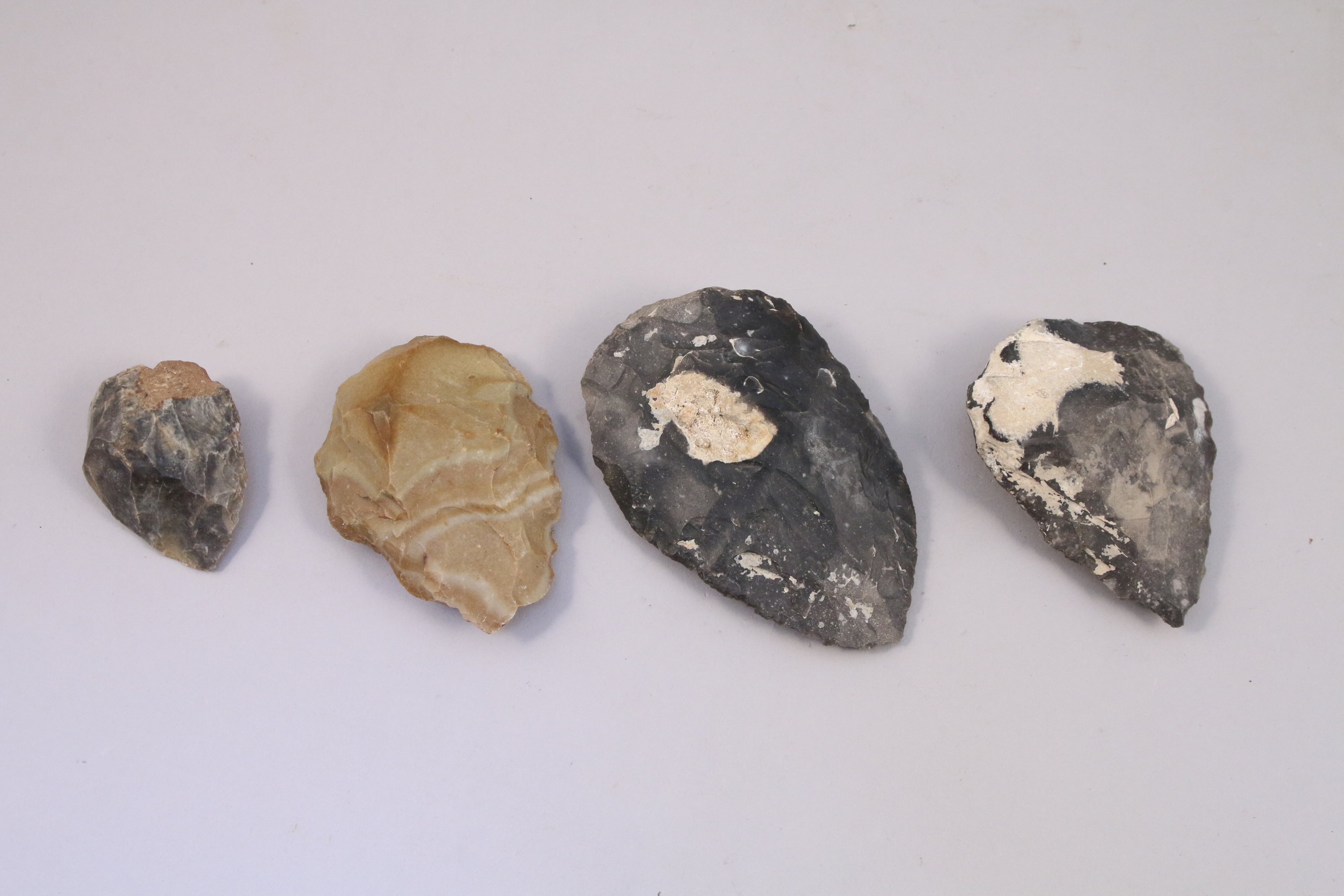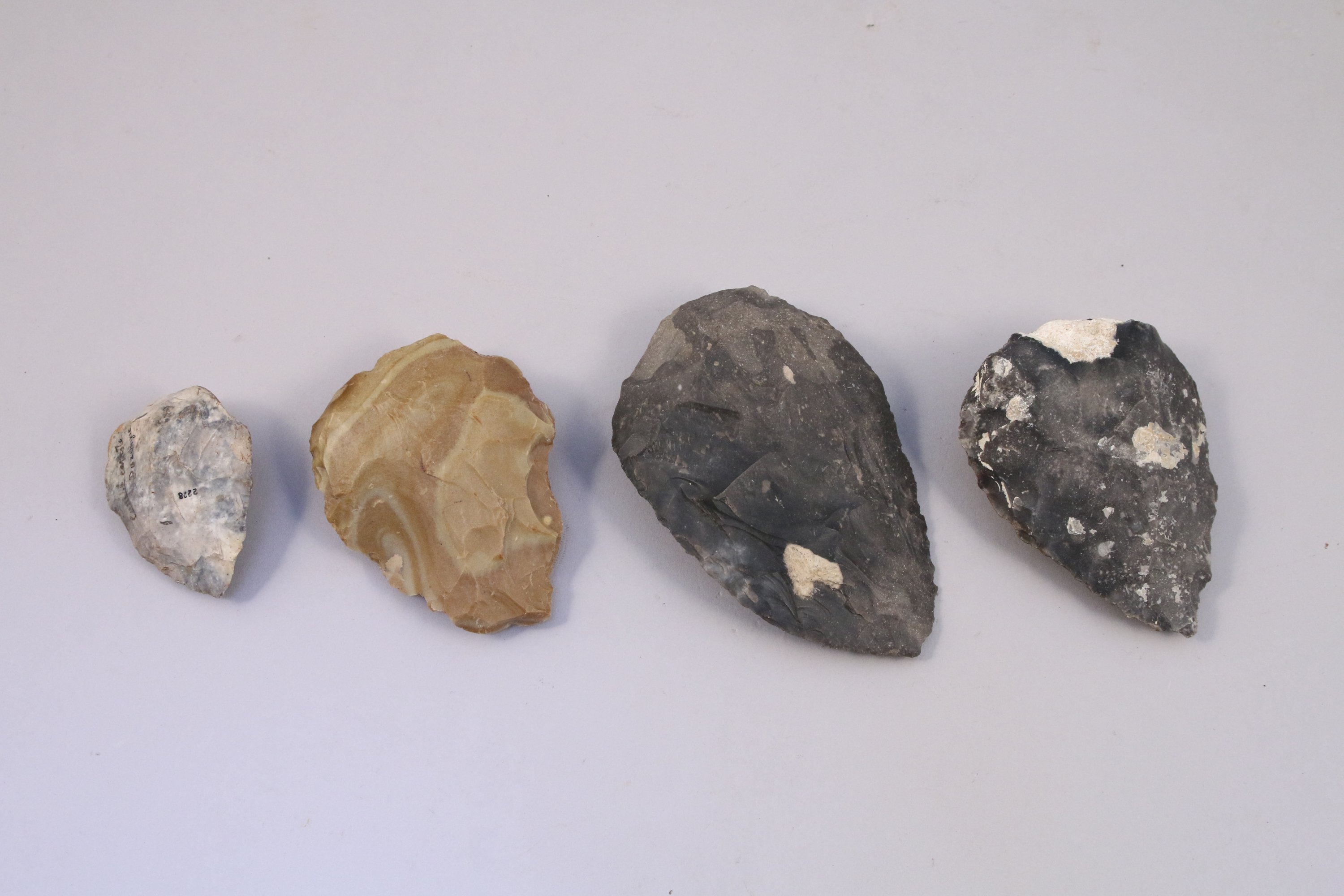 FRANCE - Époque NéolithiqueQUATRE BIFACES : - Silex gris .Haut.6,8...