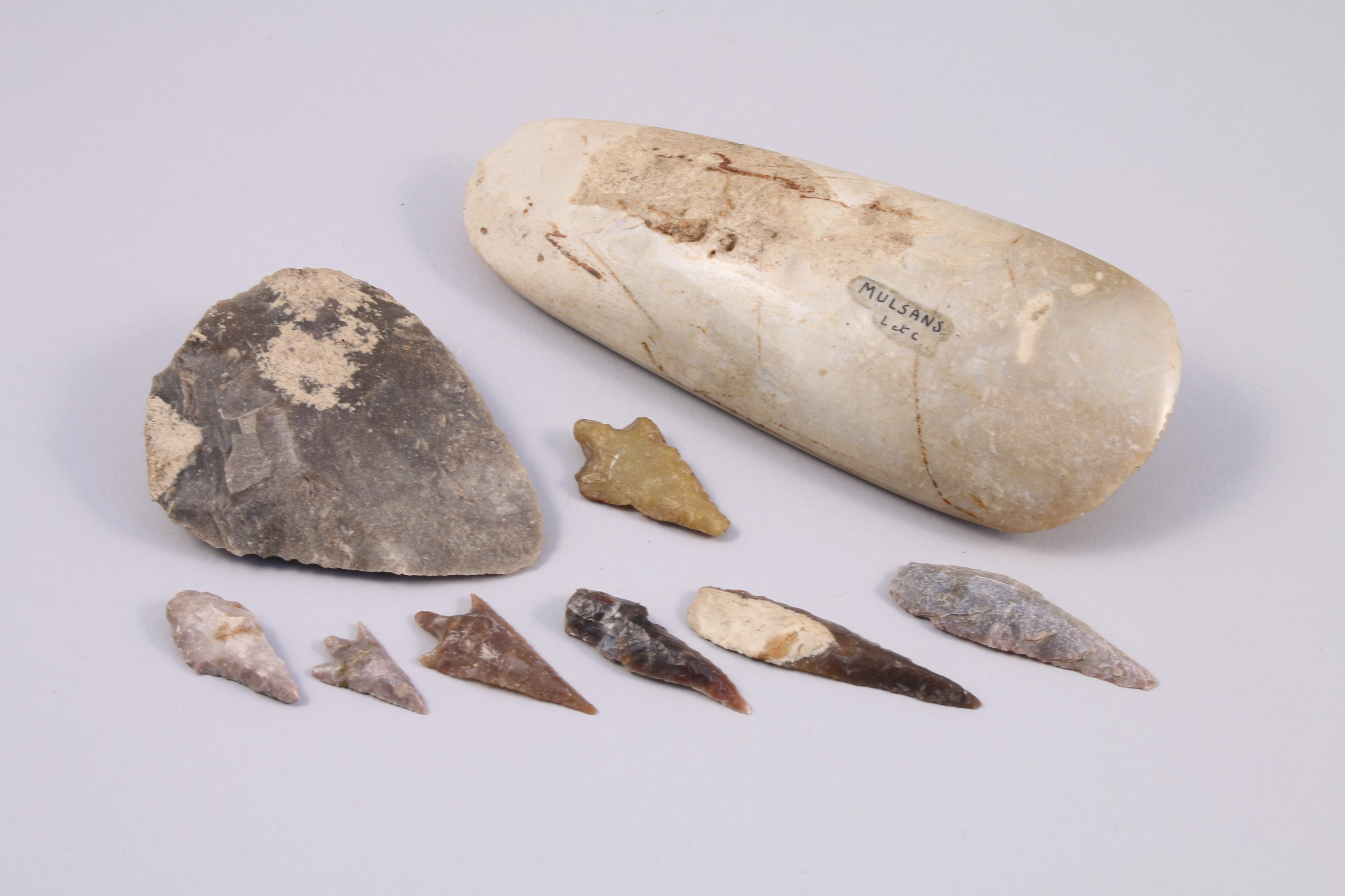 - UNE HACHE polie, pierre beige. Provenance Mulsans (Loir-et-Cher). Long. 17 cm.