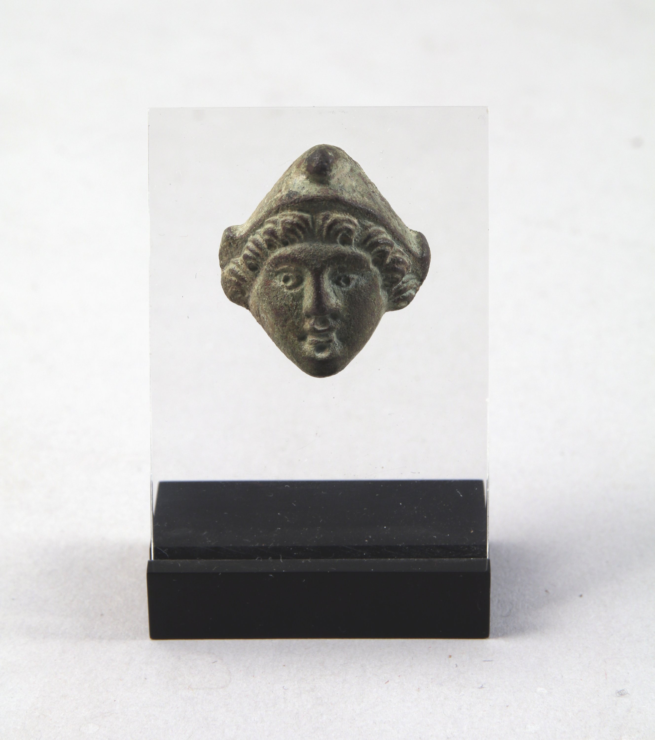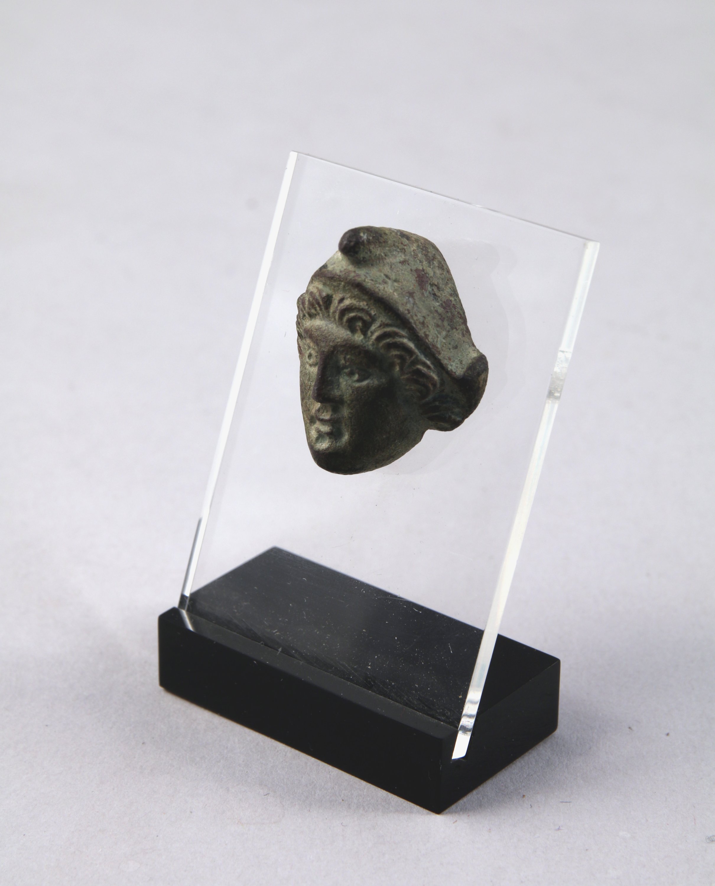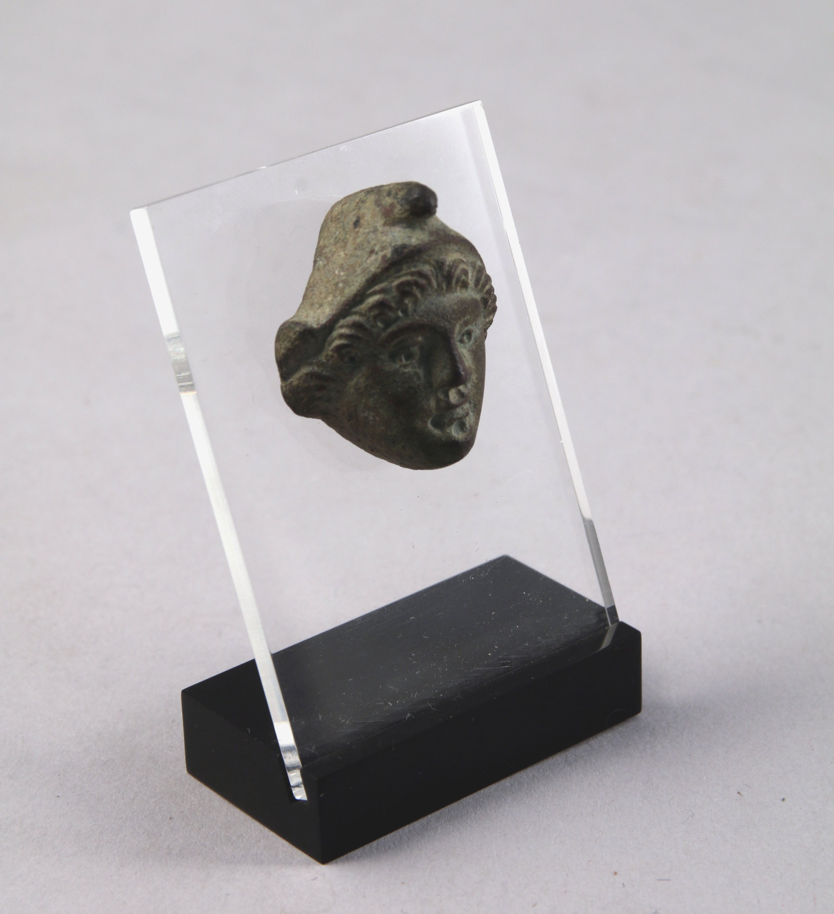 MASQUE miniature d'une divinité. Bronze.Serait la tête d'un phrygien.Haut. 3,...