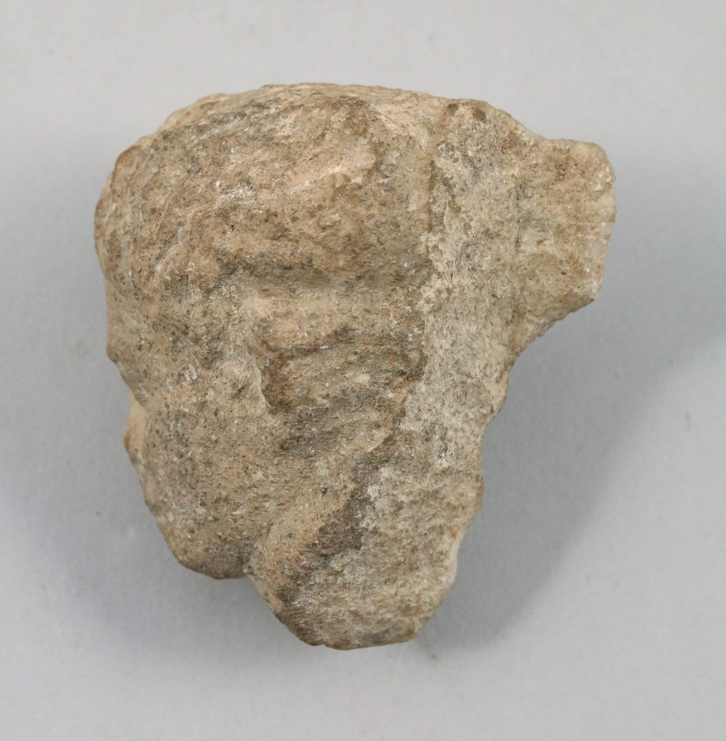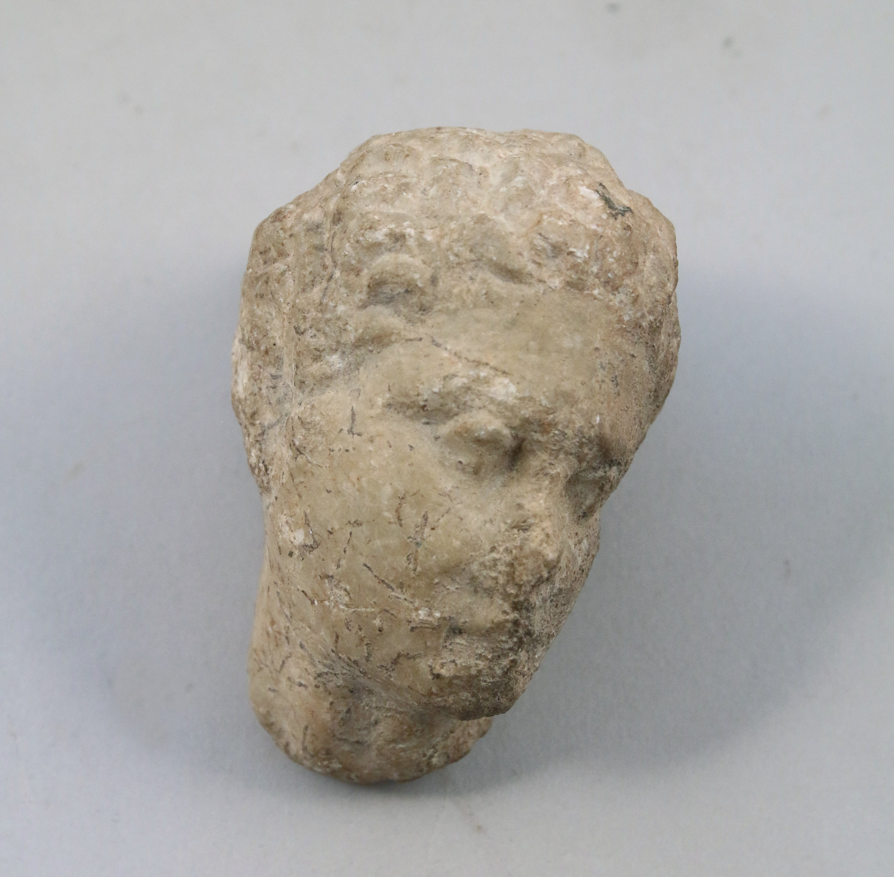 TÊTE D'UNE DIVINITÉ. Marbre, patine de fouille.
