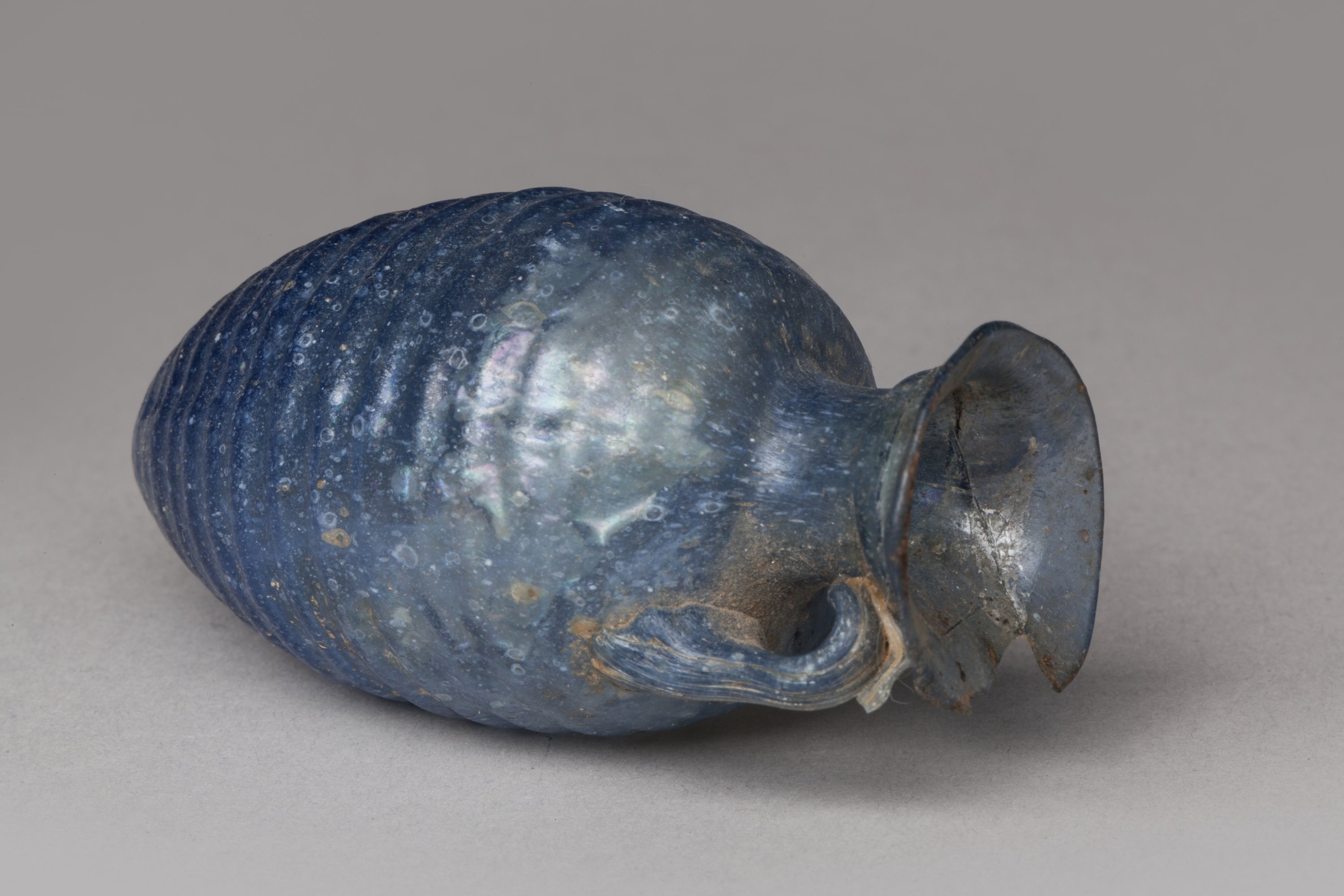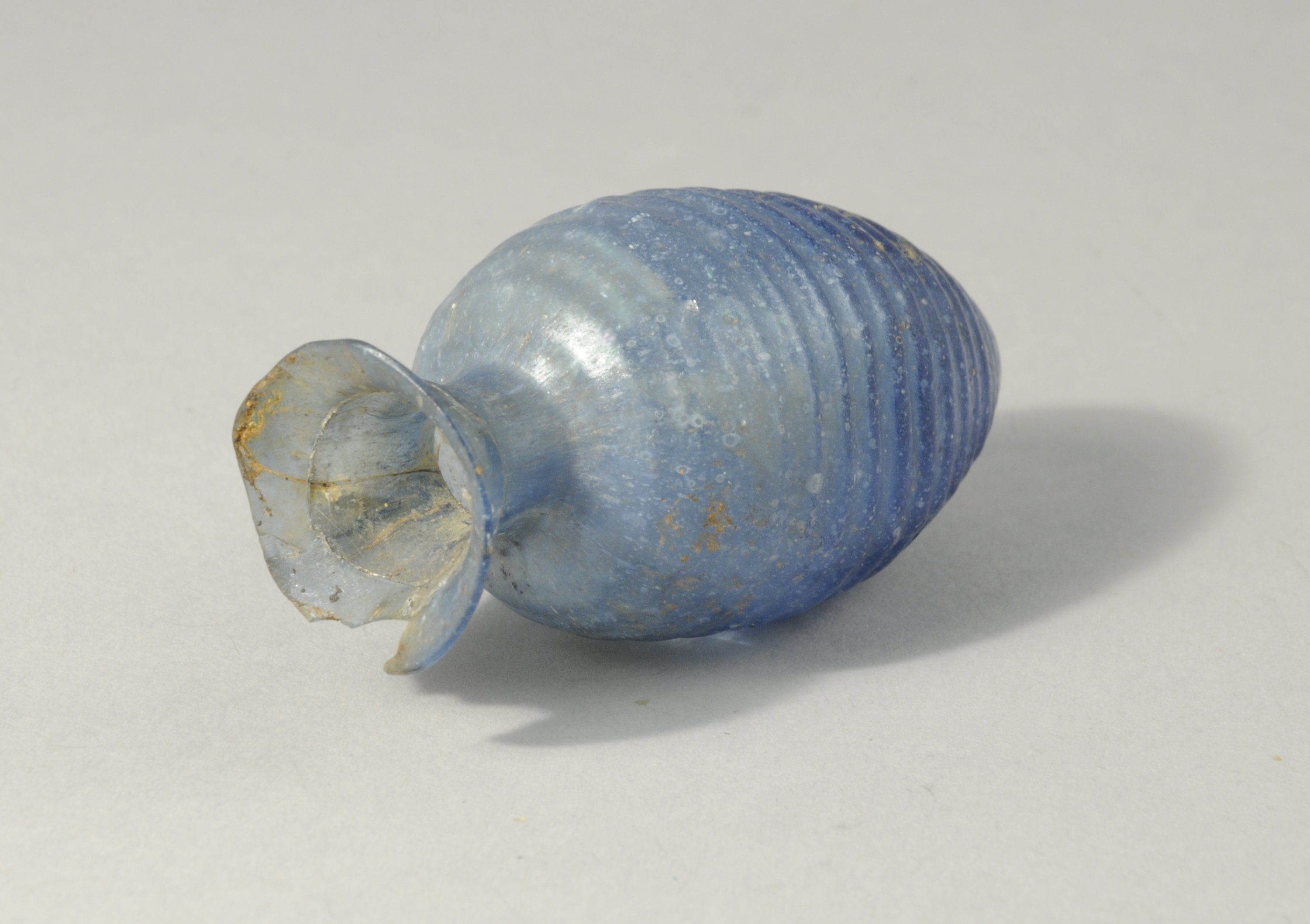 LACRYMATOIRE. Verre bleu, corps à rainures.