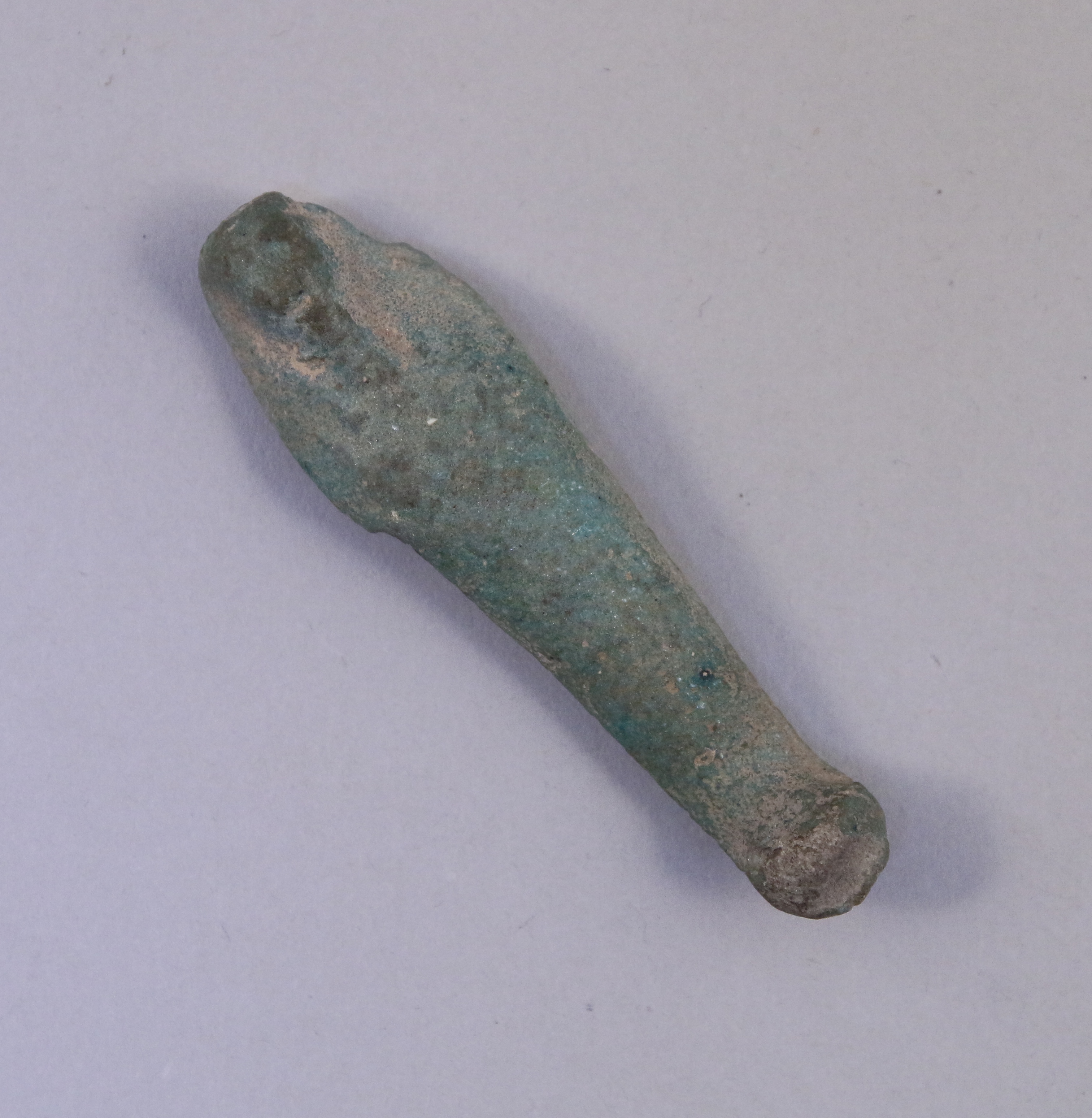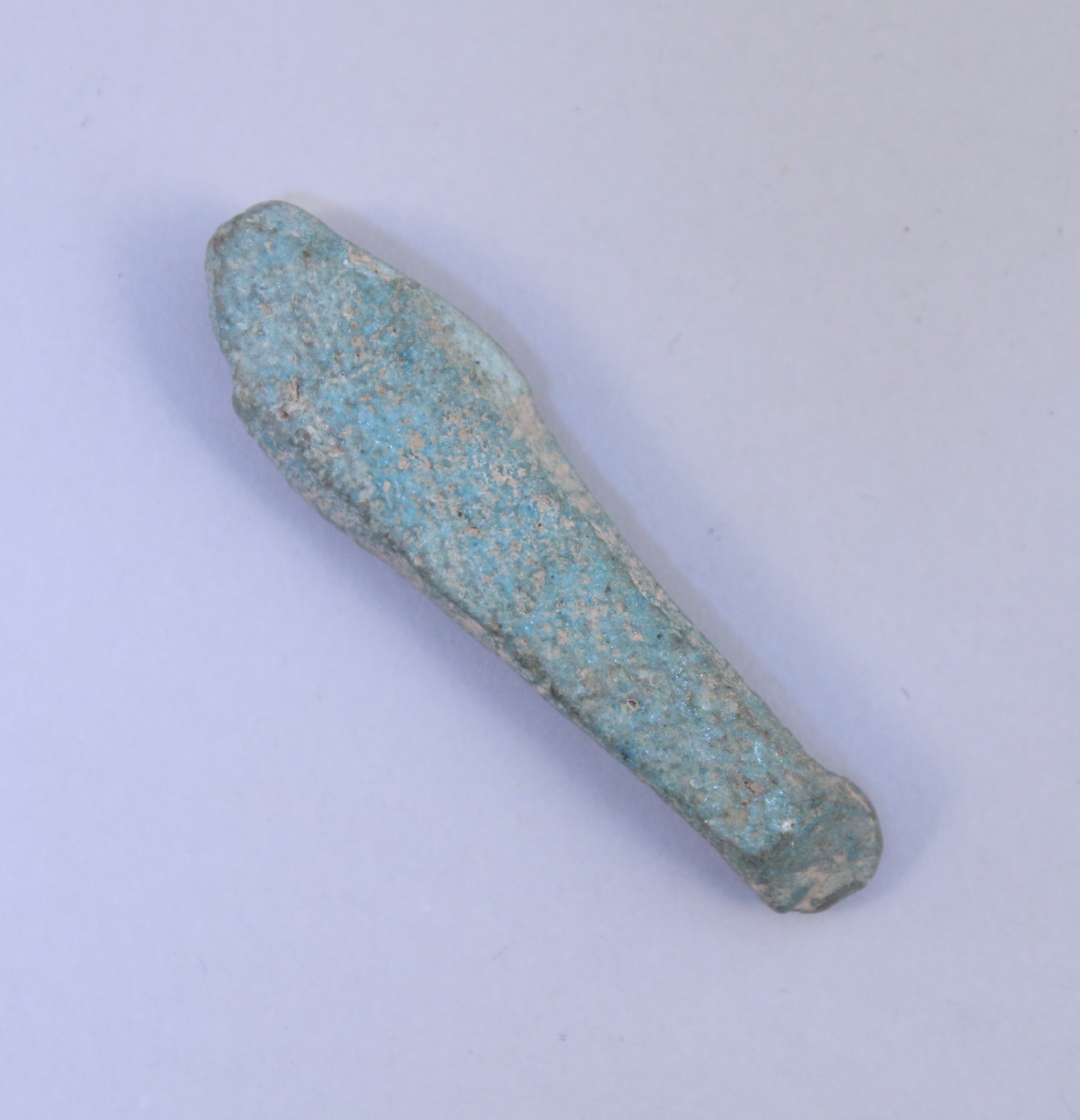 ÉGYPTE - Basse ÉpoqueOUCHEBTI miniature. Faïence à glaçure verte. Long....