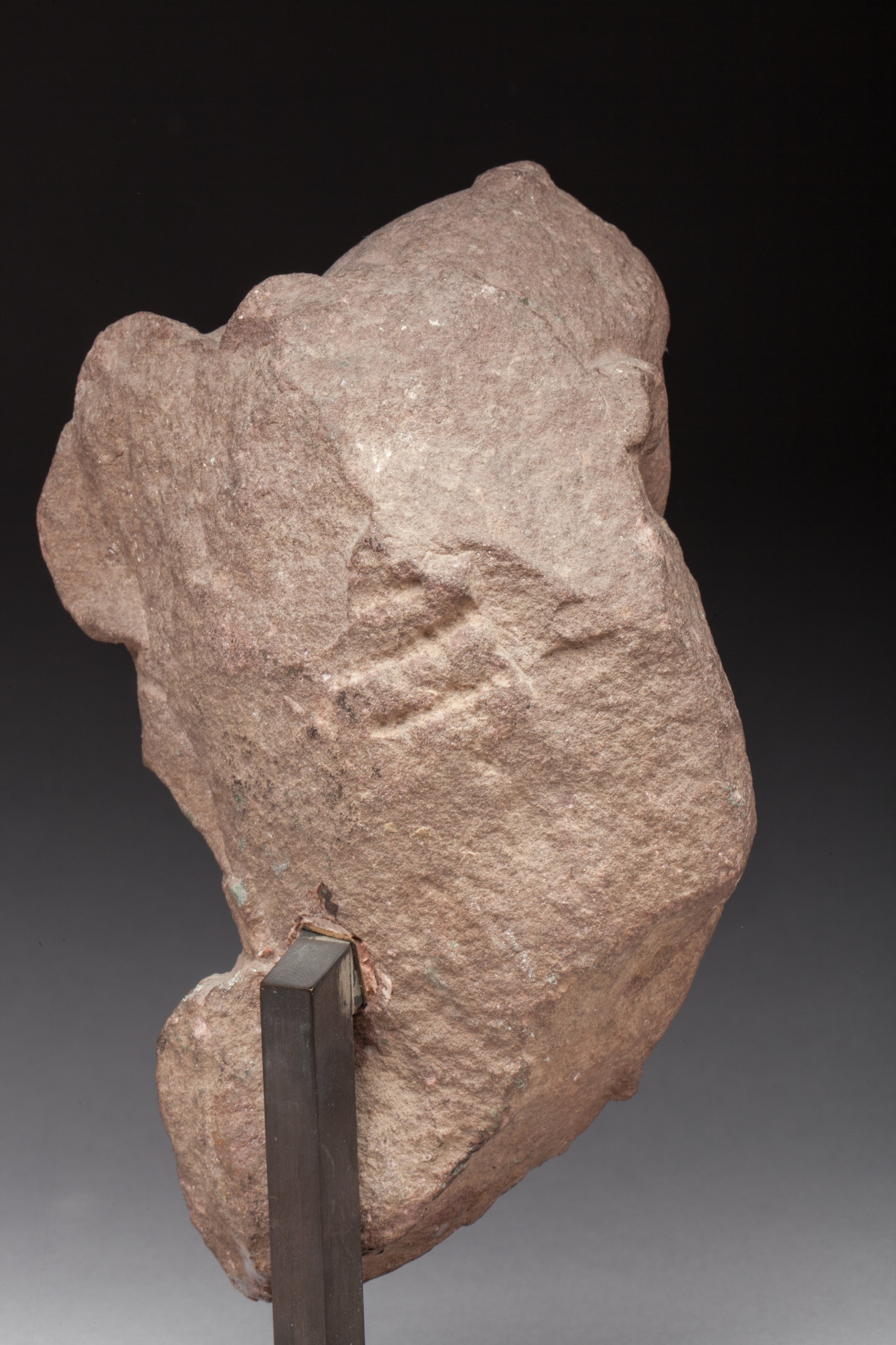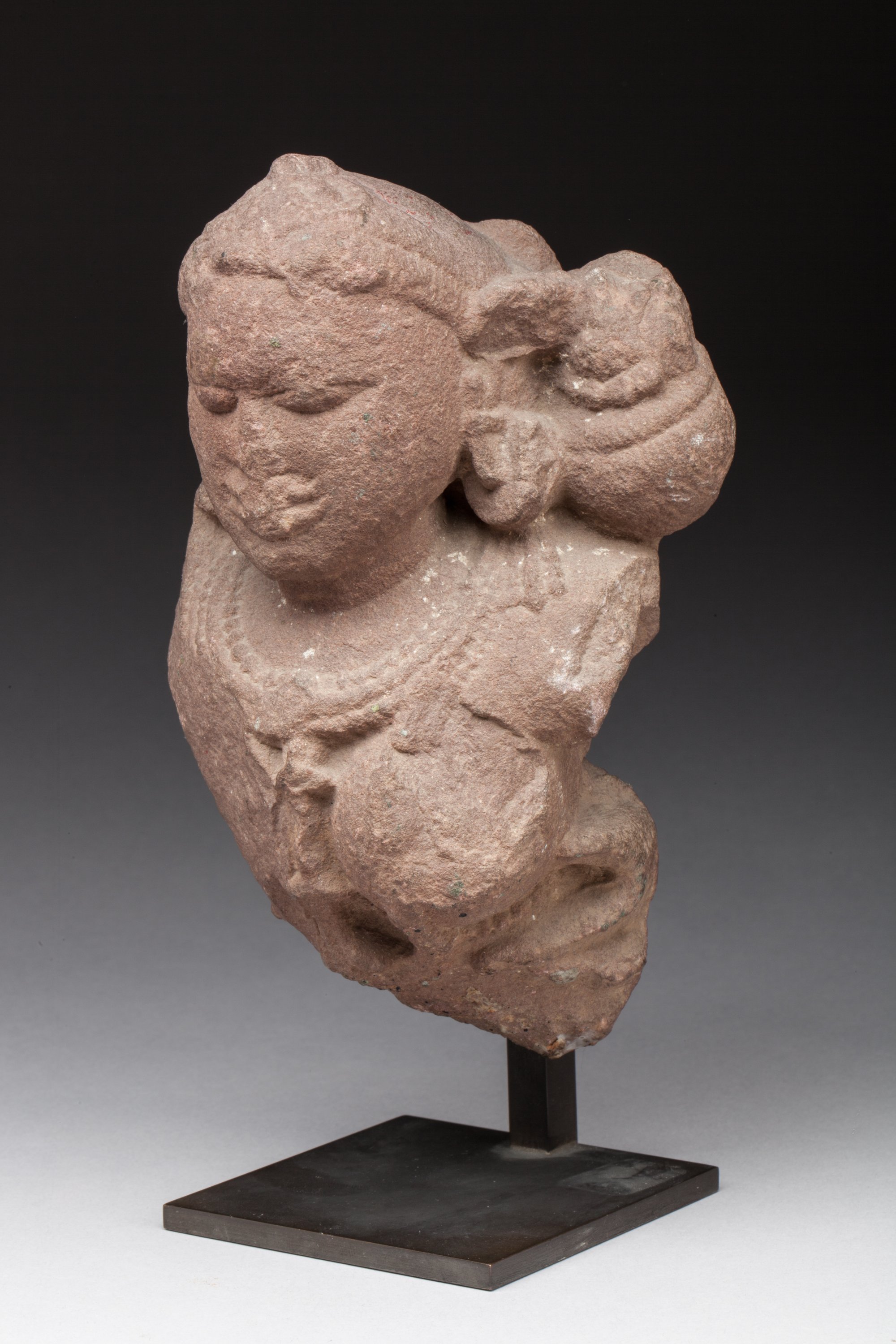 TORSE féminin d'une statue provenant d'un bas relief. Grès rose.