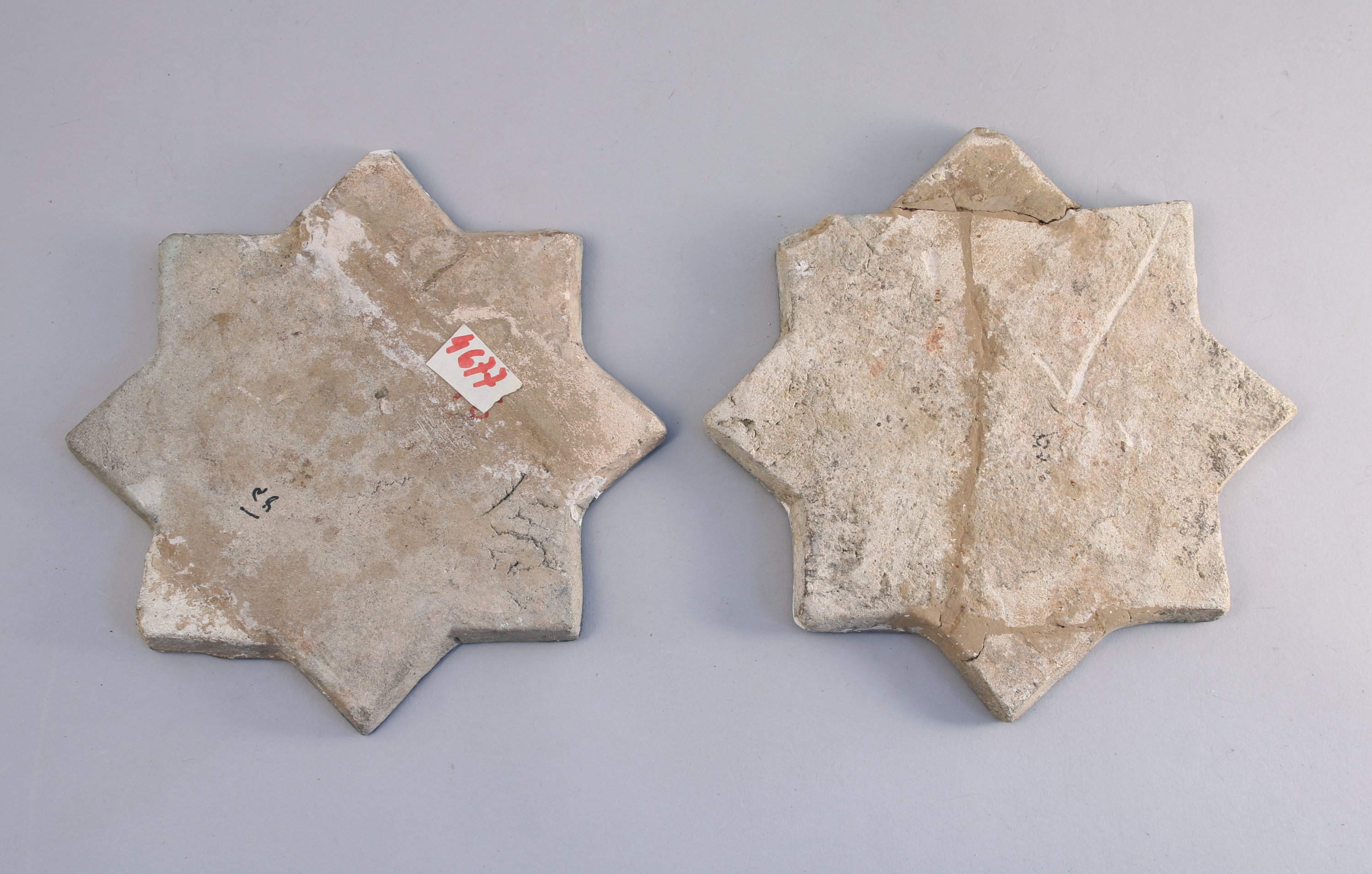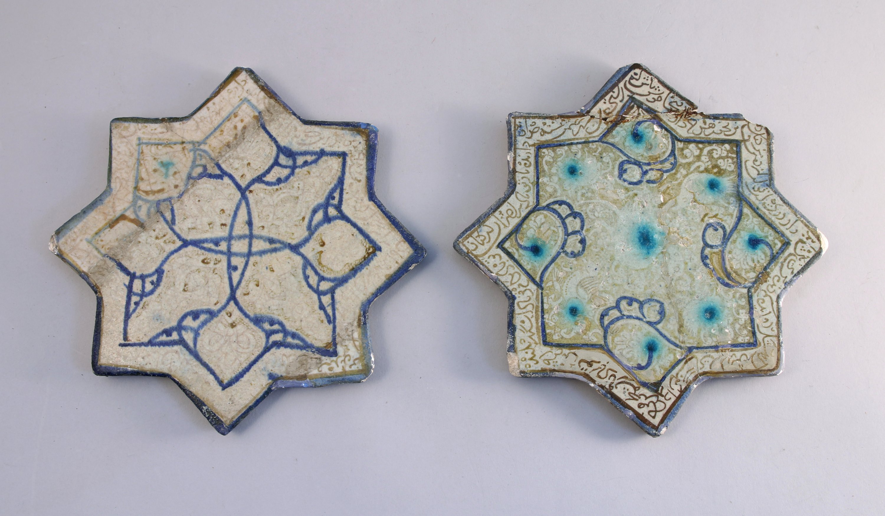 IRAN - XII-XIIIe DEUX CARREAUX en forme d'étoile octogonale en...