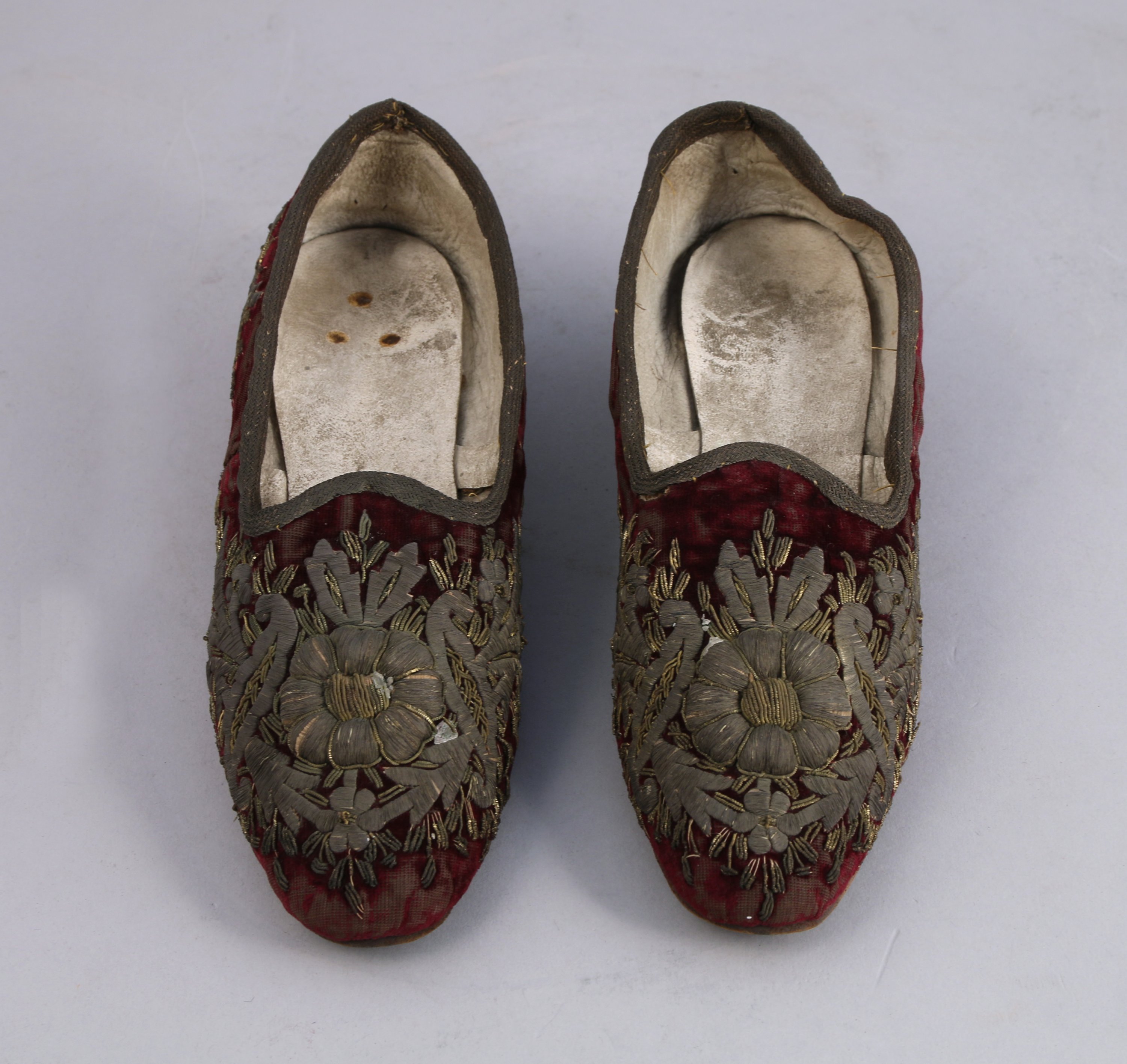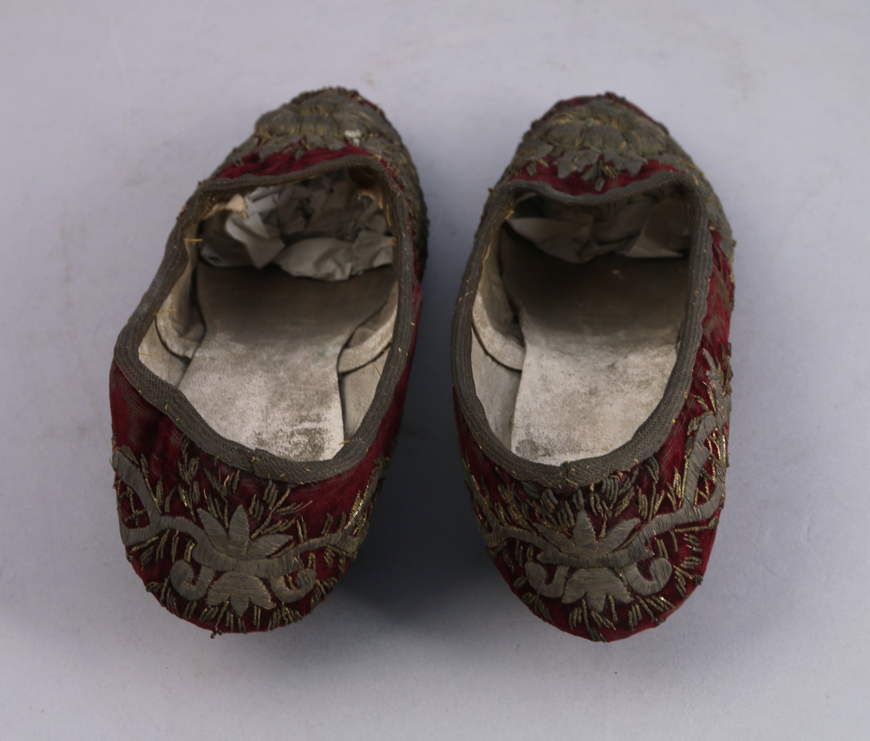 TURQUIE OTTOMANE - XIXePAIRE d'ESCARPINS en velours rouge brodé en...