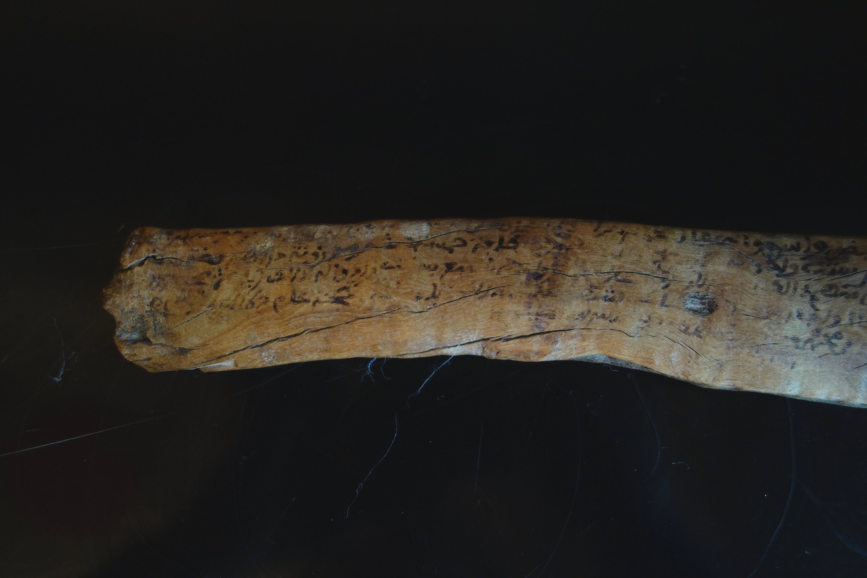 BOIS FLOTTÉ à inscription talismanique. Inscrit en arabe...