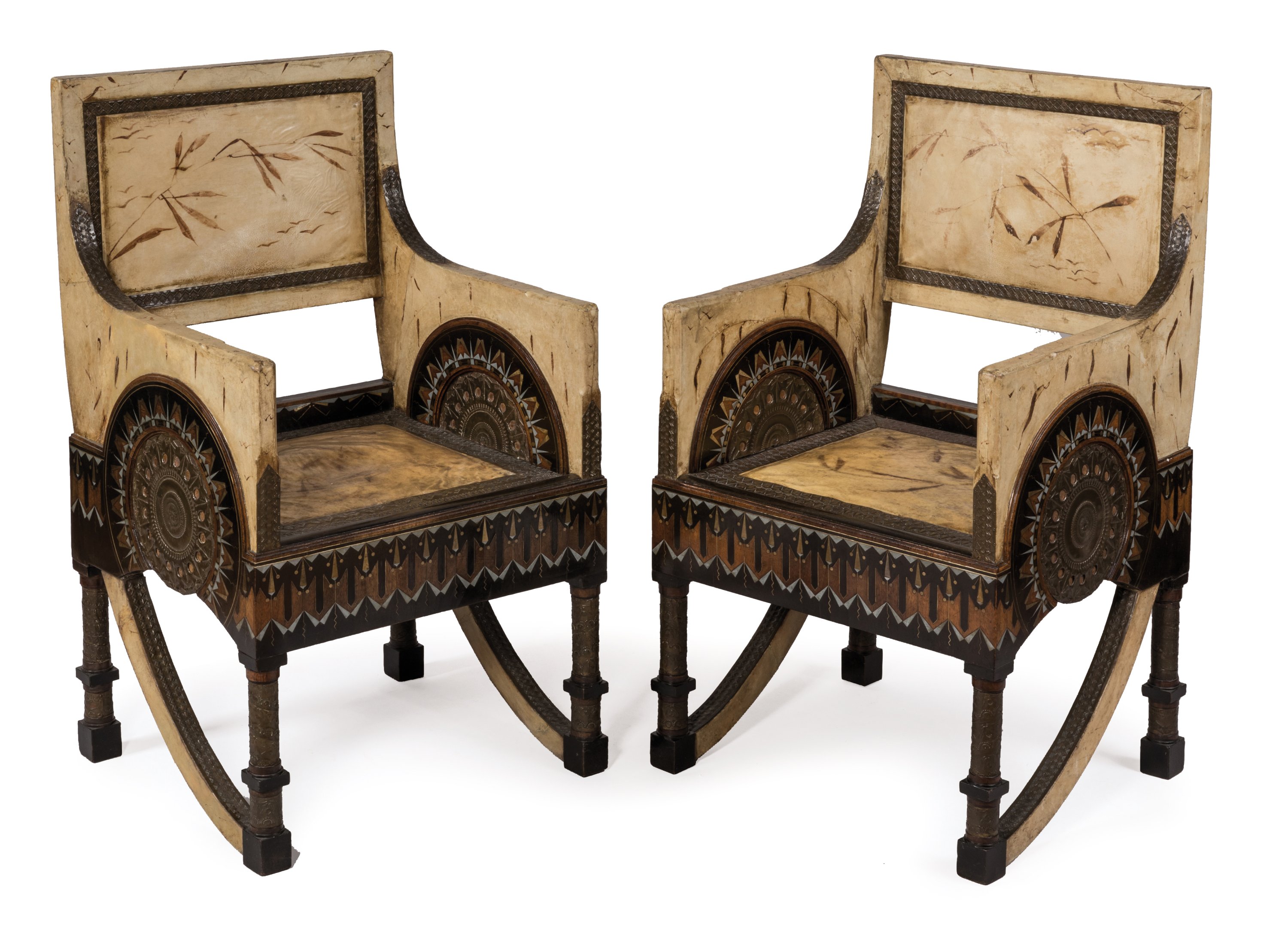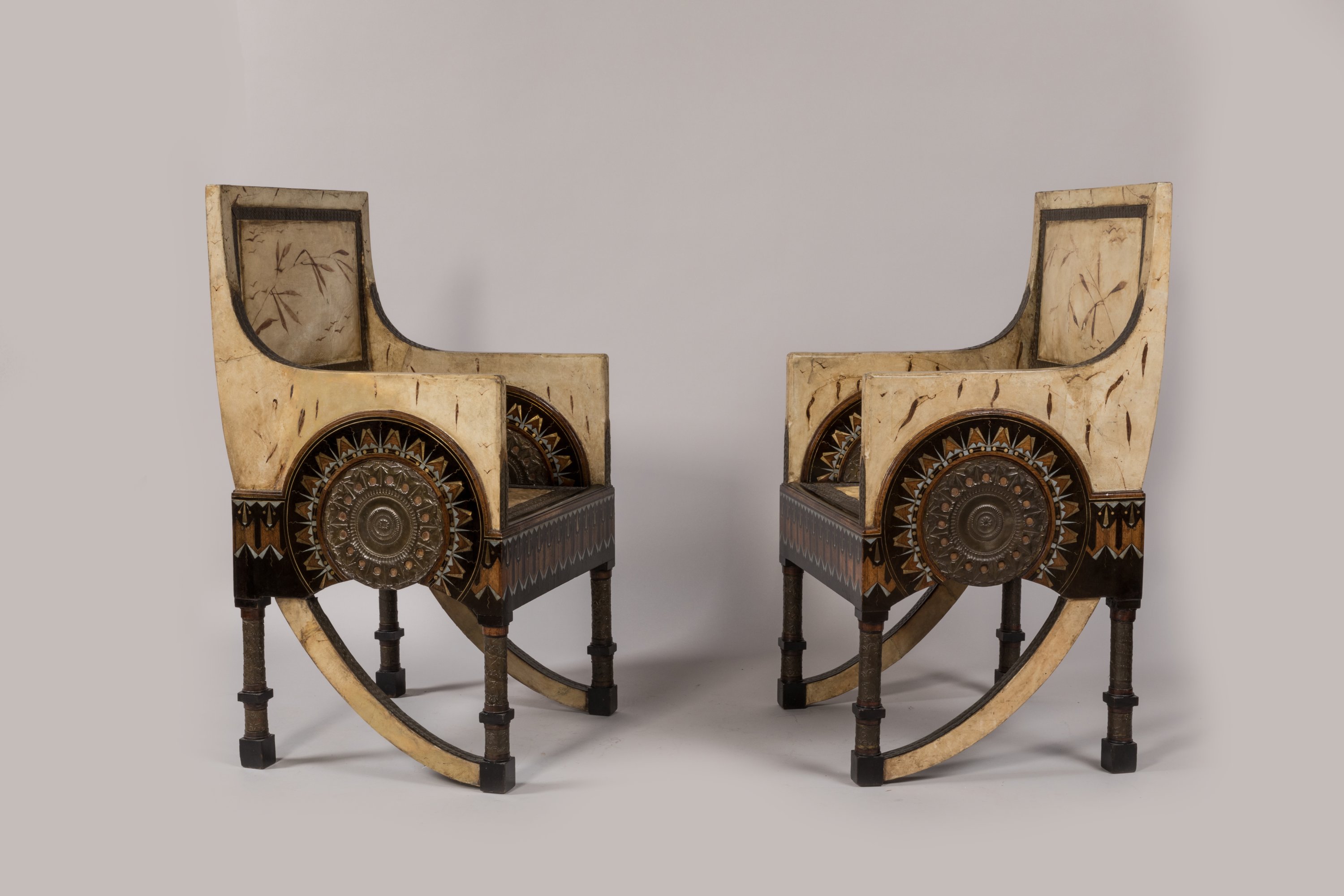 Two armchairs covered with parchment by Bugatti around 1902.
