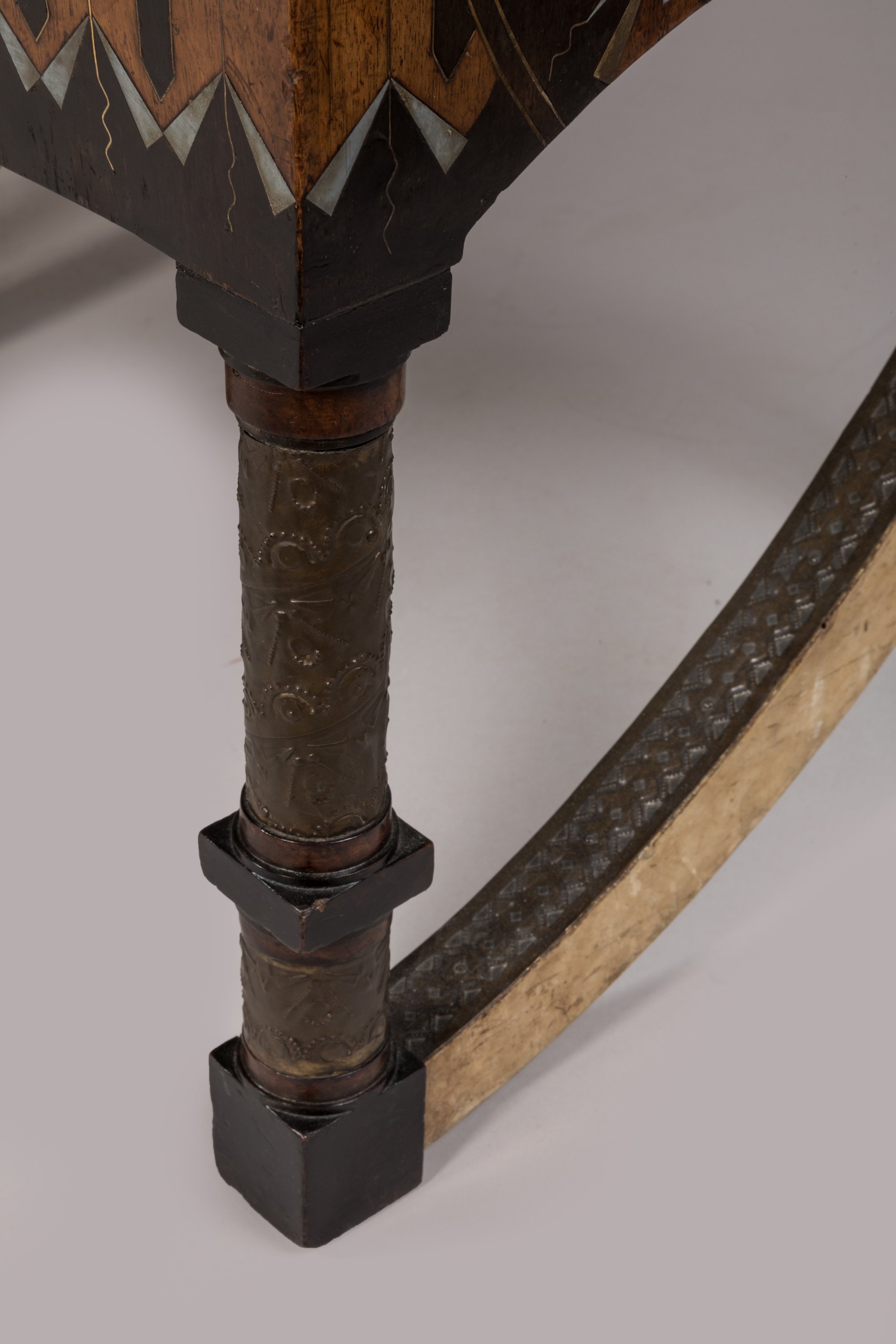 Carlo Bugatti se distingue par la richesse de ses créations dont l'inspiration lui vient notamment de l'observation de l'artisanat islamique, s'inscrivant en cela dans le mouvement de l'orientalisme et la lignée de l'Aesthetic movement anglais. Empruntant au vocabulaire ornemental du Proche-Orient ses fines colonnettes en cuivre et ses incrustations de nacre sur fond de bois sombre, il développe dès les années 1880 une gamme de mobilier particulièrement originale.