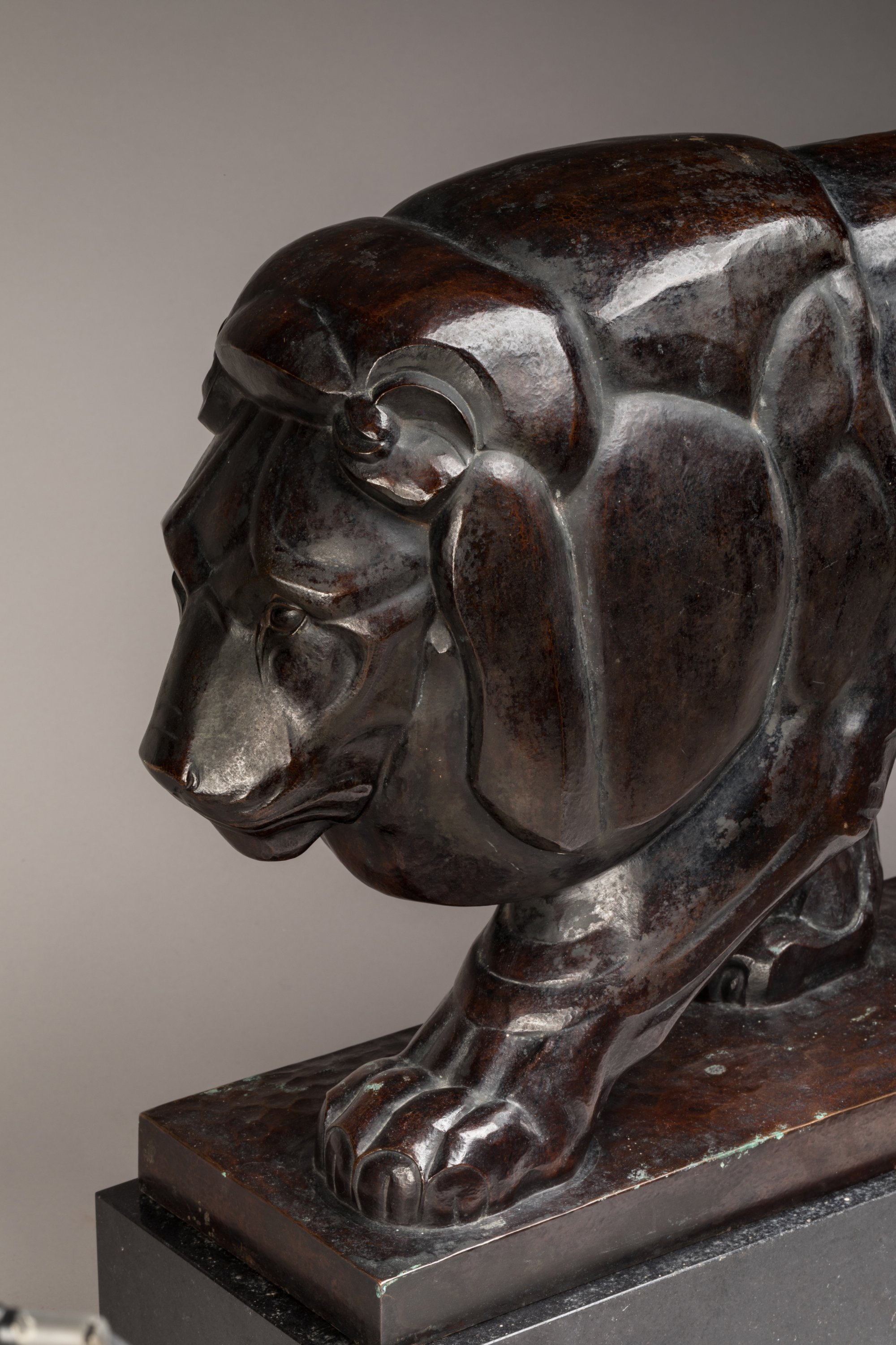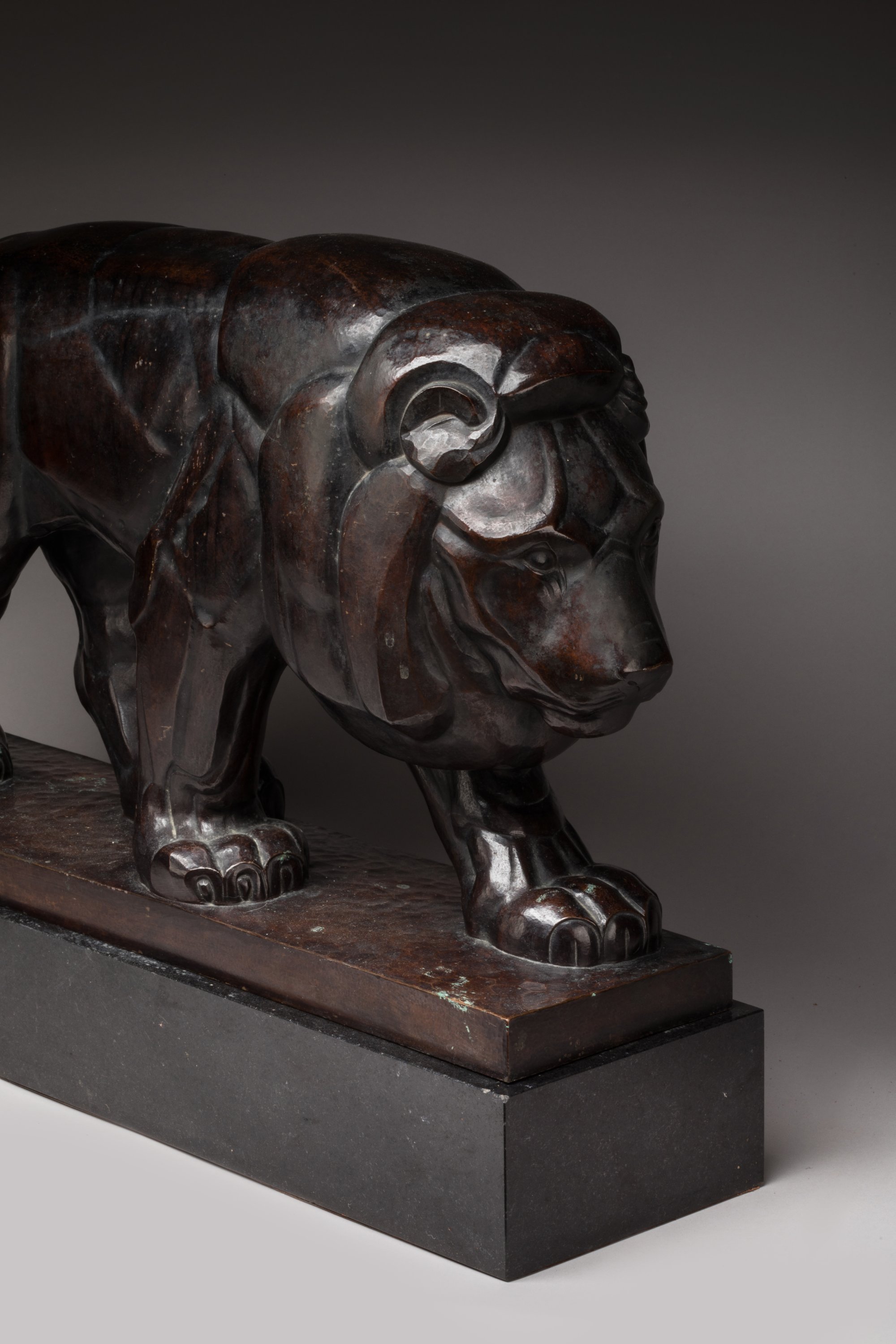 Lion marchant par Le Bourgeois pour l'hôtel Ducharne aménagé par Ruhlmann vers 1924