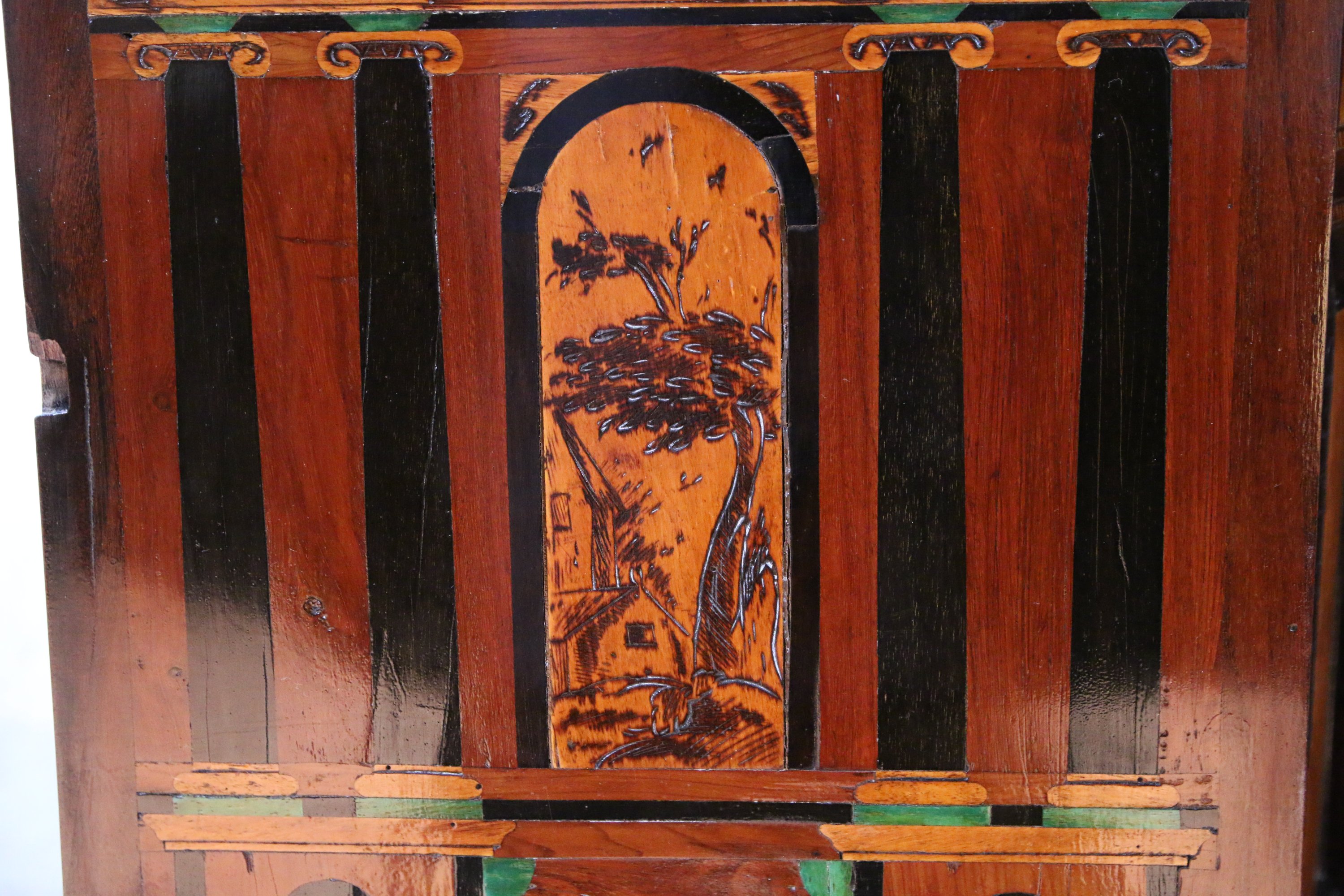 An antique triumphal cabinet in fruit wood with ancient elements, 19th century
