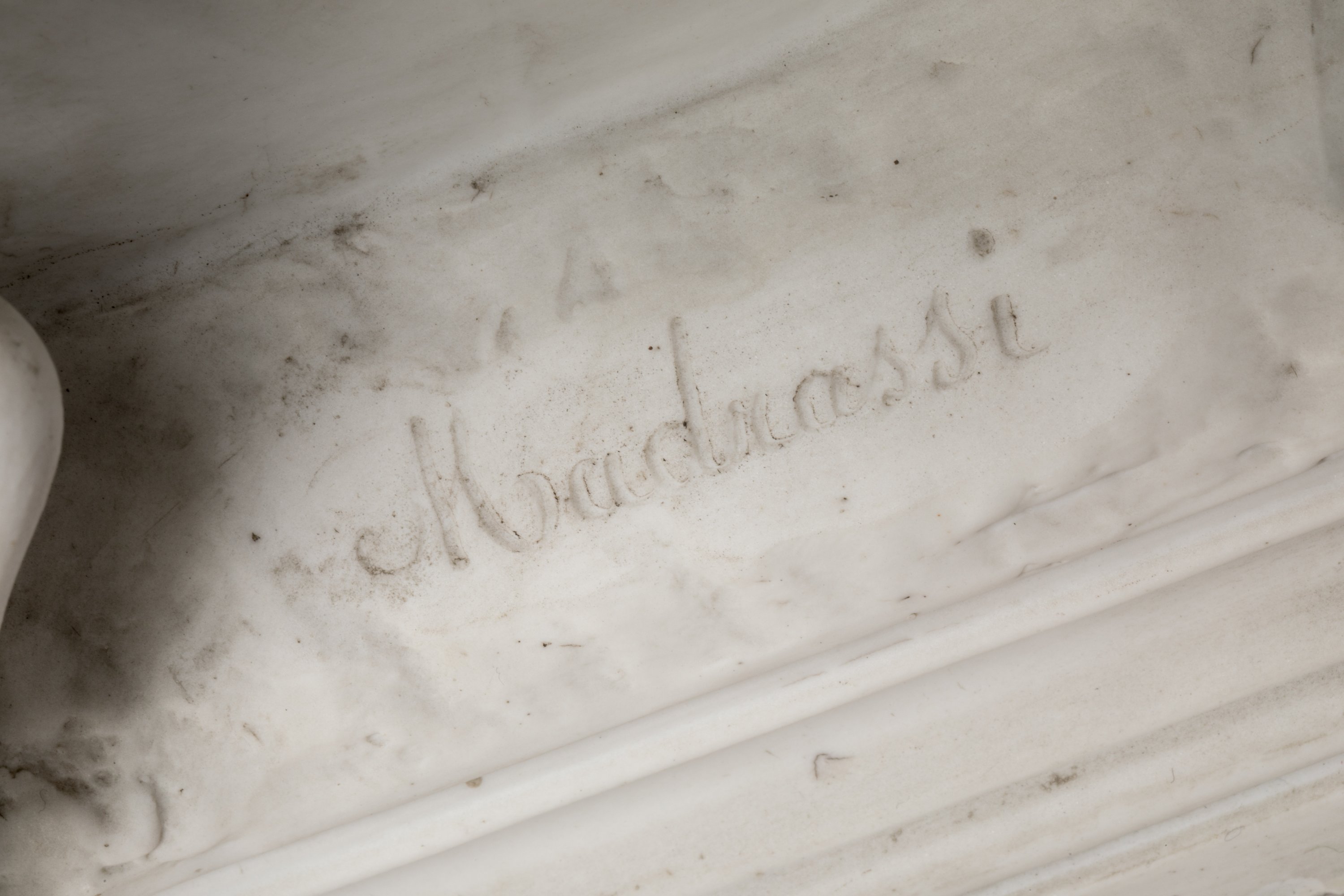 Originaire de Tricesimo en Italie, Madrassi accomplit toute sa carrière en France. Élève de l'école des beaux-arts de Paris et Sociétaire des Artistes Français il participe à de nombreux Salons où il est souvent récompensé. Notre sculpture présente un personnage masculin d'âge mûr en gaine gonflant ses joues comme pour souffler un vent puissant. À ses côtés, un jeune personnage aux ailes de papillon l'observe d'un regard attentif et amusé.