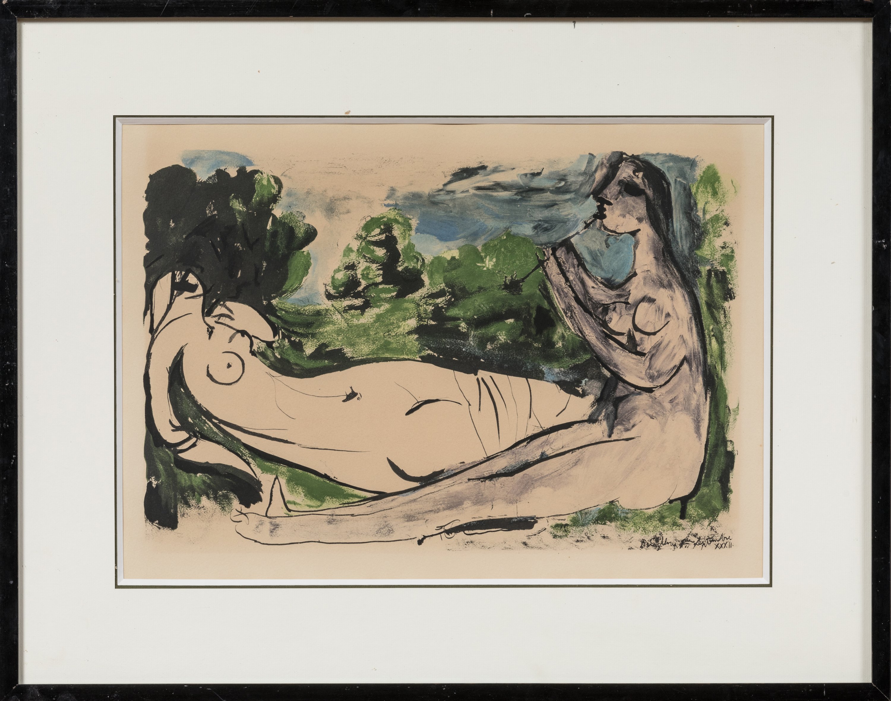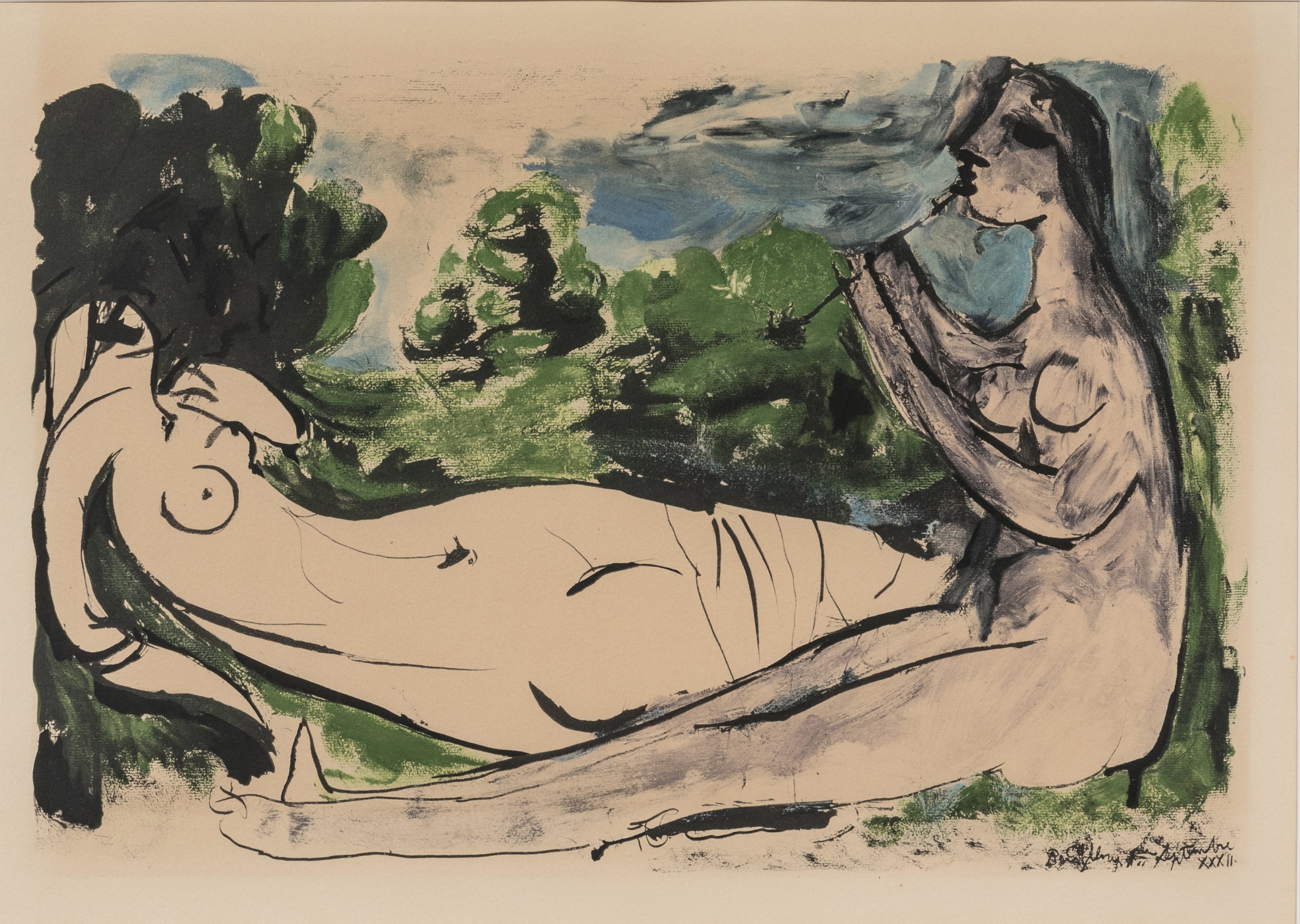 Le dessin gouaché original n.32-120 illustré p.133: Reclining Nude ands Flute Player, 9/1/1932 oil and india Ink 34,5x50,5 cm.