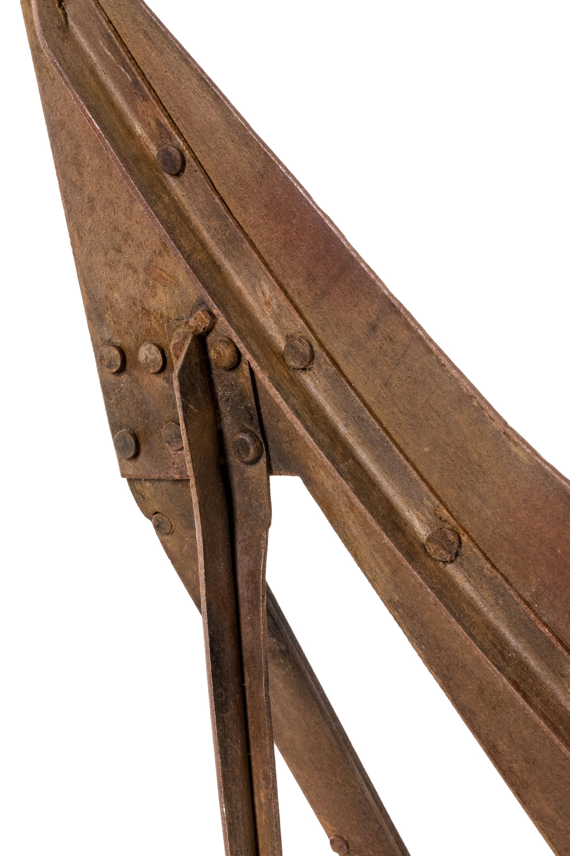 La structure de l'uvre et la présence de rivets indiquent qu'il sagit d'une maquette, comme celle réalisée pour l'usine de Biémont. En 1965, le photographe Ugo Mulas demande à Calder d'écrire un texte sur sa méthode intitulé " Comment faire? " L'artiste précise: " Alors, moi, je fais une petite maquette en tôle d'aluminium, haute de 50 cm peut-être. Avec ça, je suis libre d'y ajouter un morceau ou d'y faire un creux. Aussitôt satisfait du résultat que je vais avoir, j'amène la maquette chez mes amis Biémont et ils m'agrandissent la maquette tant que je veux. Quand l'agrandissement est fini, provisoirement, j'y vais pour ajouter les nervures et les goussets, ou bien d'autres choses dont je n'ai pas songé. Après ça, ils réalisent mes idées sur le renforcement. Et ça y est . "