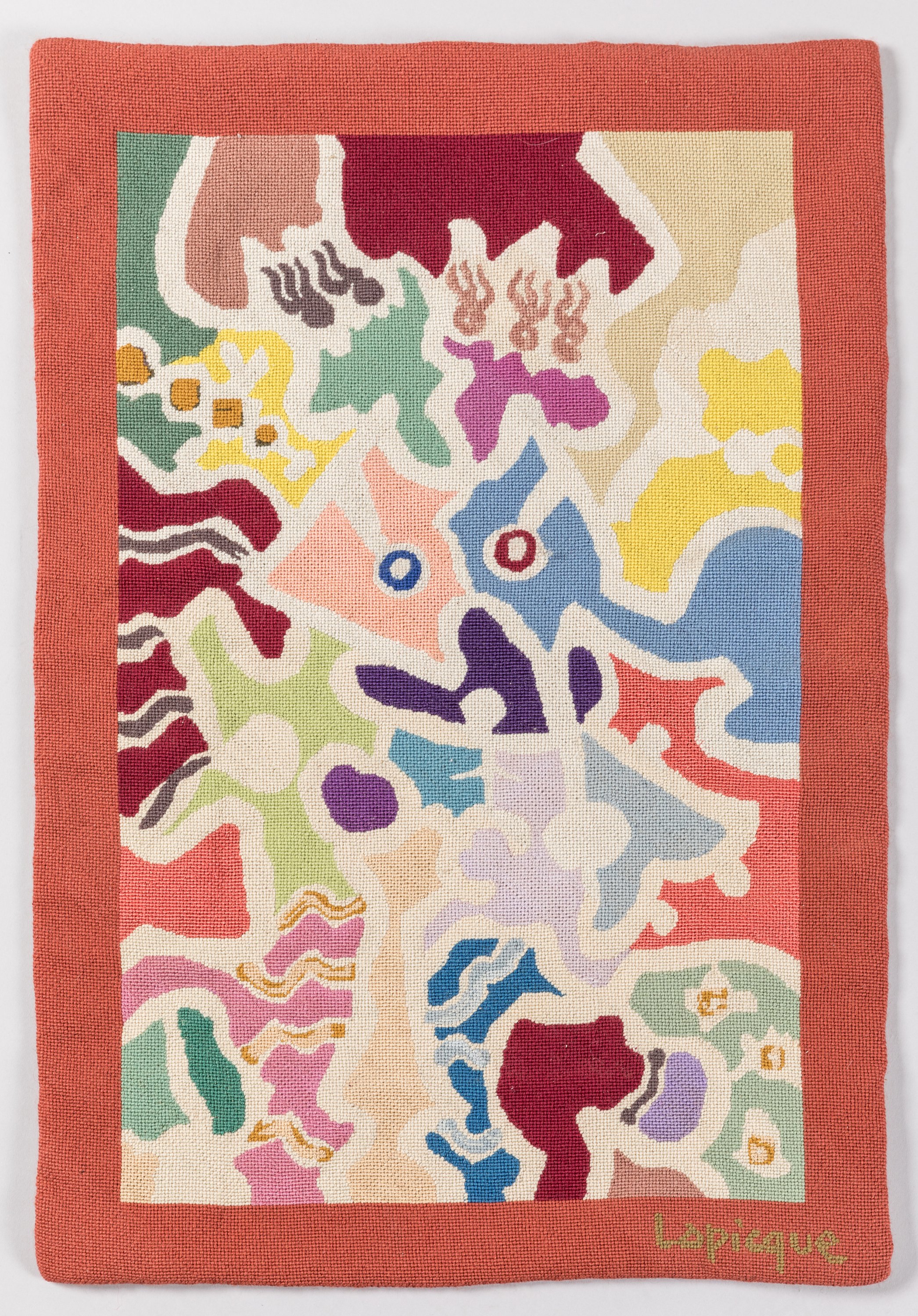 L'adaptation des créations de Lapicque par le textile débute sous l'impulsion d'Elmina Auger et des élèves du peintre. Ils entreprennent de faire des canevas au petit point à partir de ses dessins, Lapicque se prend alors de passion pour ce travail. Par l'intermédiaire d'Aram Iynedjian, galeriste de Lausanne et éditeur de tapisseries de Braque, Estève et Lapicque, ce dernier rencontre Pierre Baudouin le plus célèbre des peintres-cartonniers de l'époque. Celui qui a traduit en tapisserie les travaux de Le Corbusier, Calder ou Picasso collabore alors avec Charles Lapicque et ils développeront une oeuvre d'une grande richesse.