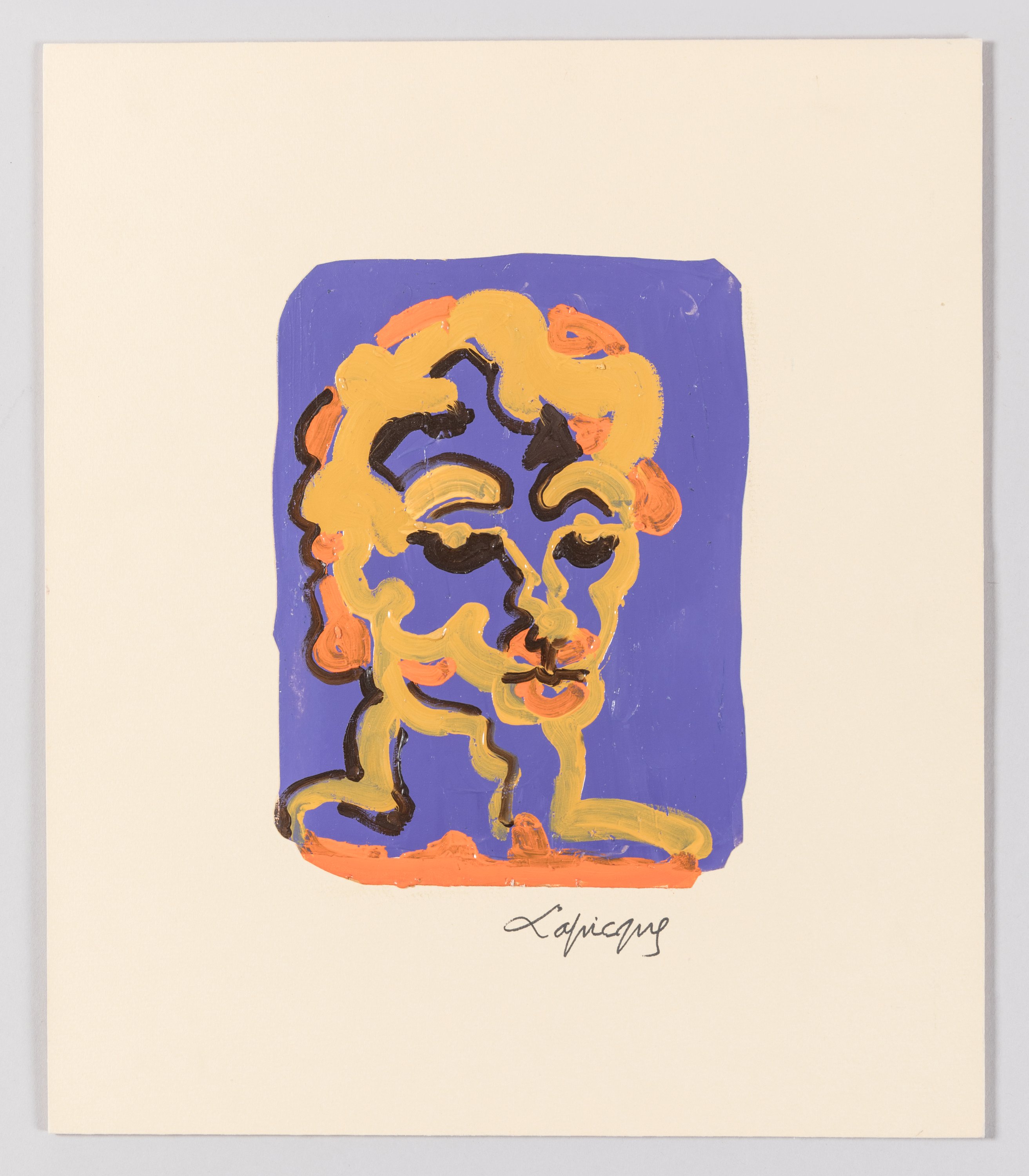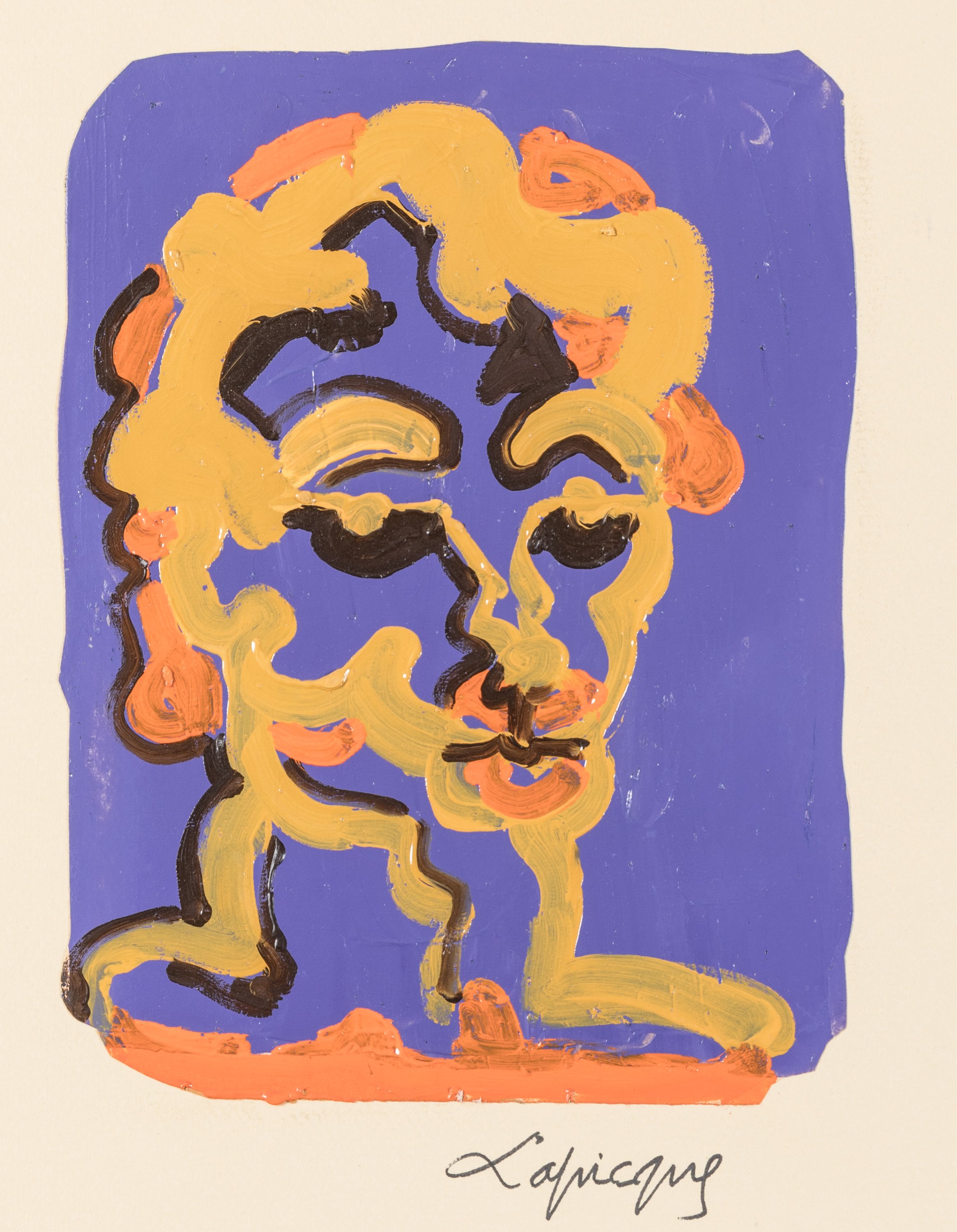 Charles LAPICQUE (Théizé, 1898 - Orsay, 1988)Tête d'homme.Huile sur carton....