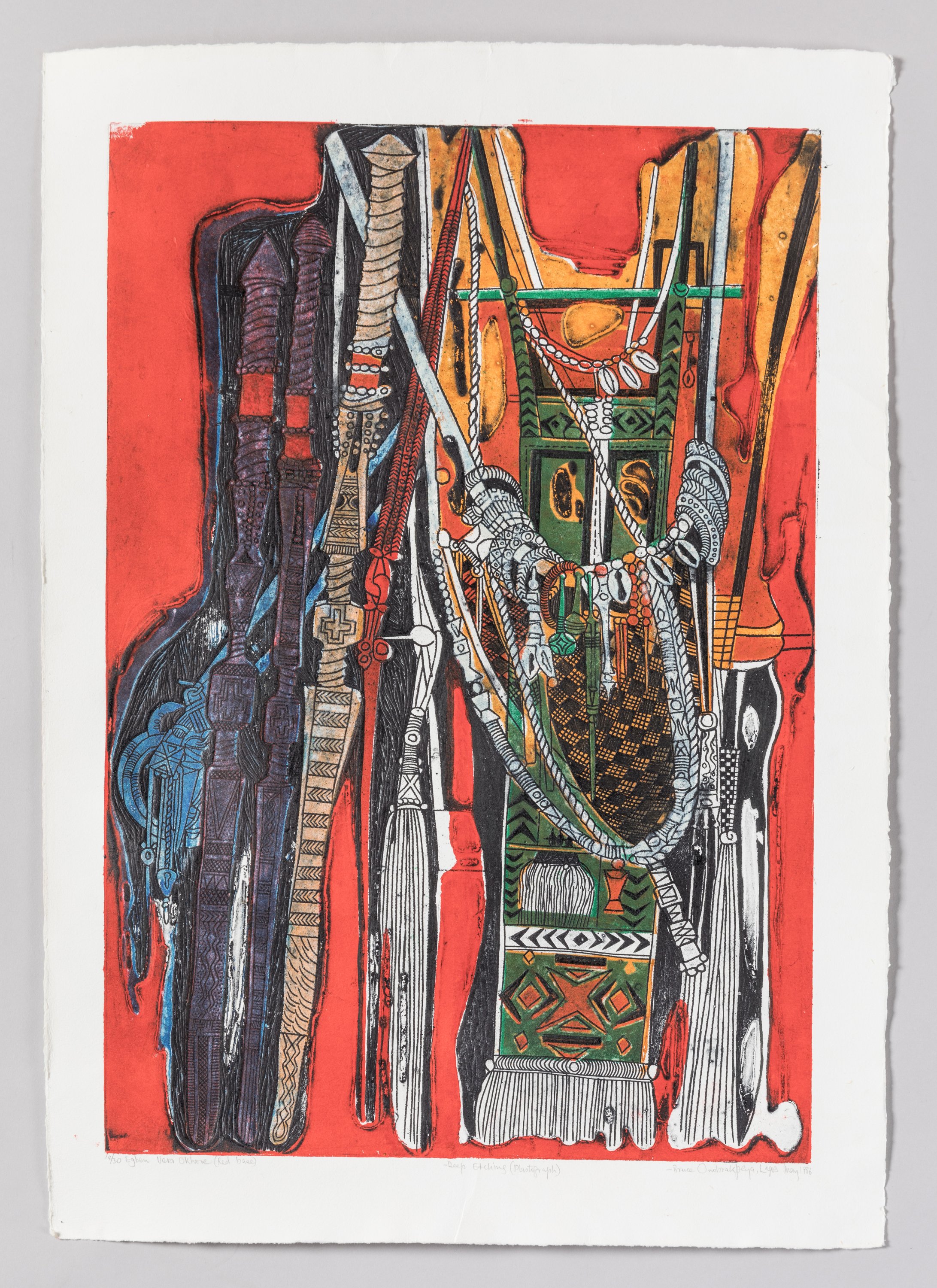 Procédé marqué " Deep etching (plastograph)", signée située et datée Lagos July 86 en bas à droite.