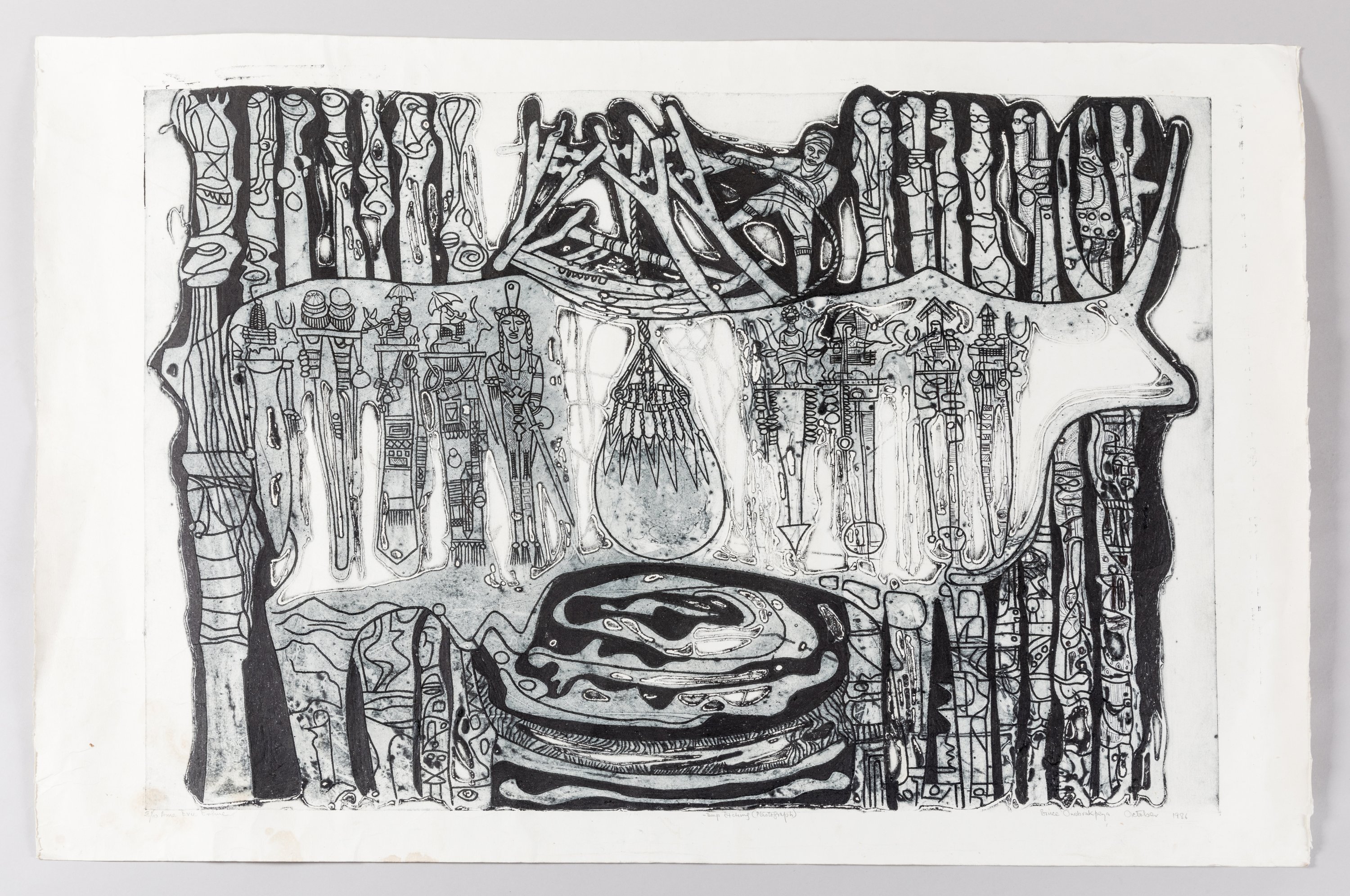 Procédé marqué " Deep etching (plastograph)", signé et daté October 1986 en bas à droite.