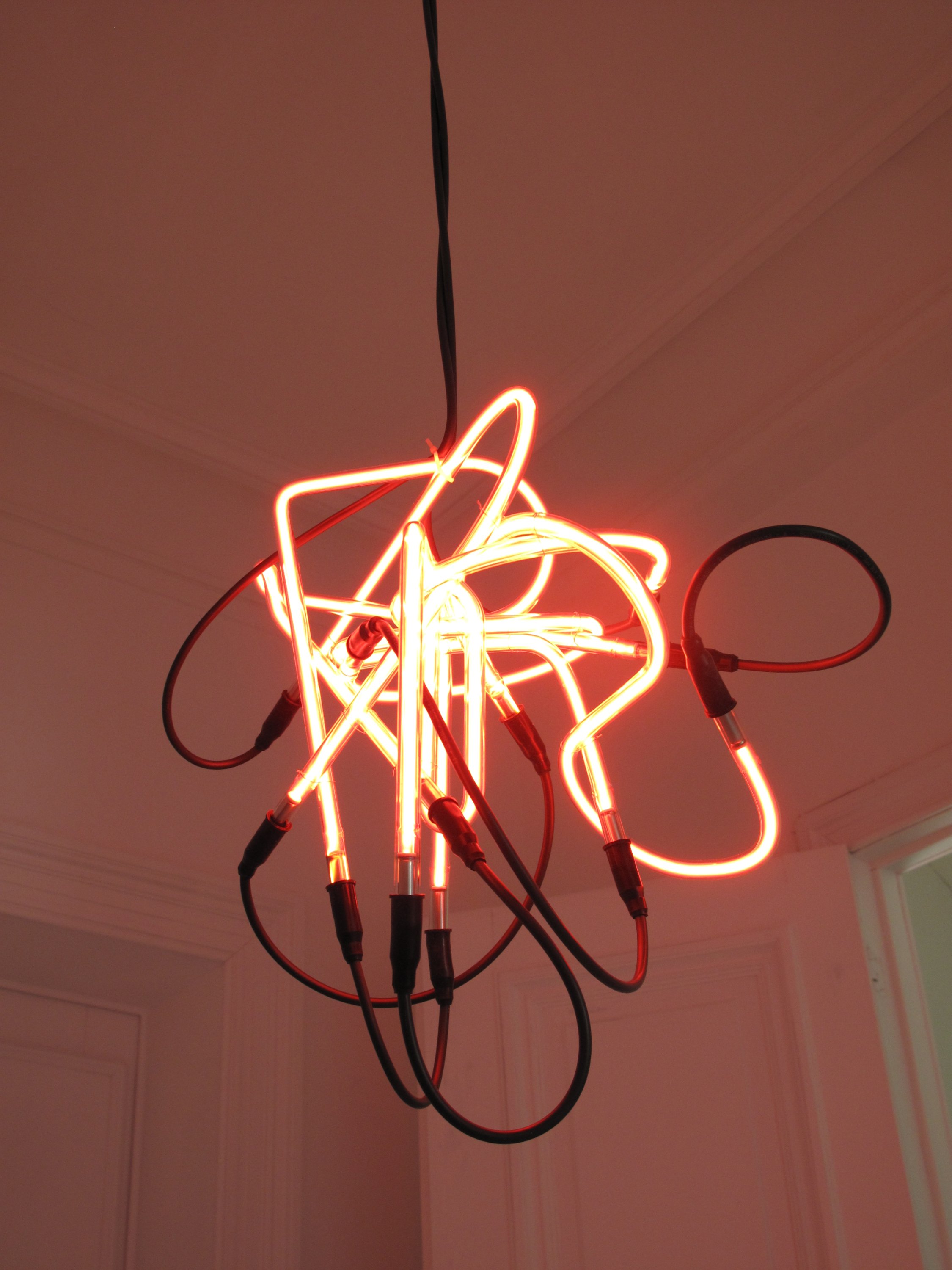 Six lettres du mot VERSUS en tubes néon.