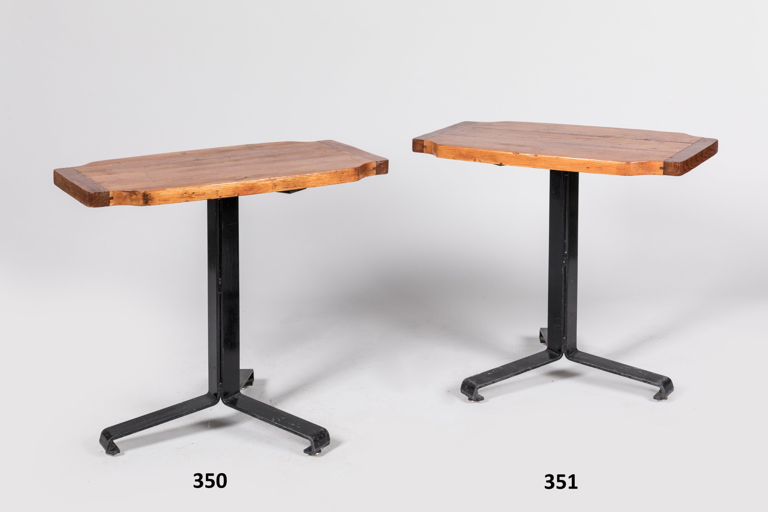 Le plateau en pin à rainures et languettes, le pied en lame d'acier laqué noir.